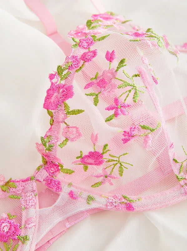Women's Floral Transparent Lace Lingerie Set