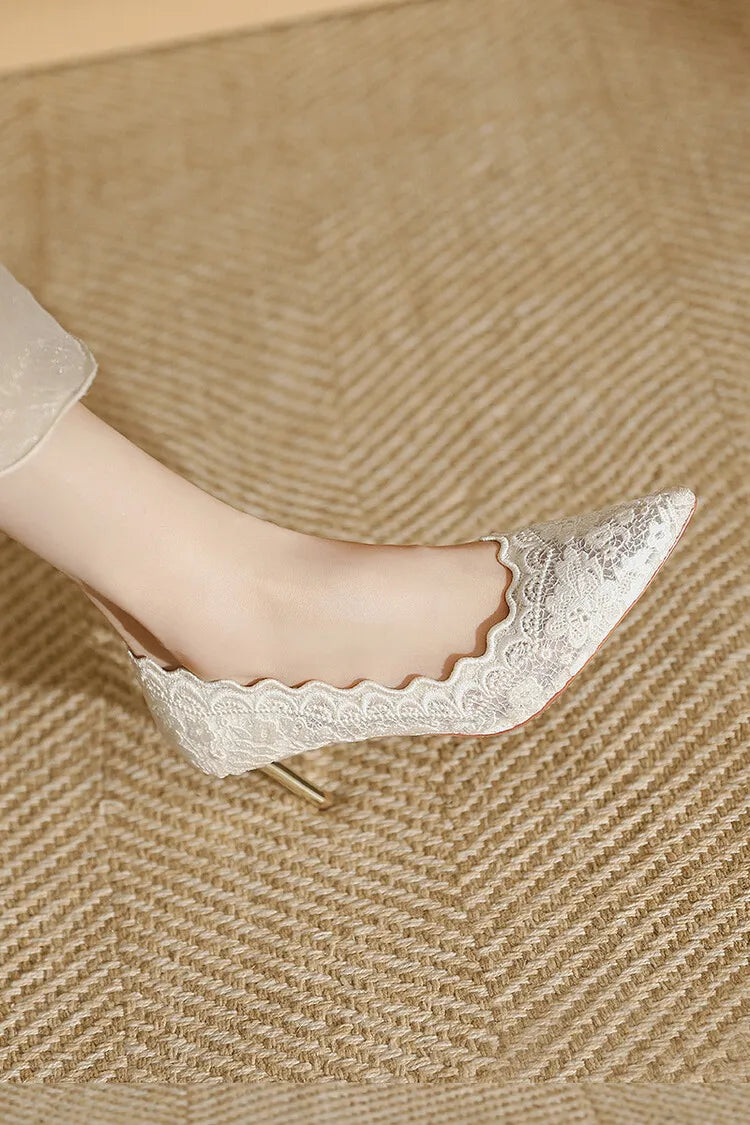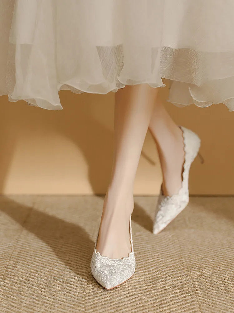 Embroidered Bridal Heels - Pointed Toe Wedding Pumps with 6.5cm Heel