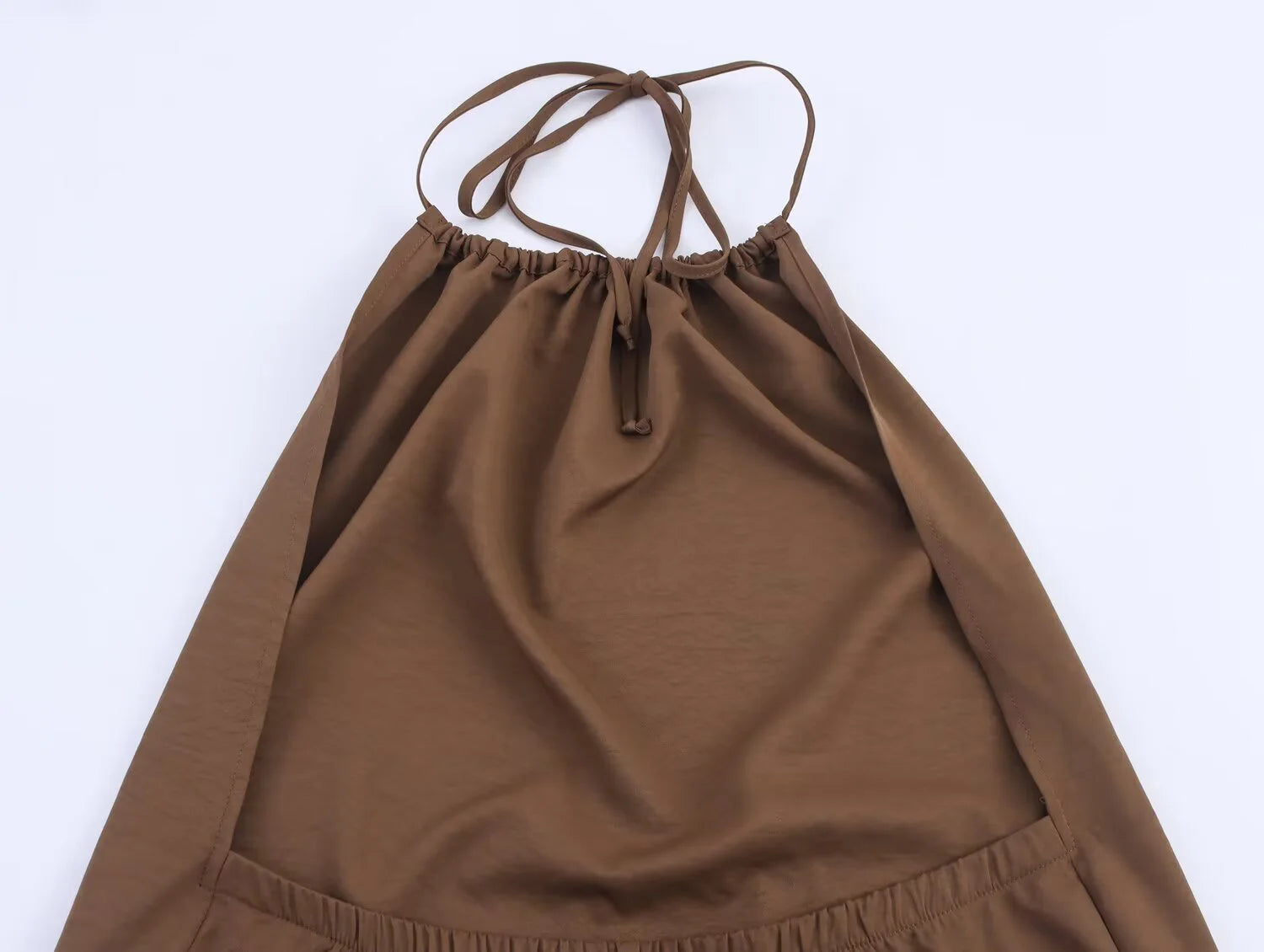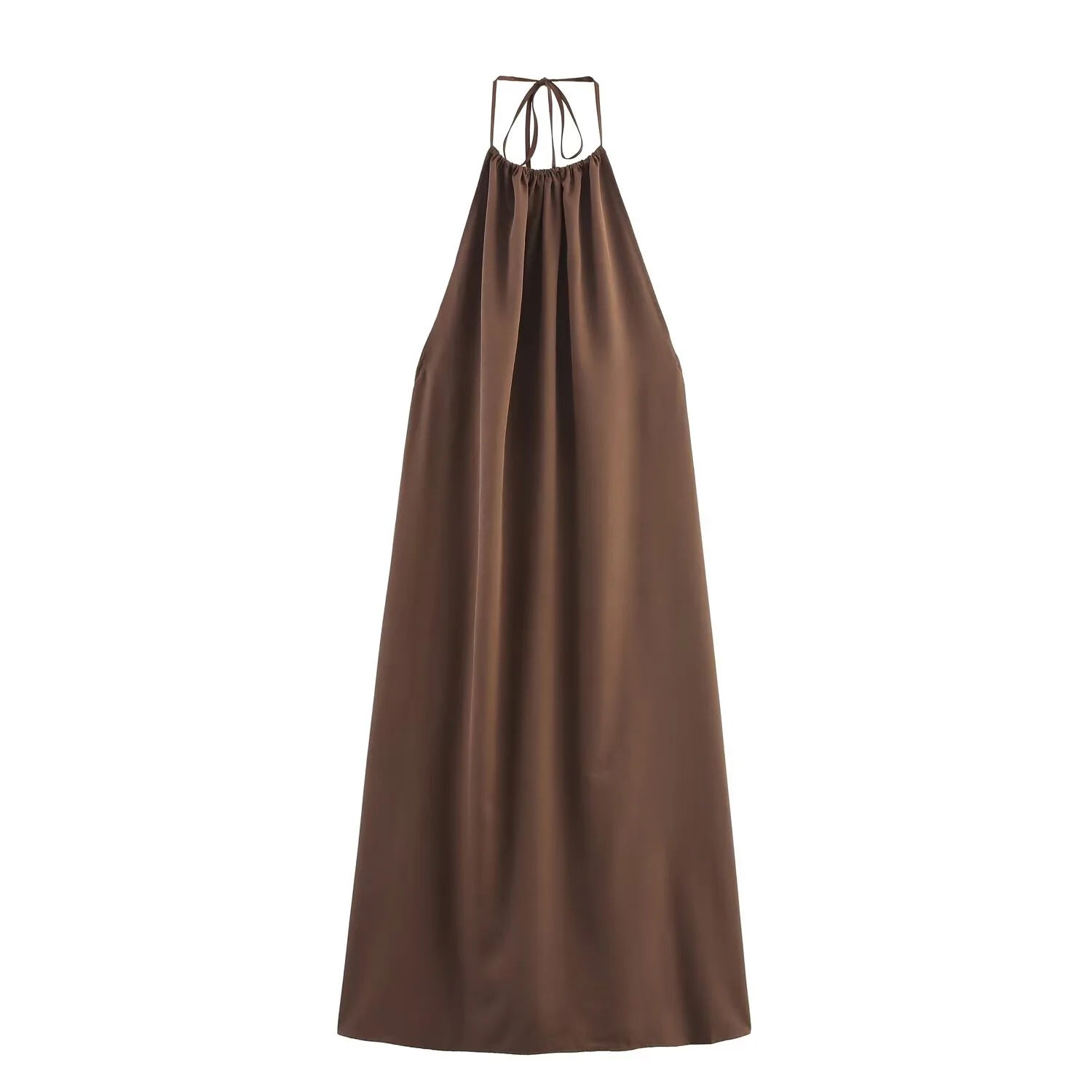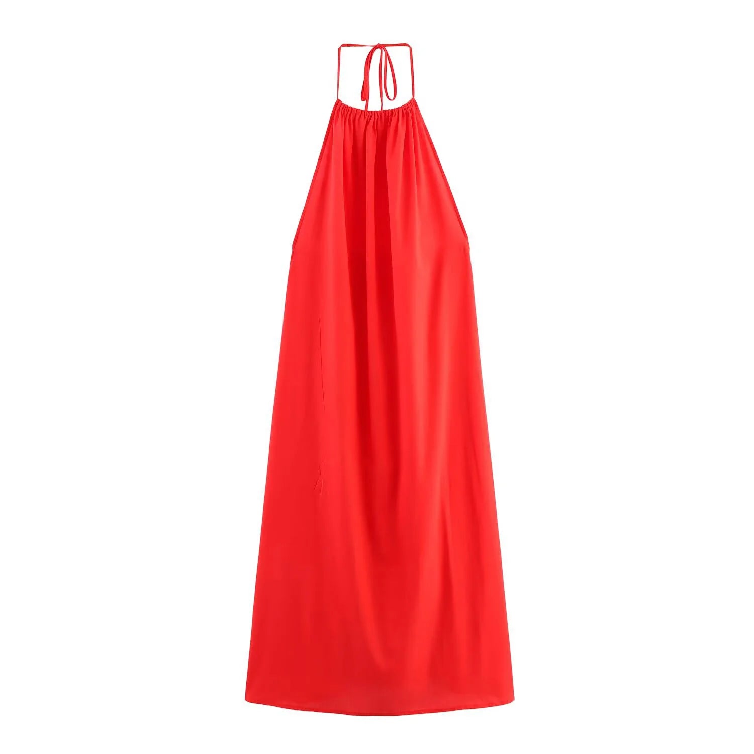 Step into summer with confidence in this stunning sleeveless dress that perfectly balances sophistication and allure. The halter neck design creates an elegant silhouette while the backless feature adds a touch of glamour perfect for any special occasion.