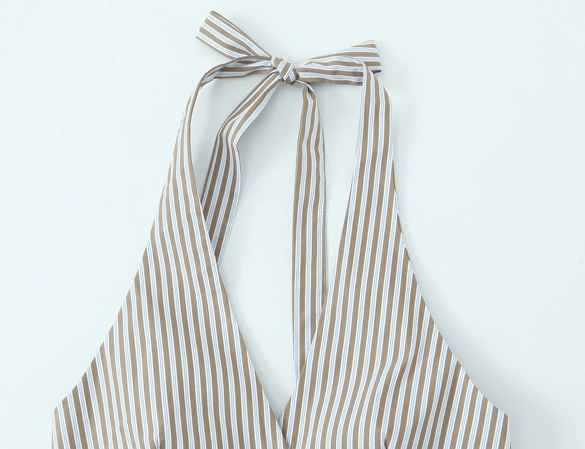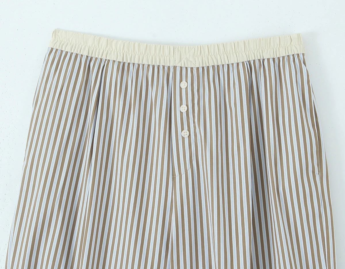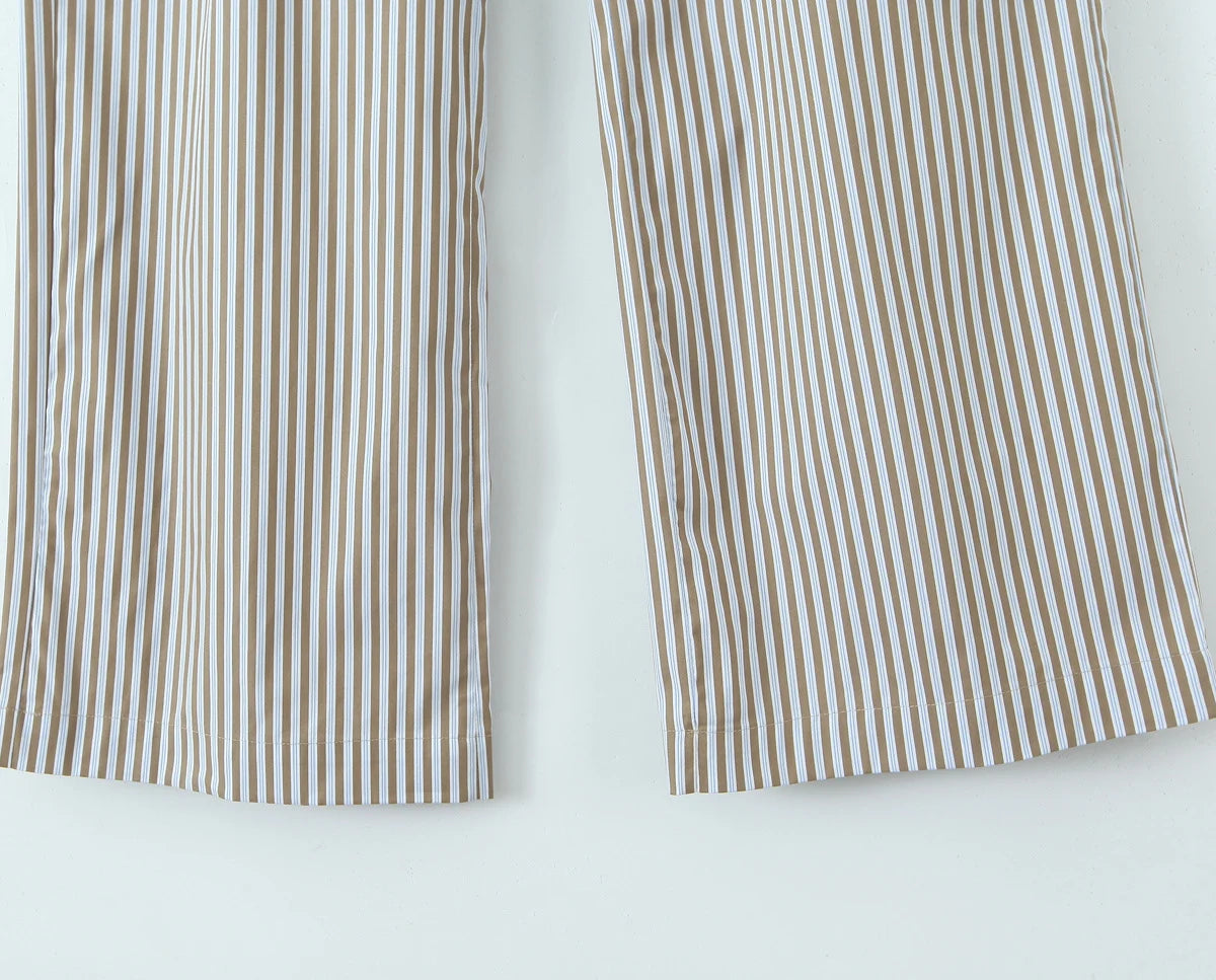Women's Style Bow Embellished Thin Stripe Vest Top Lazy Style Loose Straight Leg Wide Leg Trousers