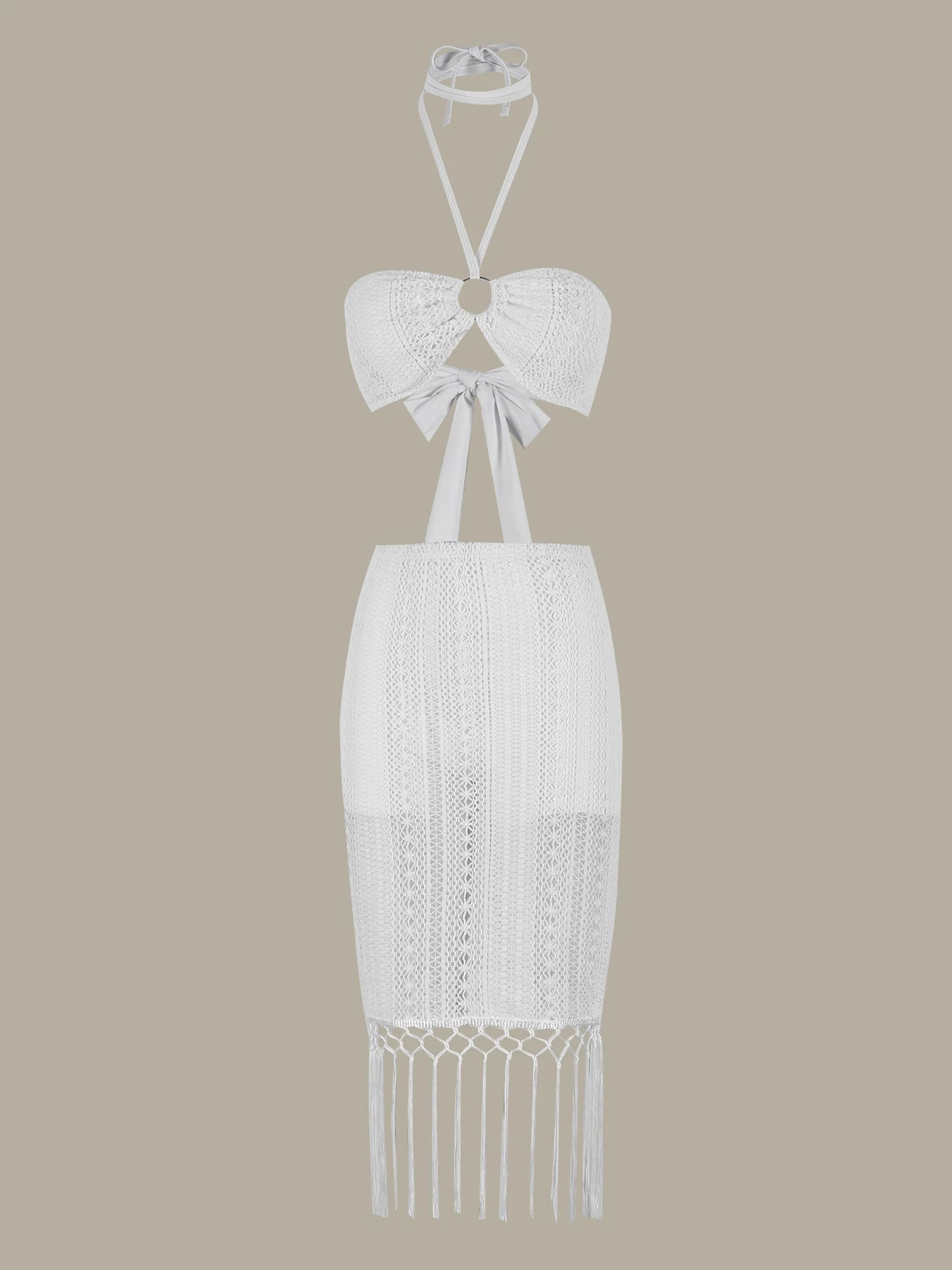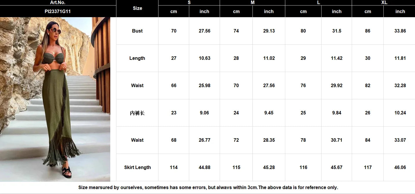 Complete your beach look with this stunning 3-piece solid bikini set featuring a supportive padded bra, high-waist bottoms with tassel details, and a matching beach skirt. Perfect for beach holidays and summer getaways, this versatile set offers multiple styling options for the ultimate vacation wardrobe.