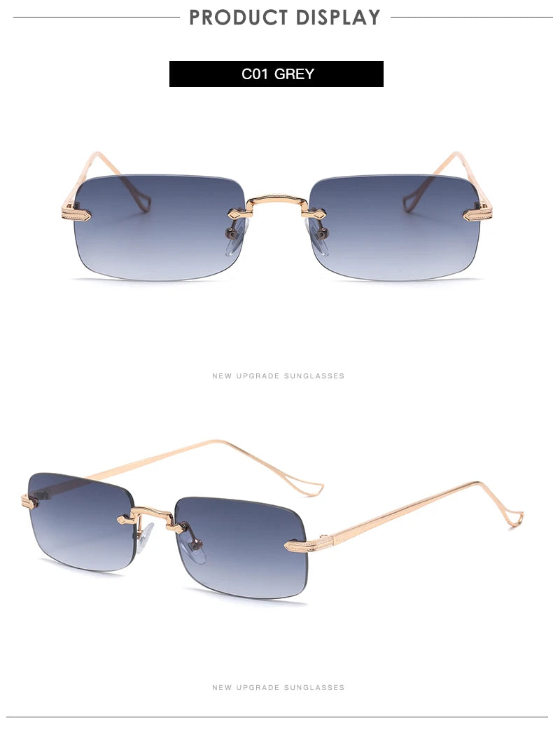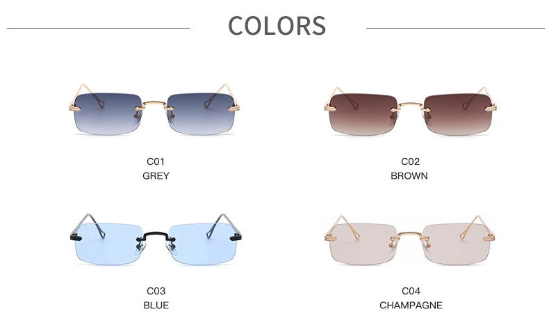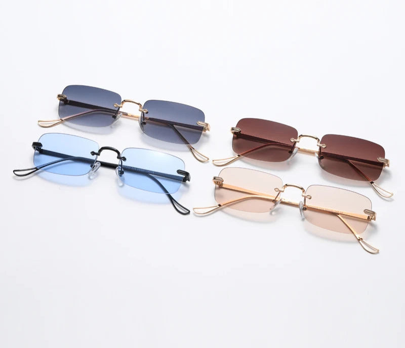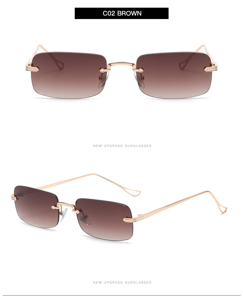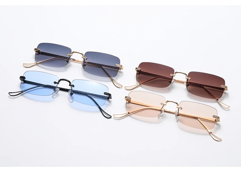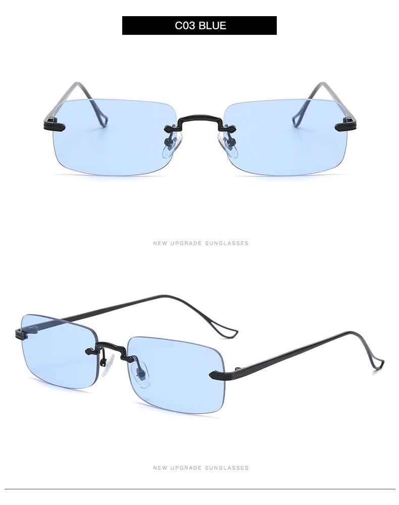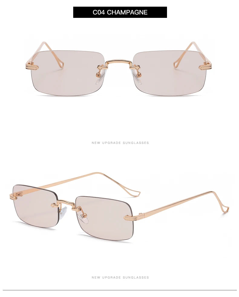 Small Rimless Square Sunglasses - UV400 Protection Metal Frame