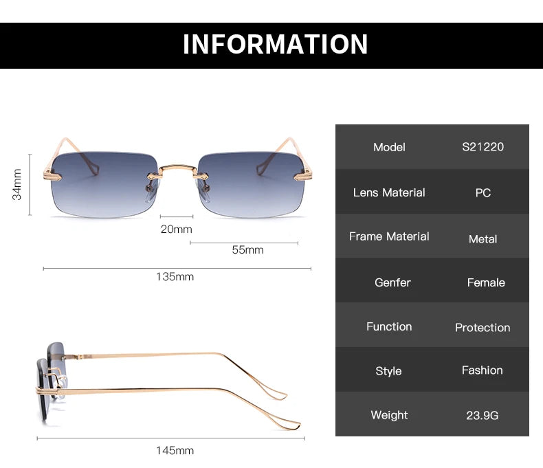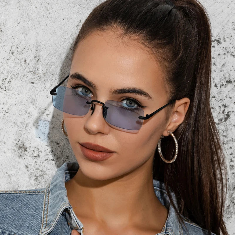Step out in confidence with these sleek rimless square sunglasses that perfectly blend modern style with essential eye protection. The lightweight metal frame ensures all-day comfort whether you're driving through the city or exploring new destinations.