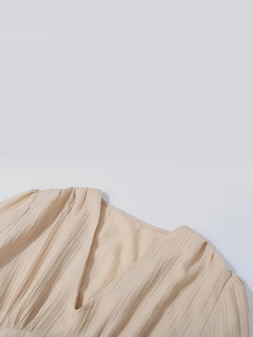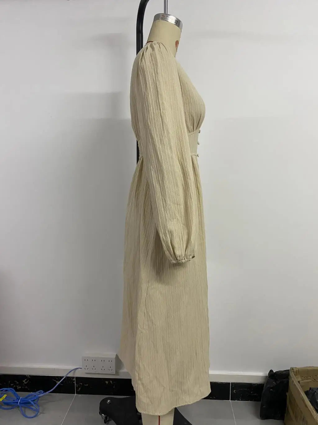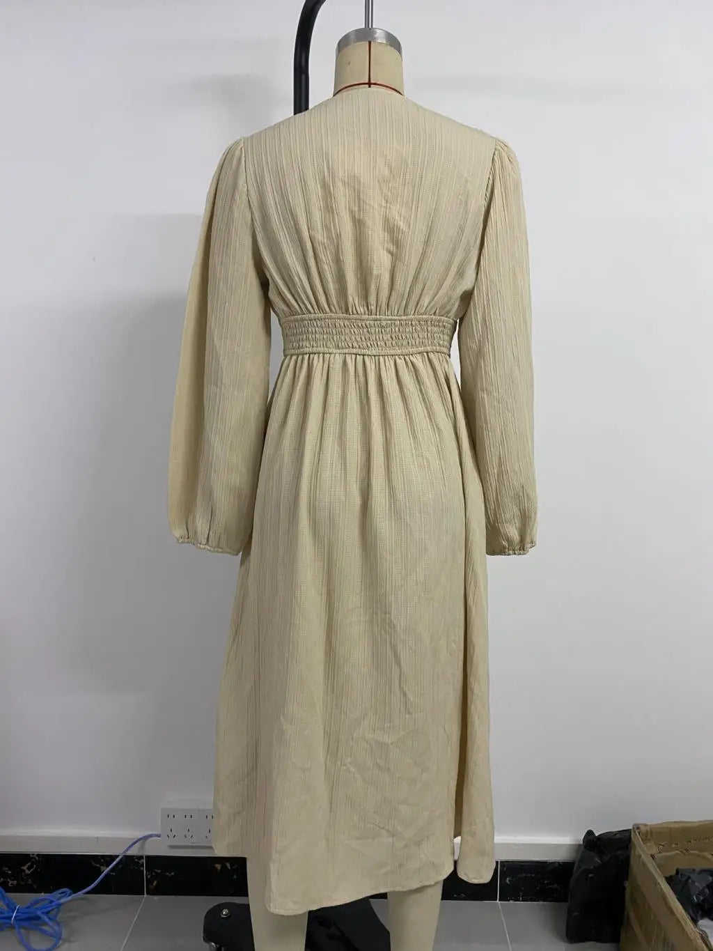 Women's Autumn Winter Long Sleeve Elegant V-neck Chiffon A-Line Knee Length High Waist Dress