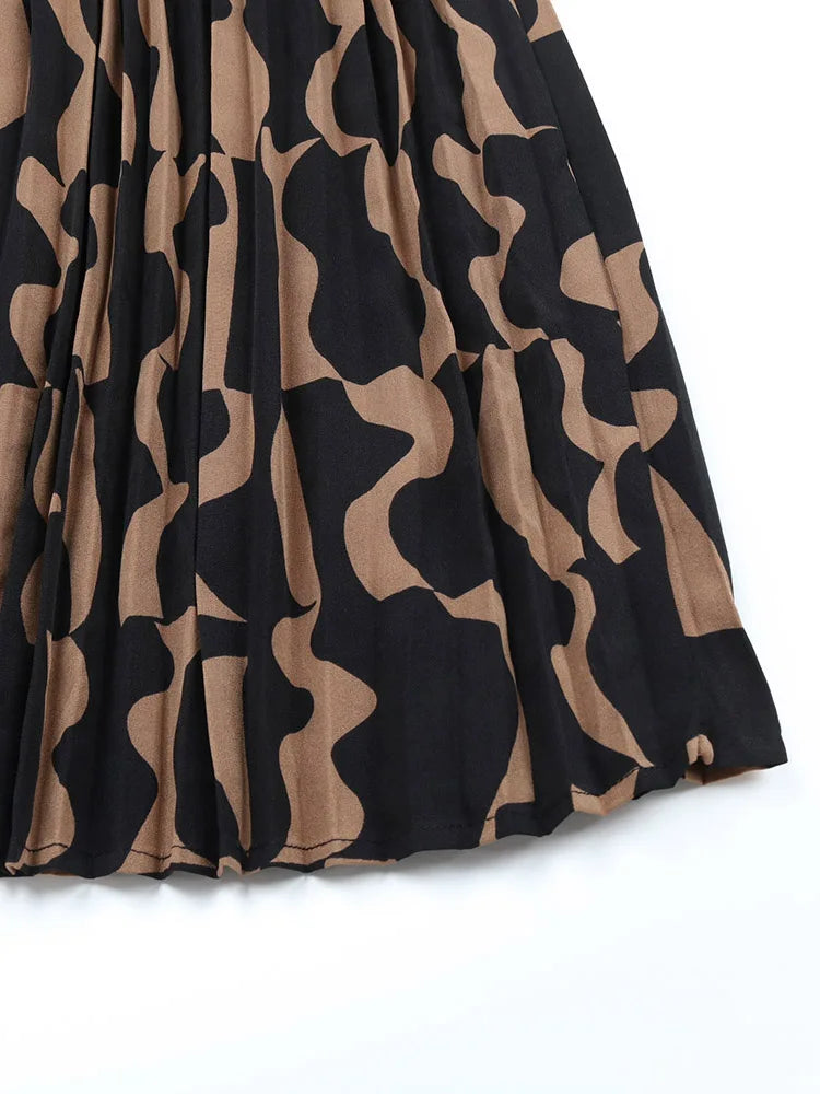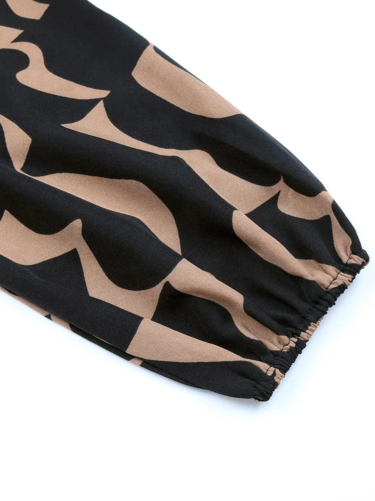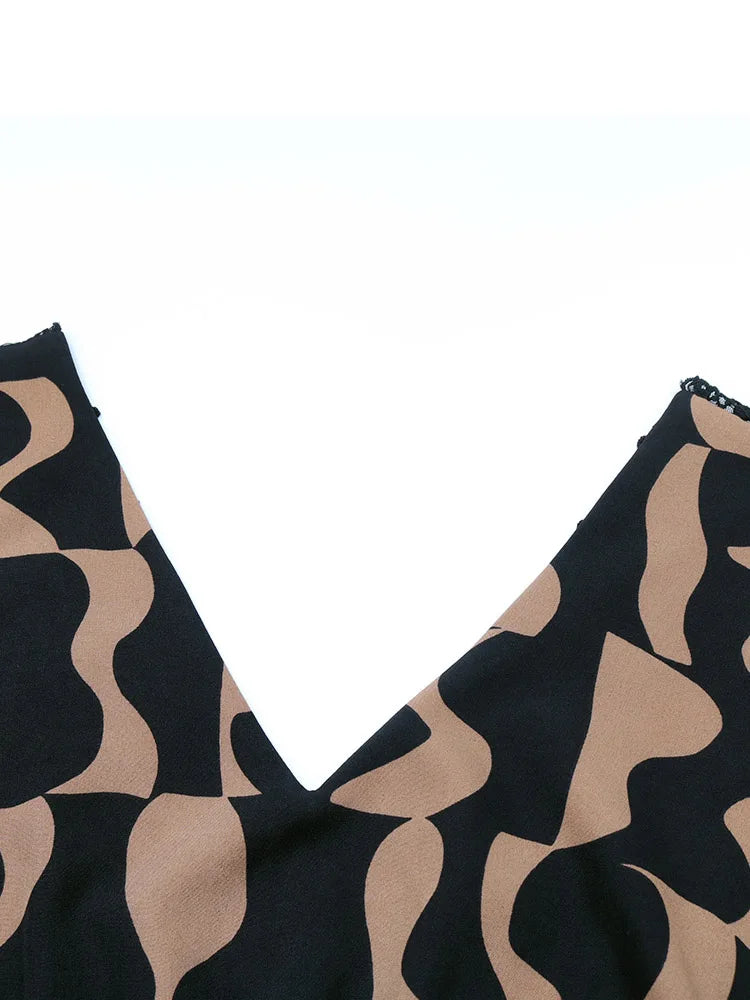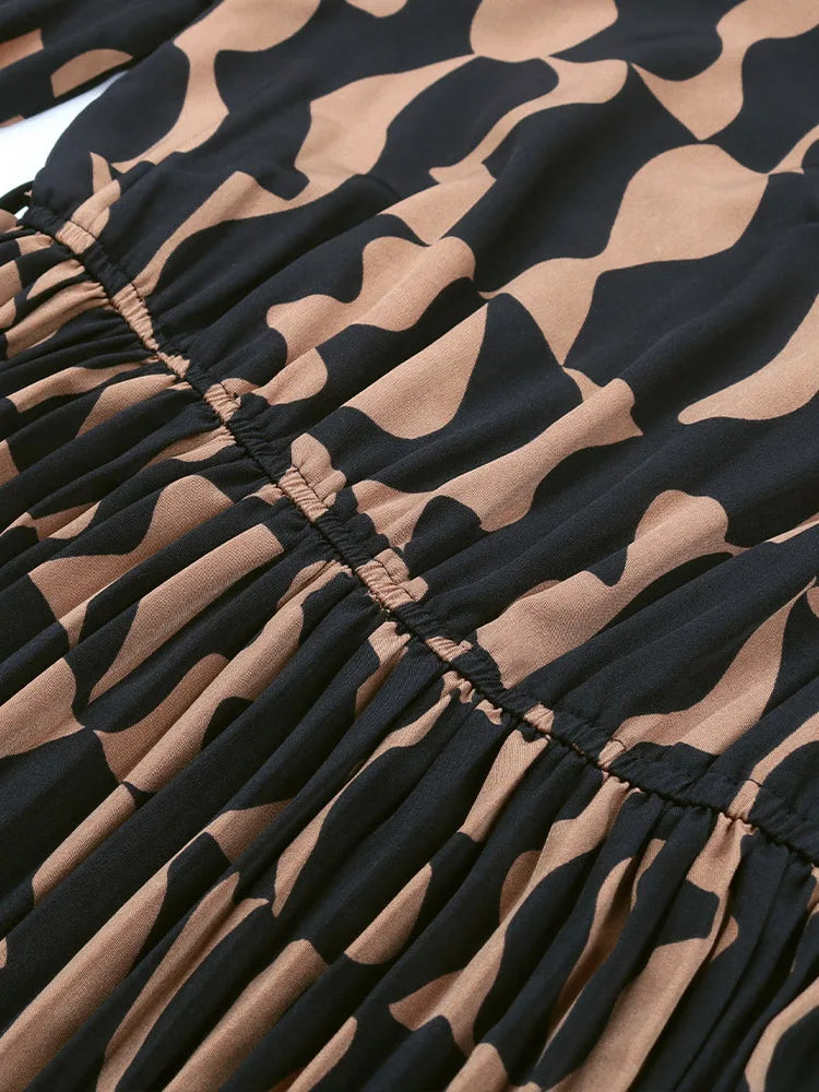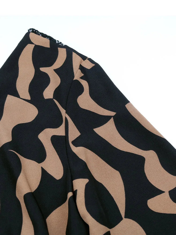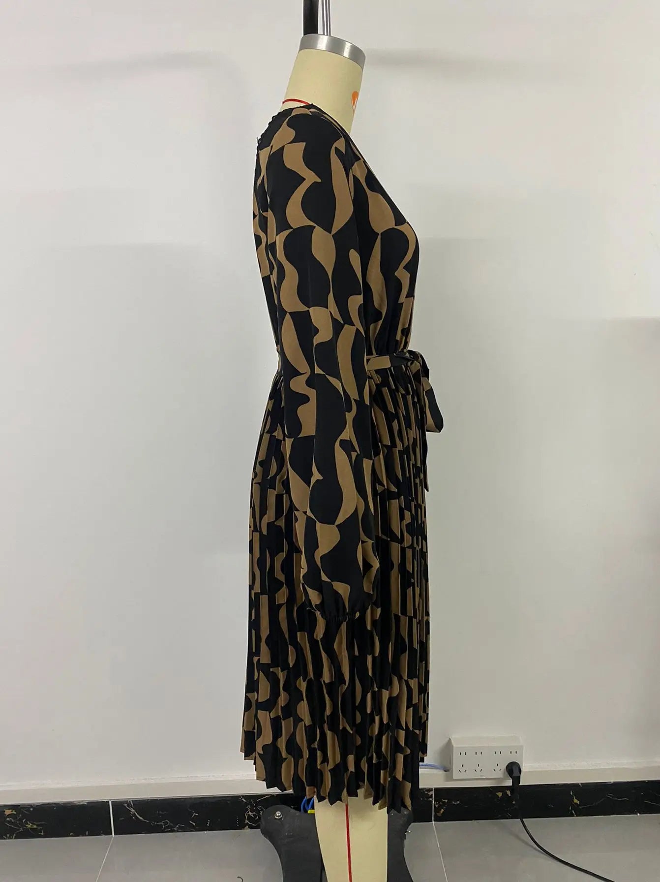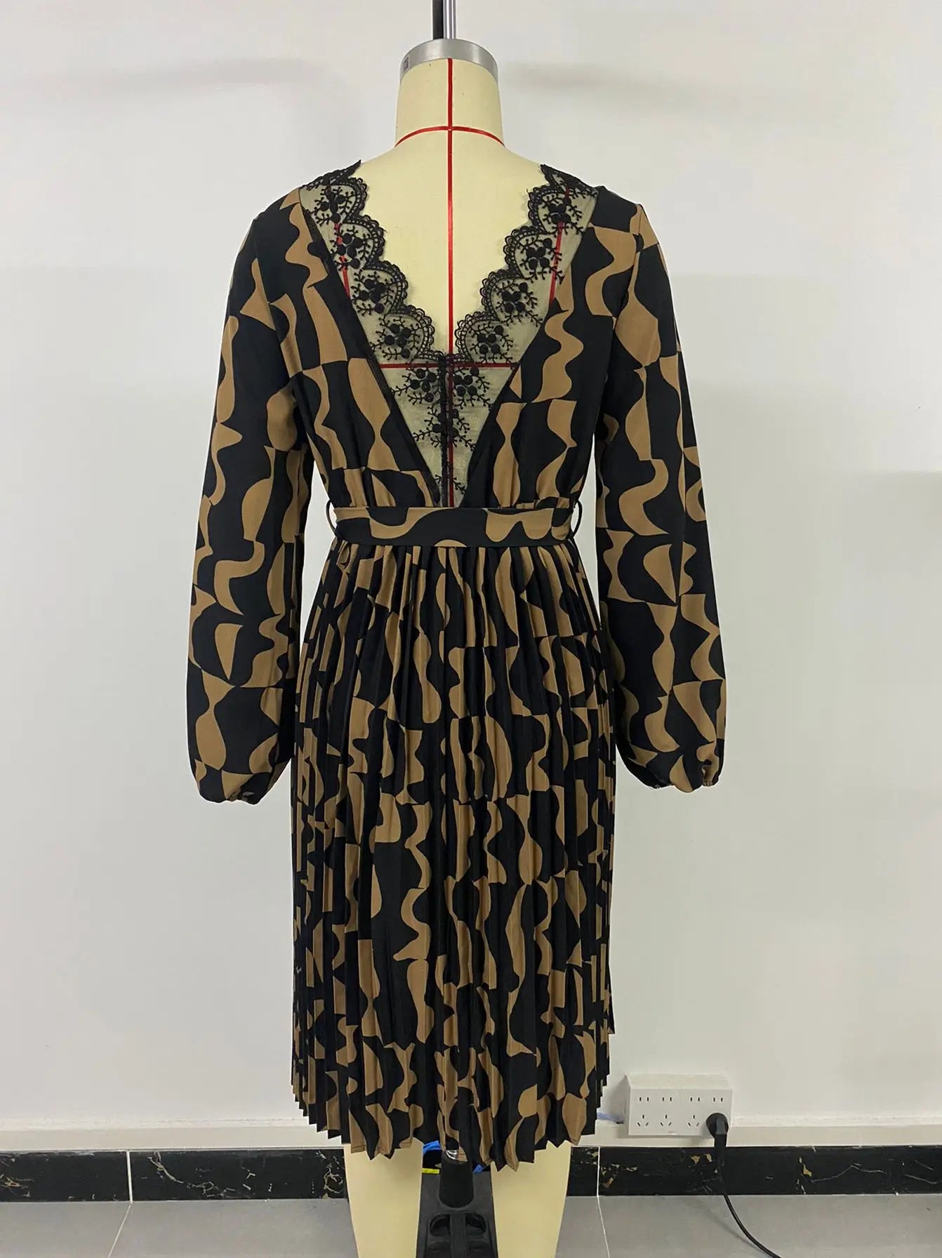 Women's Autumn Winter Long Sleeve Print Elegant V-neck Casual A-Line Knee-Length High Waist Dress