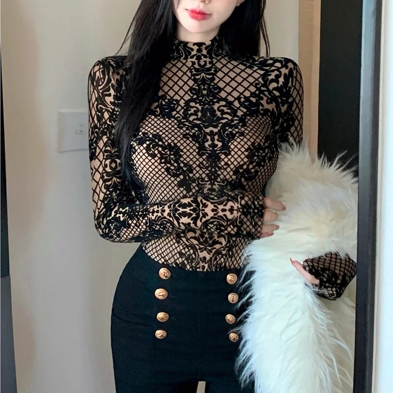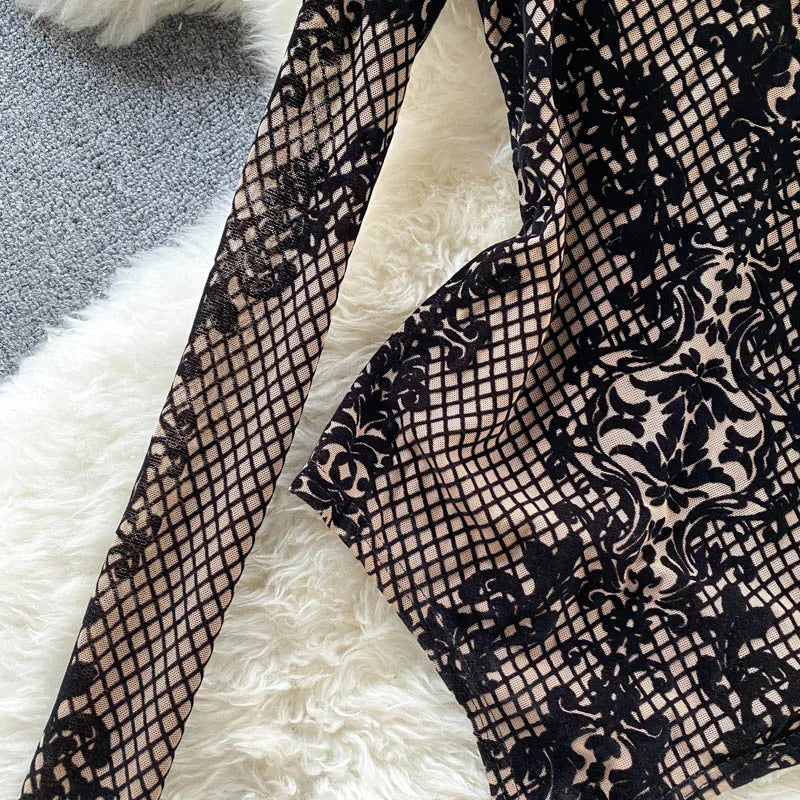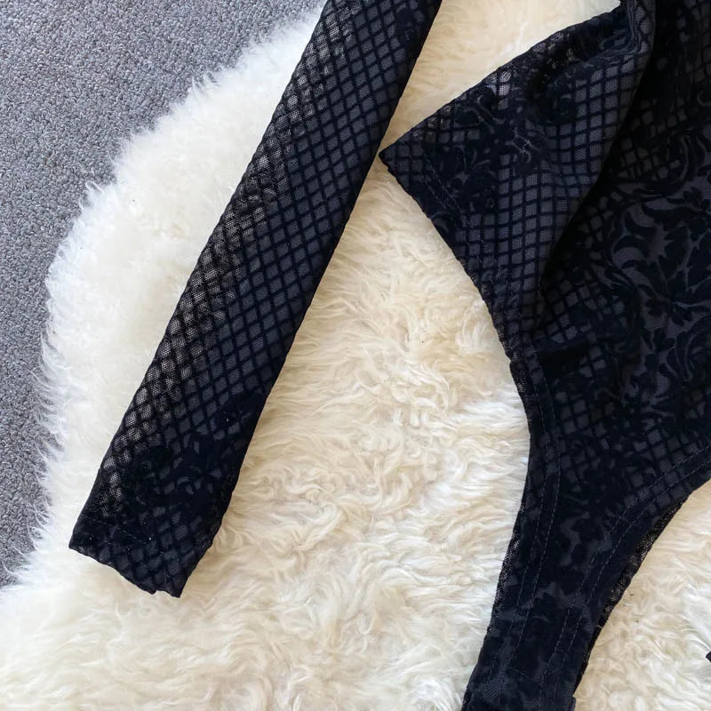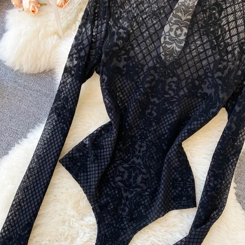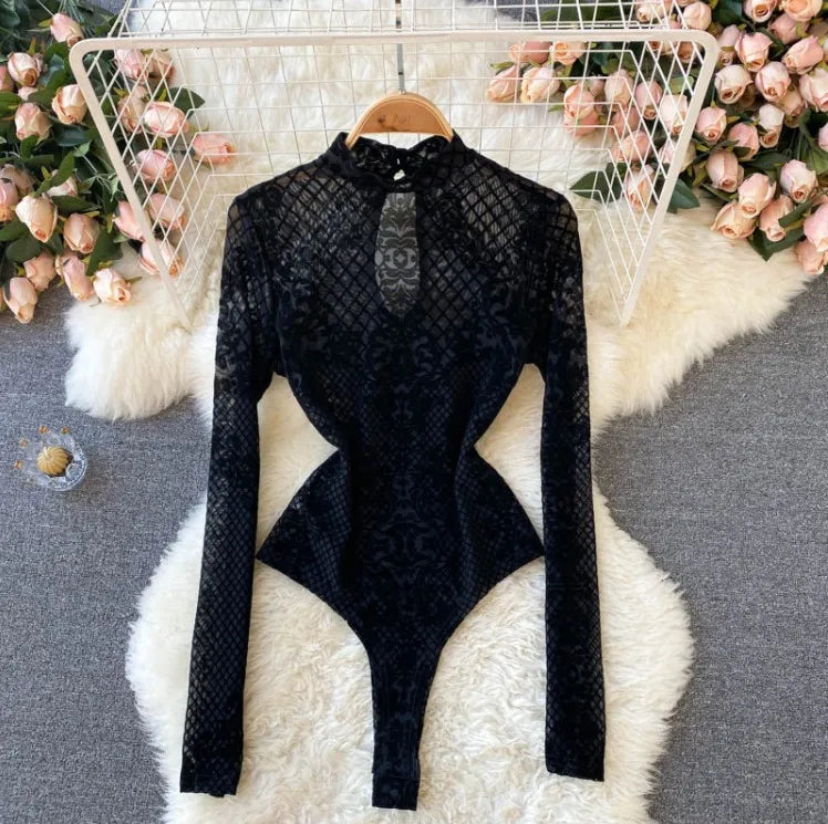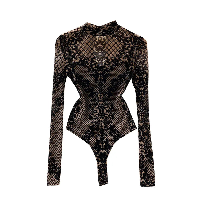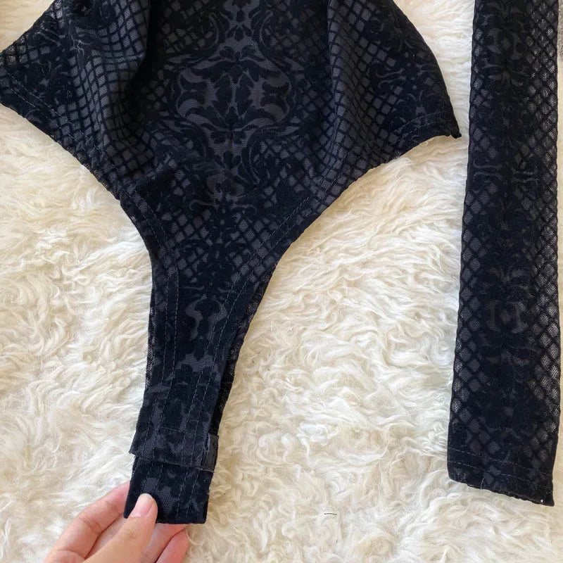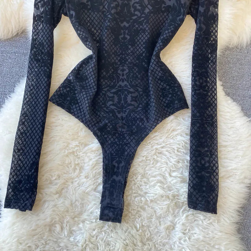 Women's Summer Chic Flocking Slim Backless Bodycon Bodysuit
