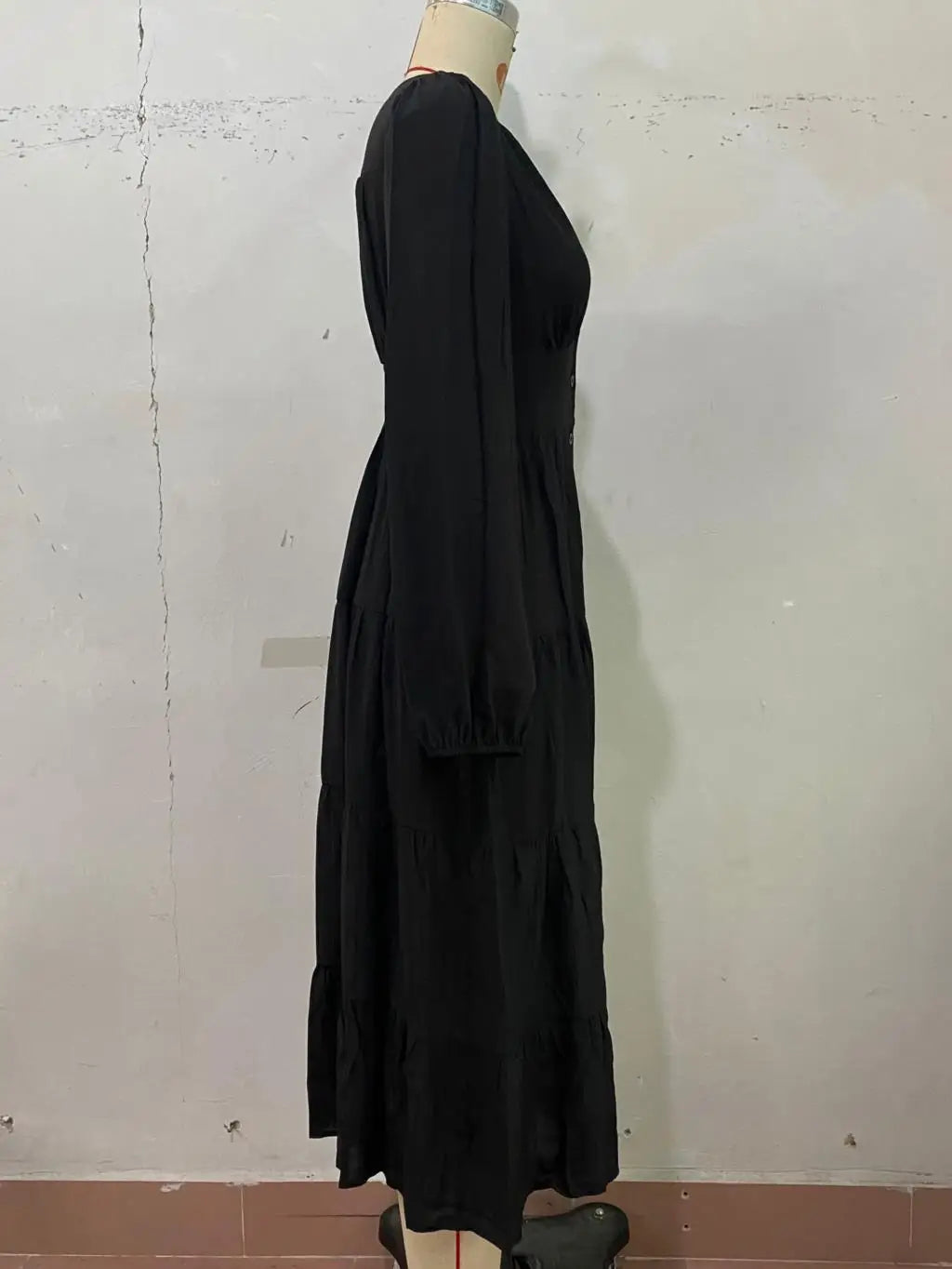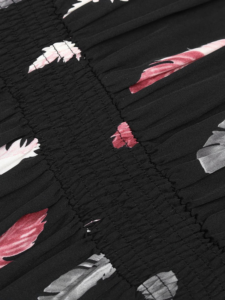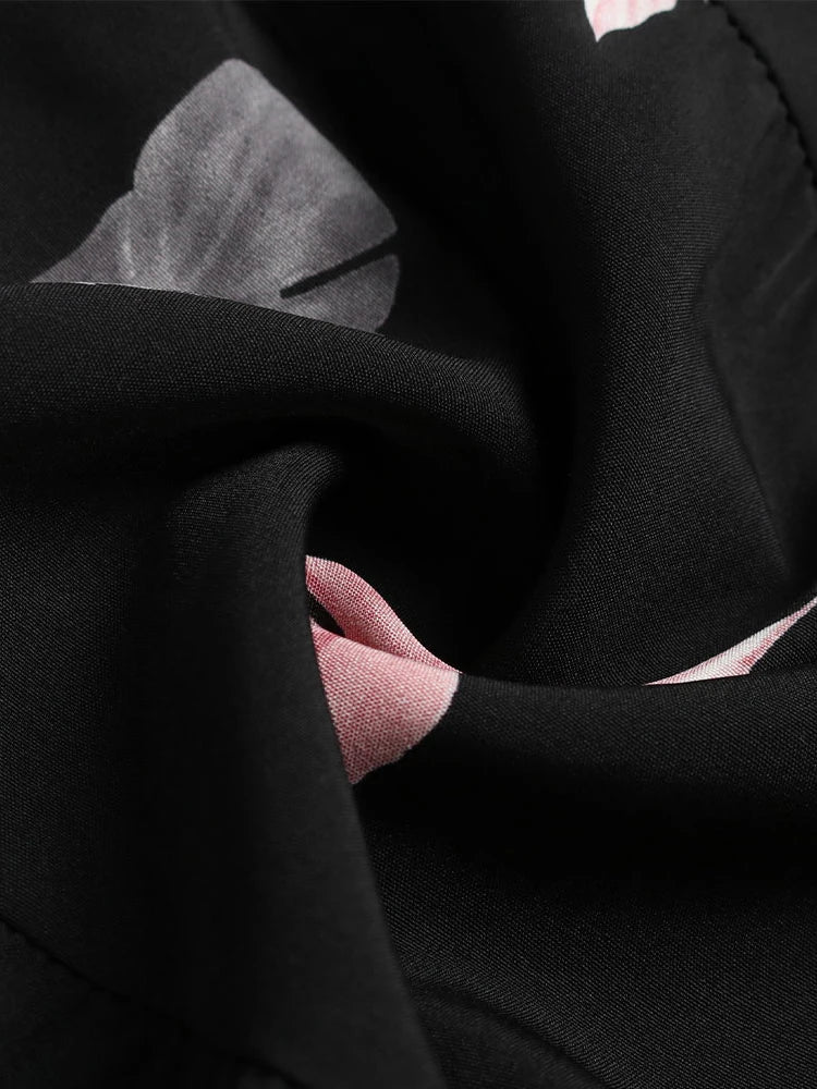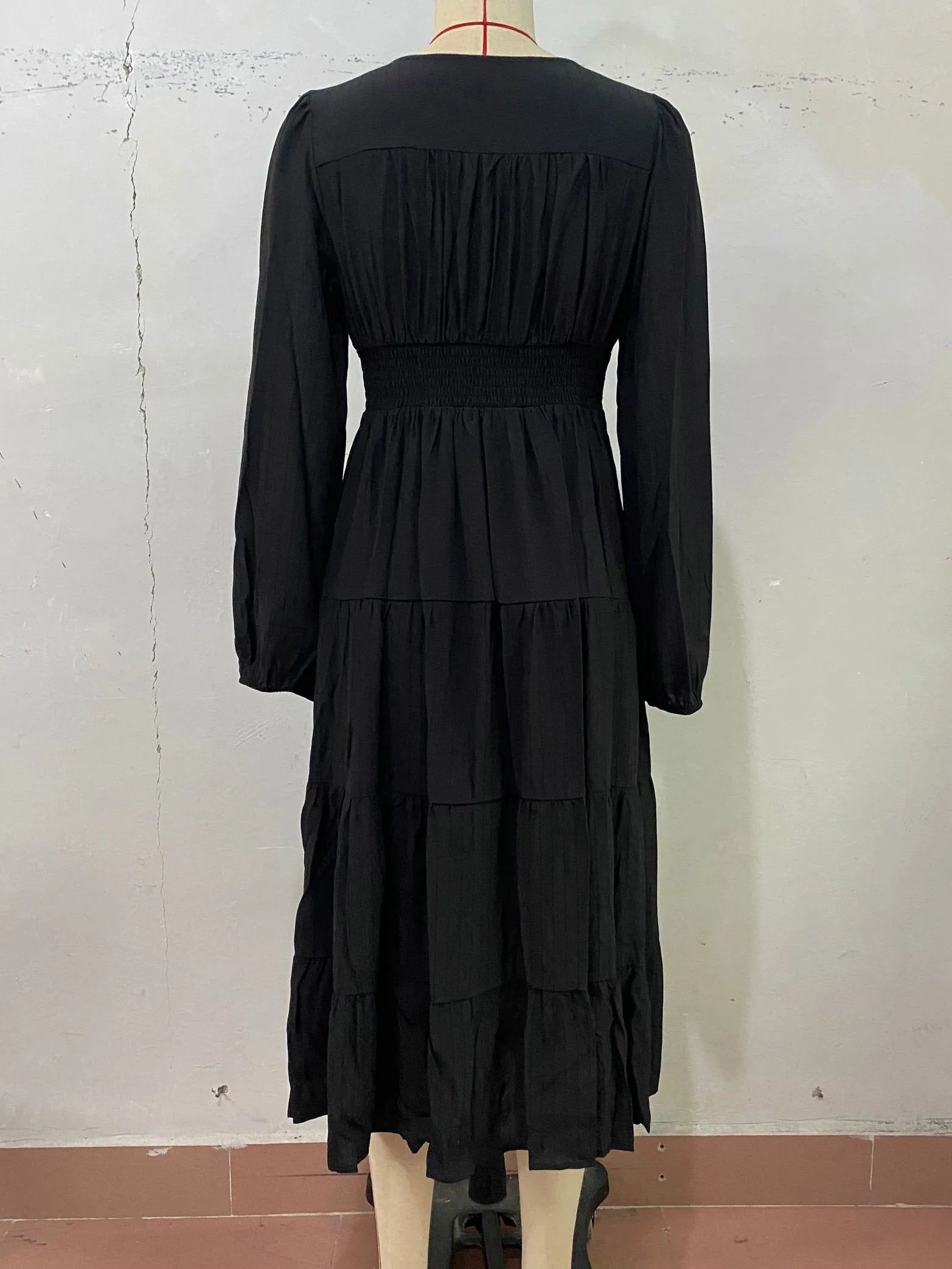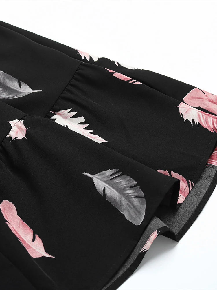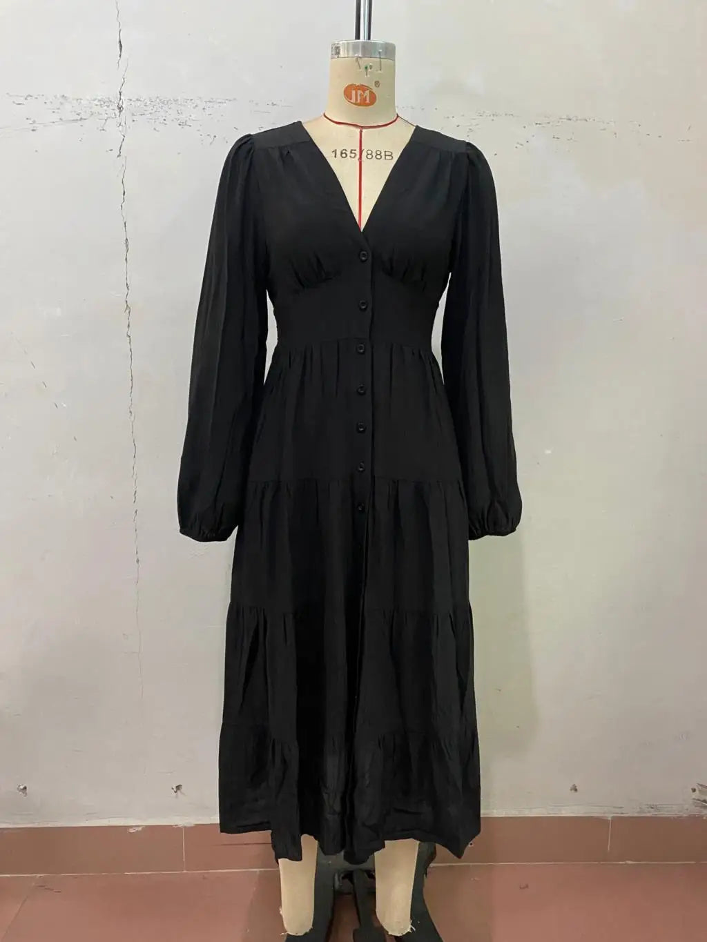 Women's Autumn Winter Casual Print Single Breasted Short Sleeve V Neck High Waist Dress