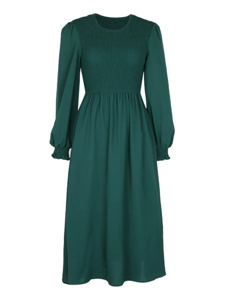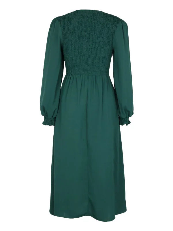 Women's Autumn Winter Elegant V-neck Lace Mid-Length High Waist Dress