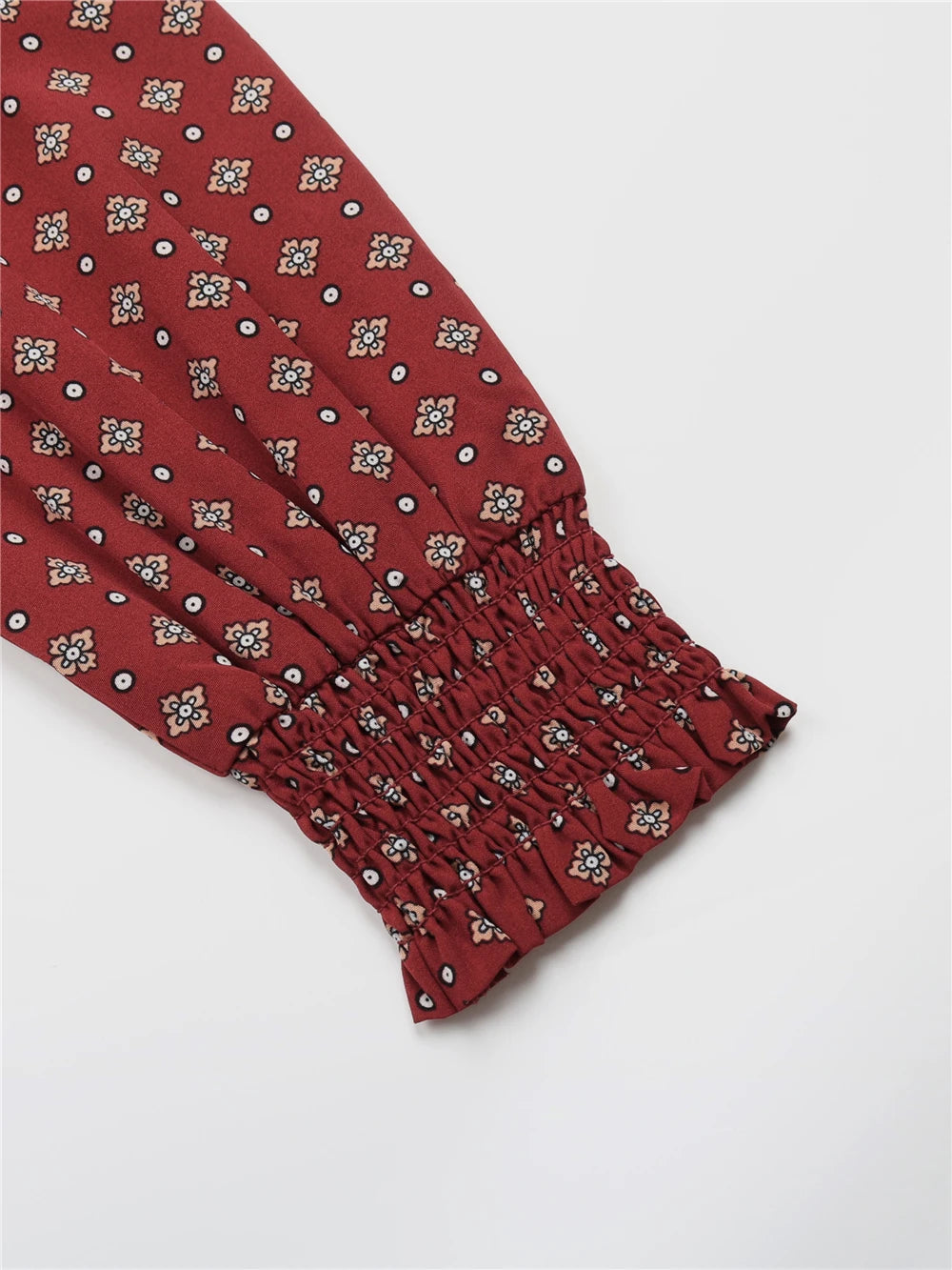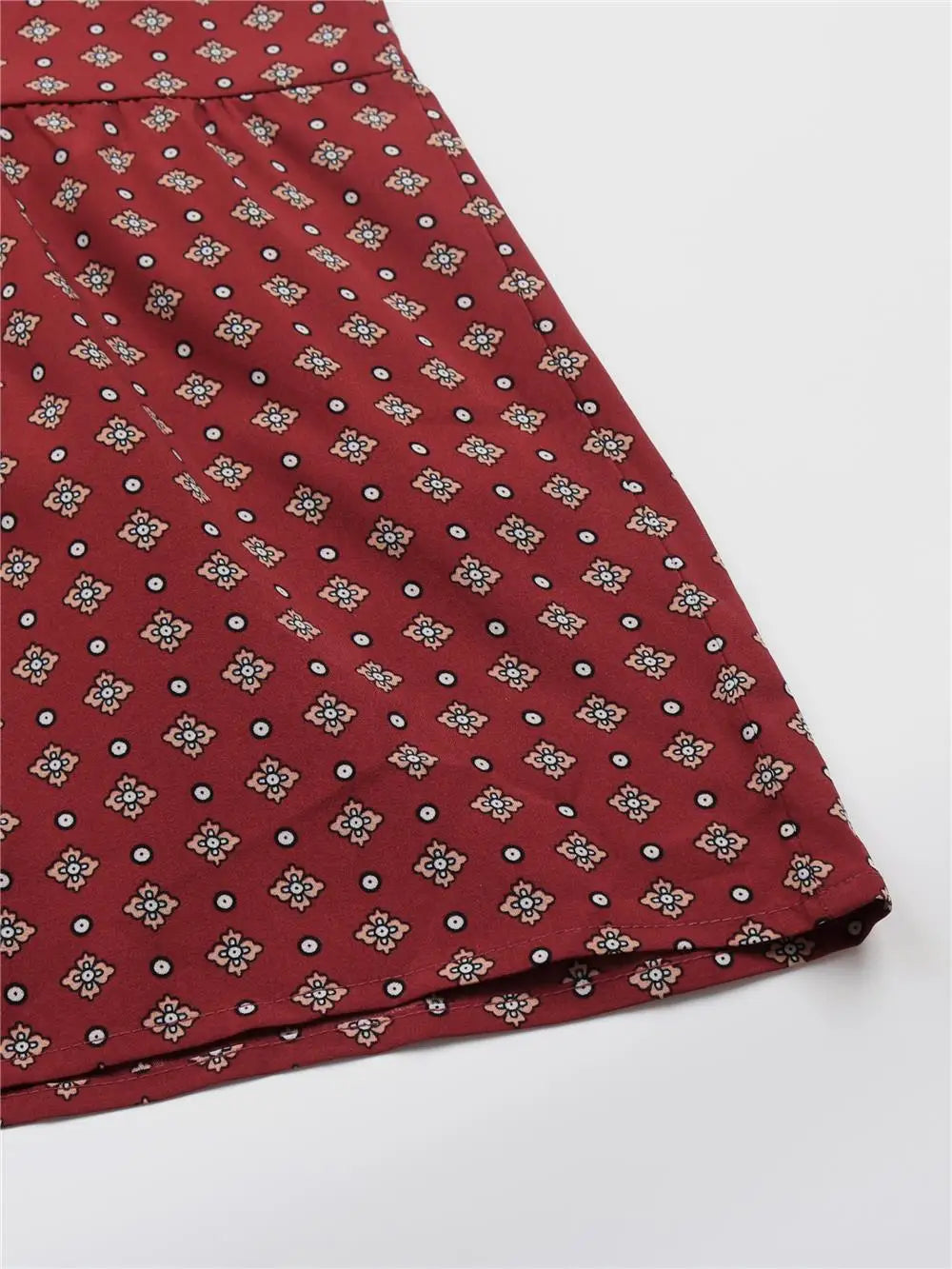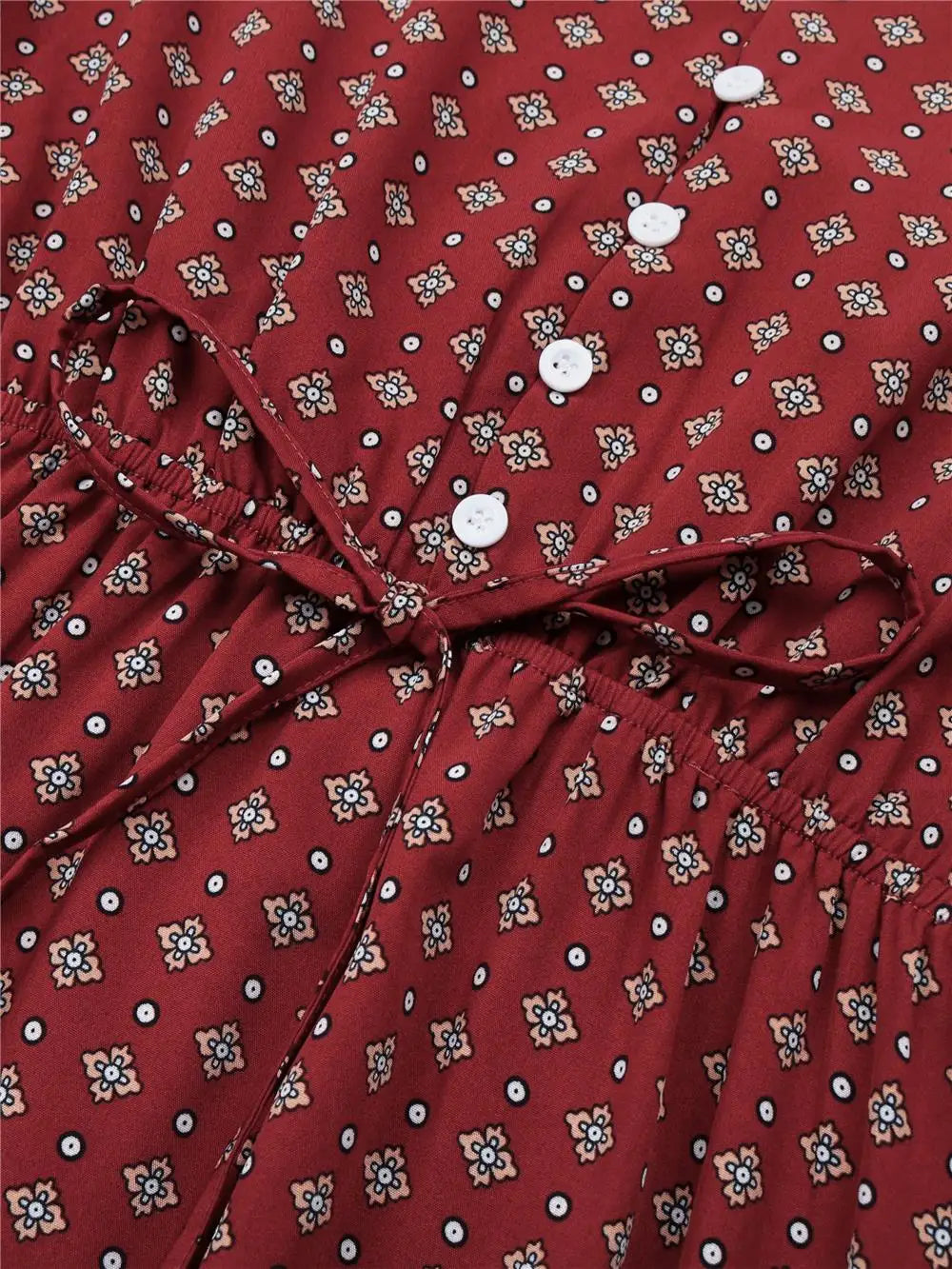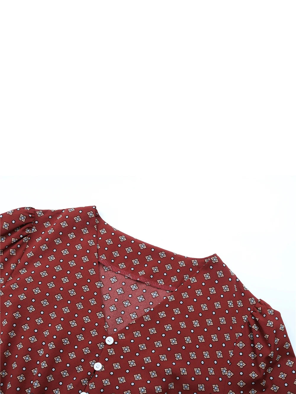 Women's Autumn Winter Long Sleeve Print V-neck Chiffon A-Line Knee Length High Waist Dress