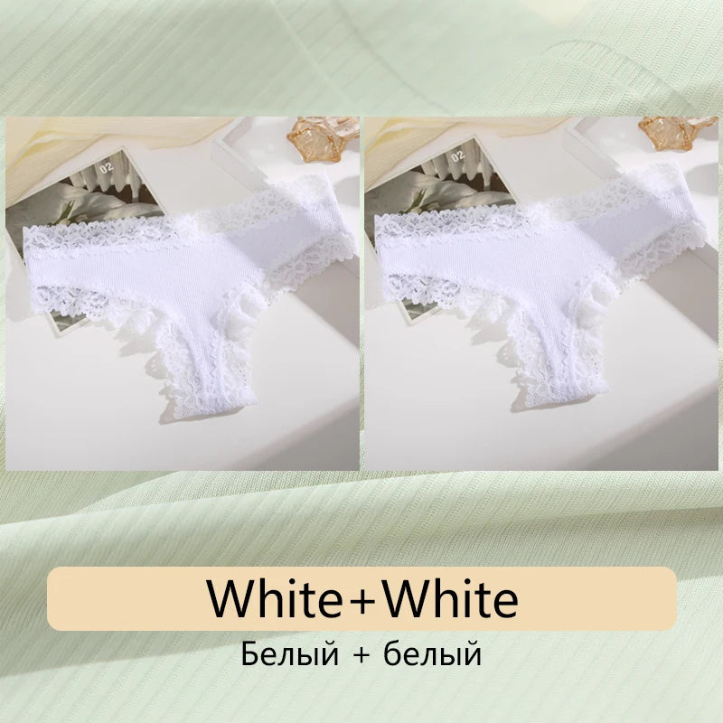 2PCS Women's Cotton Underwear - Lace Floral Low Rise Comfortable Lingerie