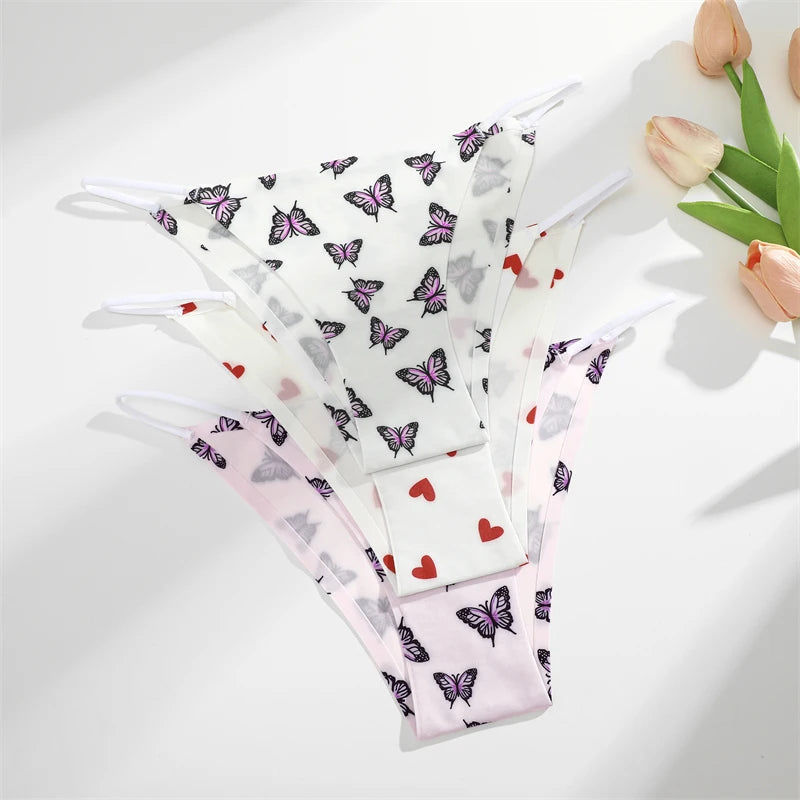 Experience luxurious comfort with this stunning 3-piece seamless silk underwear set. Featuring trendy leopard print with delicate flower and butterfly accents, these low-waist briefs combine elegance with all-day comfort and stretch.