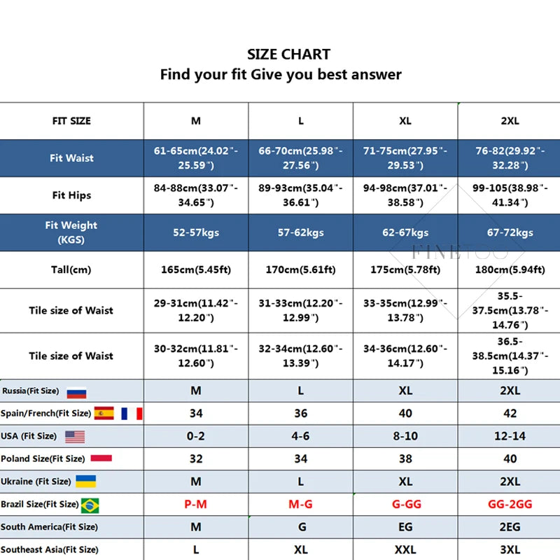 | UK Size | US Size | Euro Size | Waist (cm) | Hips (cm) |