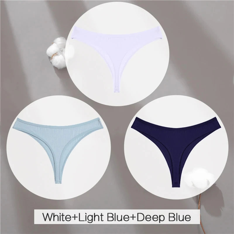 Women's Soft Cotton Thongs 3-Pack - Comfortable Low-Rise Underwear