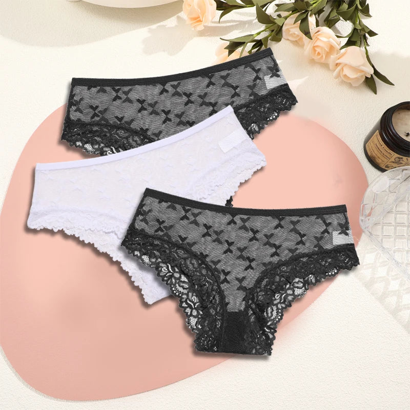 Elevate your lingerie collection with this beautiful 3-piece lace underwear set. Featuring delicate floral hollow-out detailing and a flattering design, these briefs combine elegance with everyday comfort.