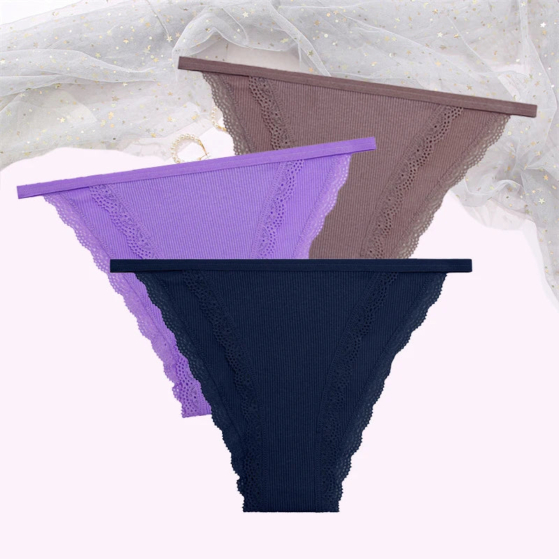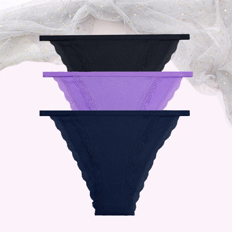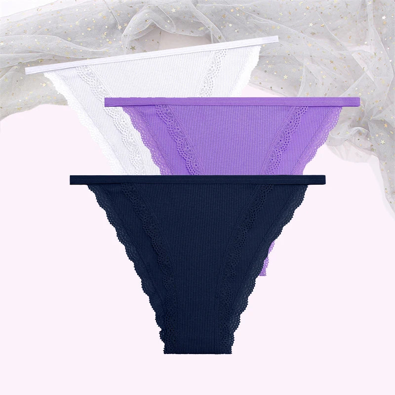 Women's Cotton Lace Briefs 3-Piece Set - Comfortable Underwear