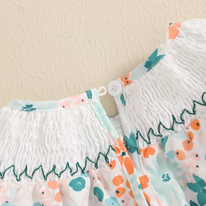 Dress your little princess in this charming floral letter embroidery romper. Featuring delicate smocked details and beautiful floral prints, this playsuit is perfect for summer adventures and special occasions.