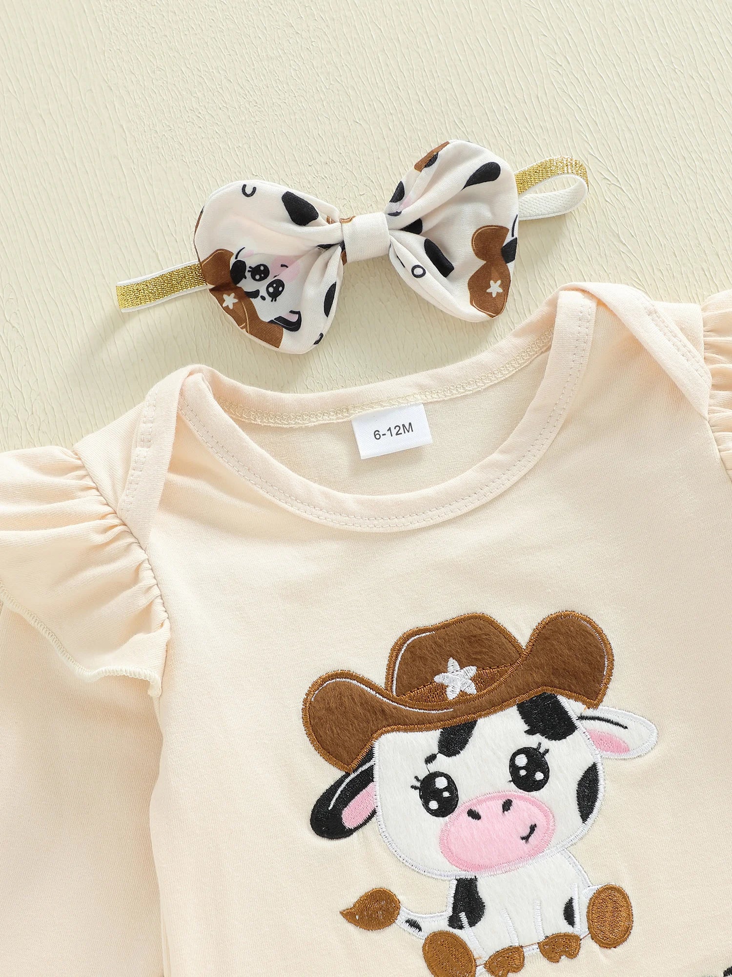 Adorable Cow Embroidery 3-Piece Outfit Set