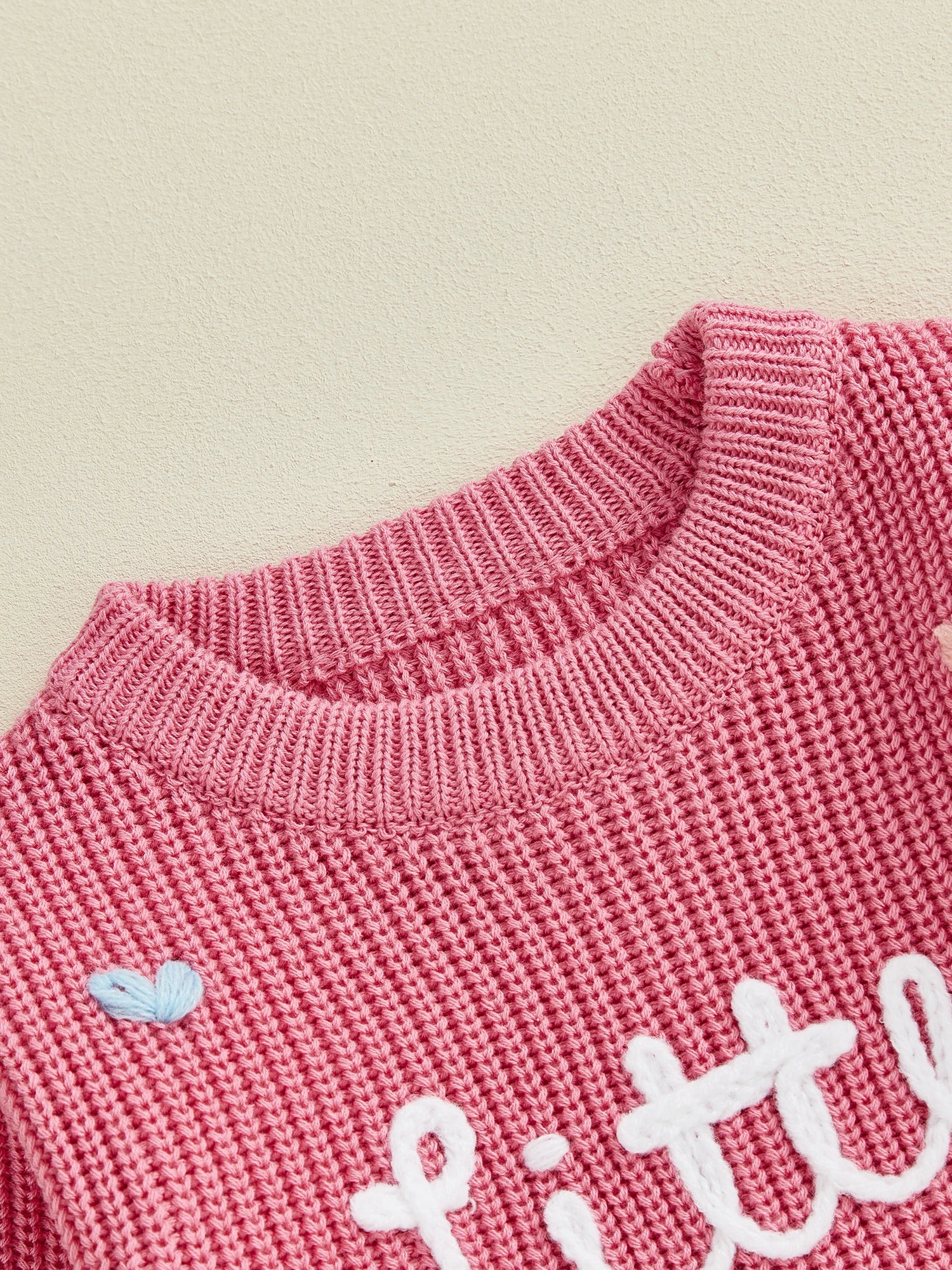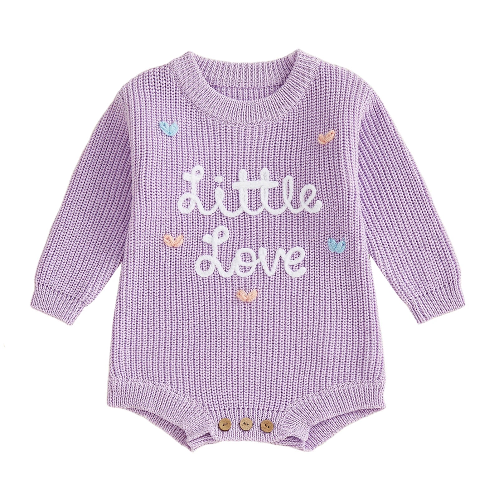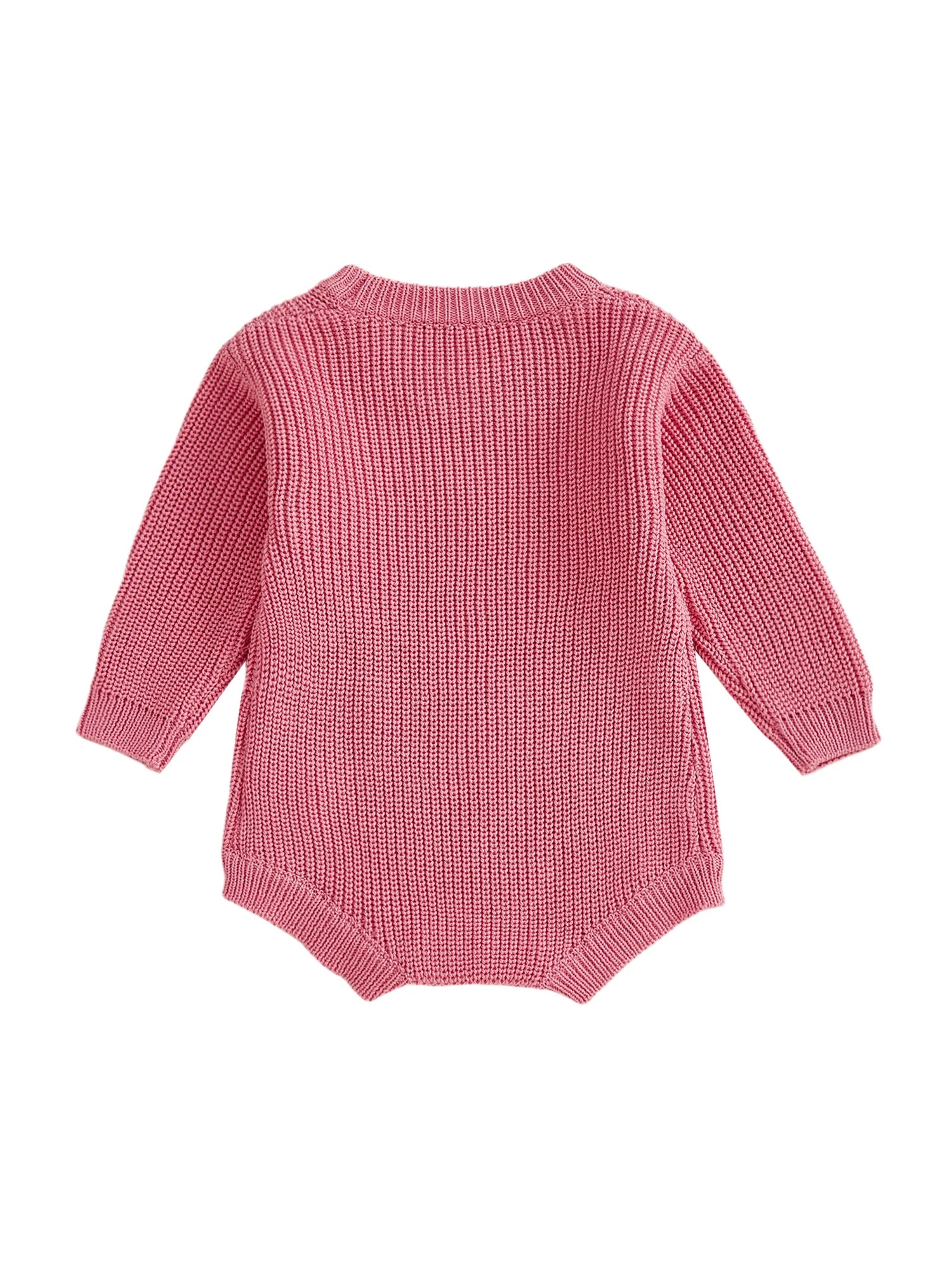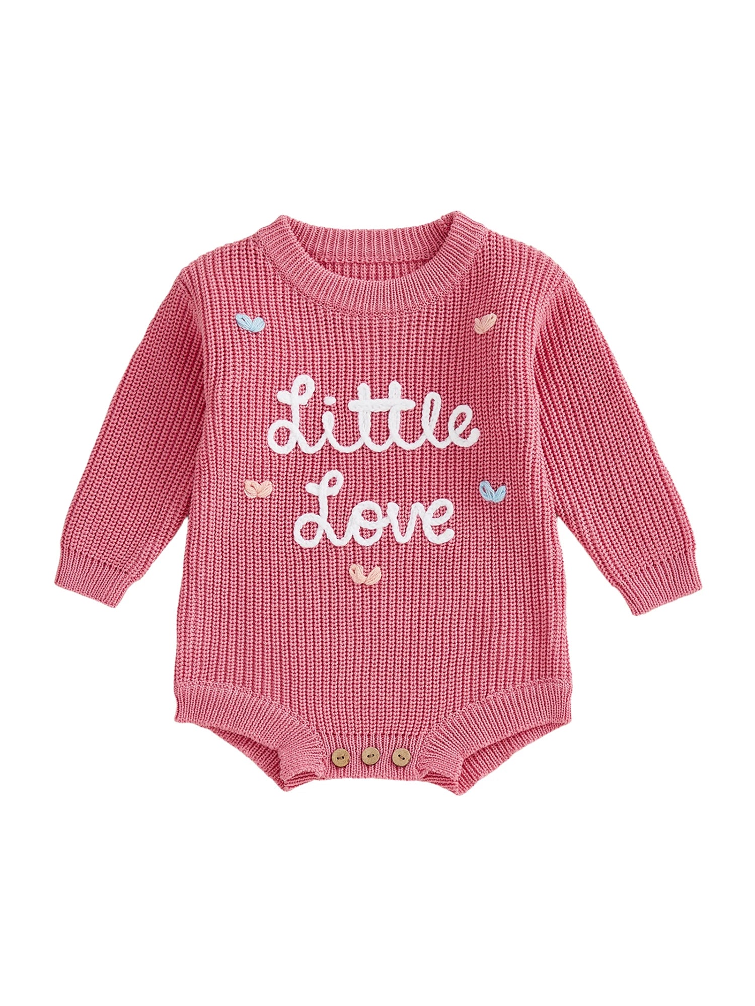 Dress your little one in this charming knit romper featuring sweet letter and heart embroidery, perfect for celebrating Valentine's Day in comfort and style. The soft, cozy knit fabric keeps baby warm while the one-piece design makes dressing a breeze.