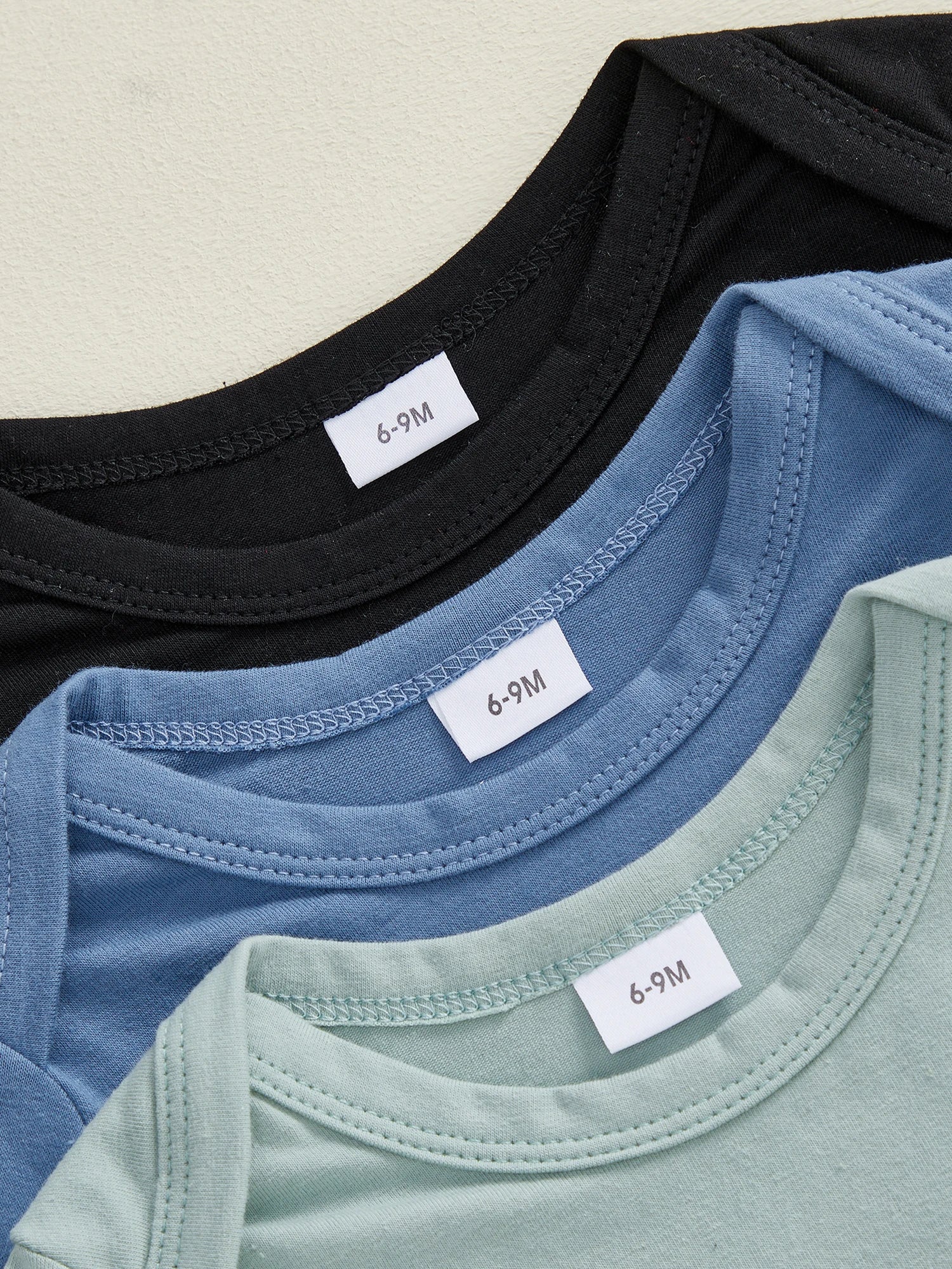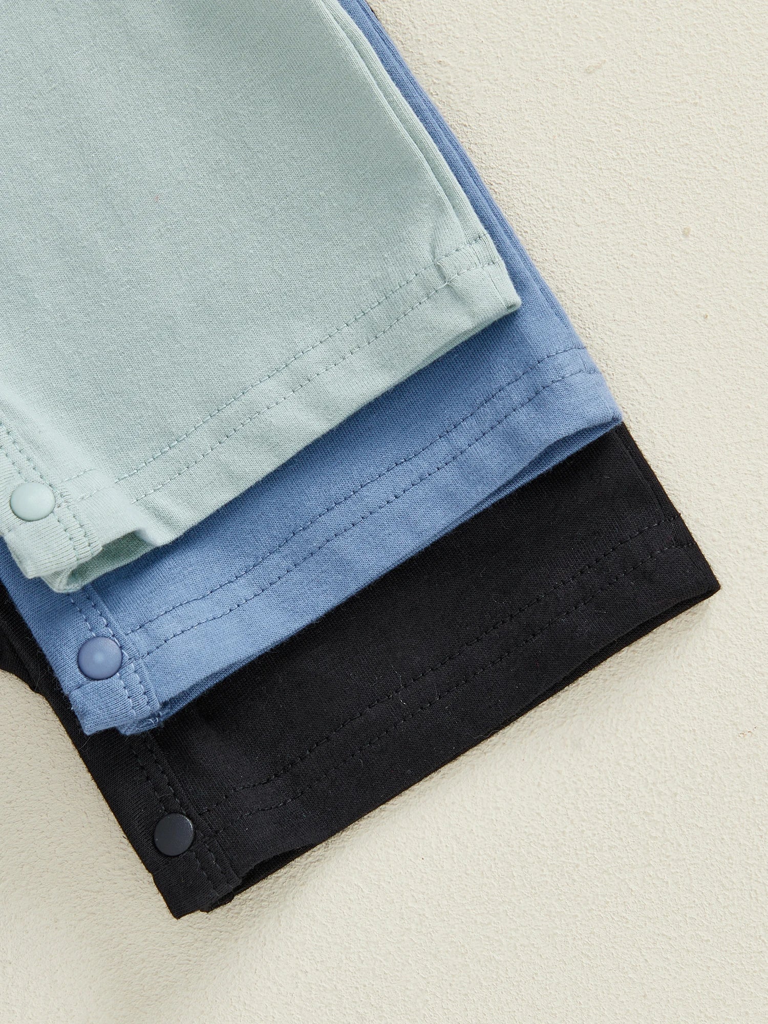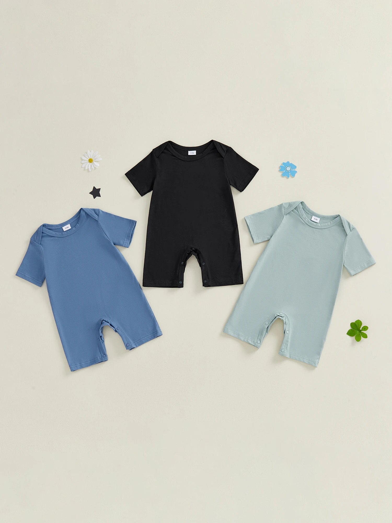 Baby Summer Romper 3-Pack - Solid Color Short Sleeve Jumpsuits