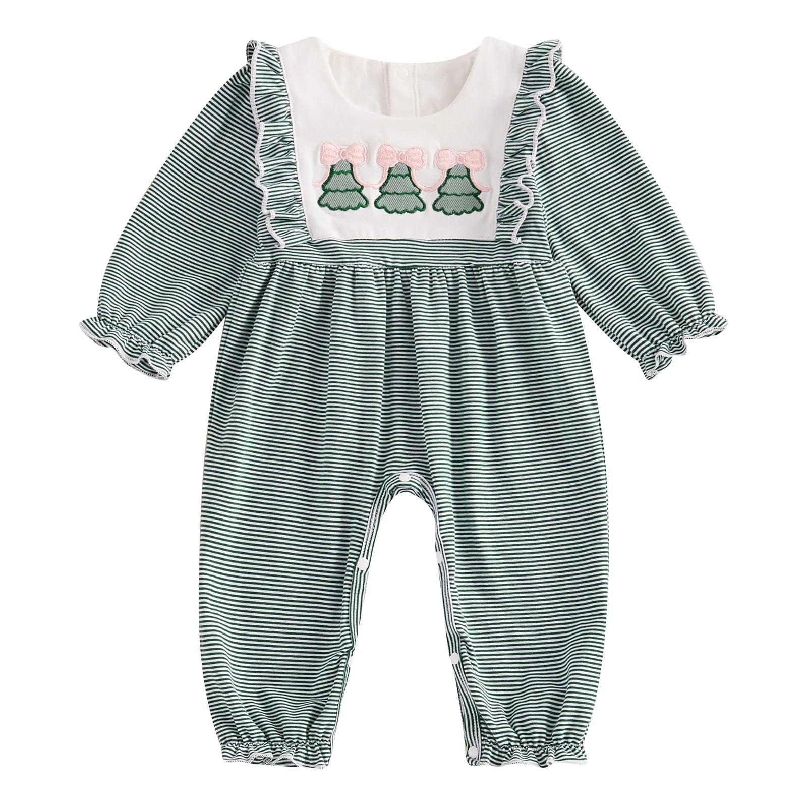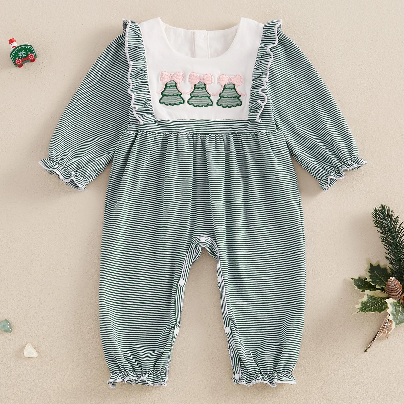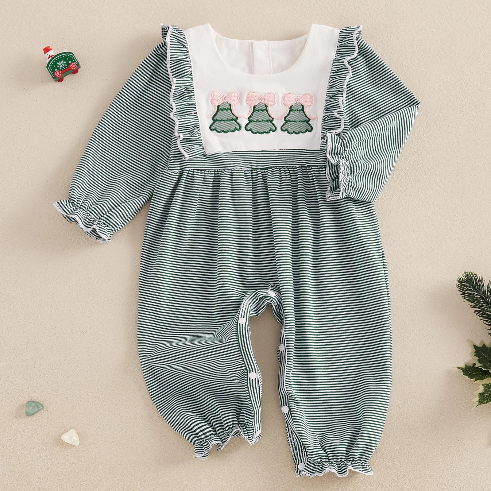 Charming Christmas Jumpsuit with Santa and Tree Embroidery