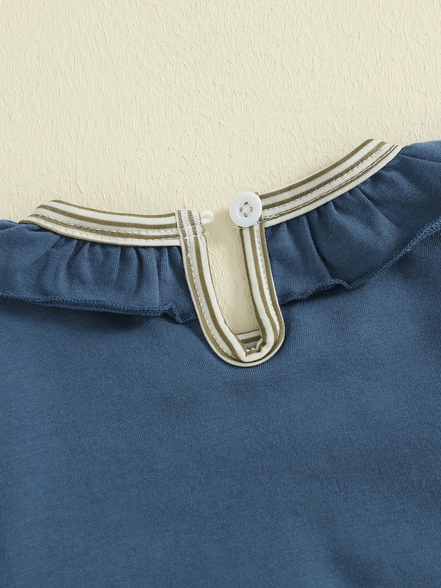 - Charming ruffled round neckline with bow accent