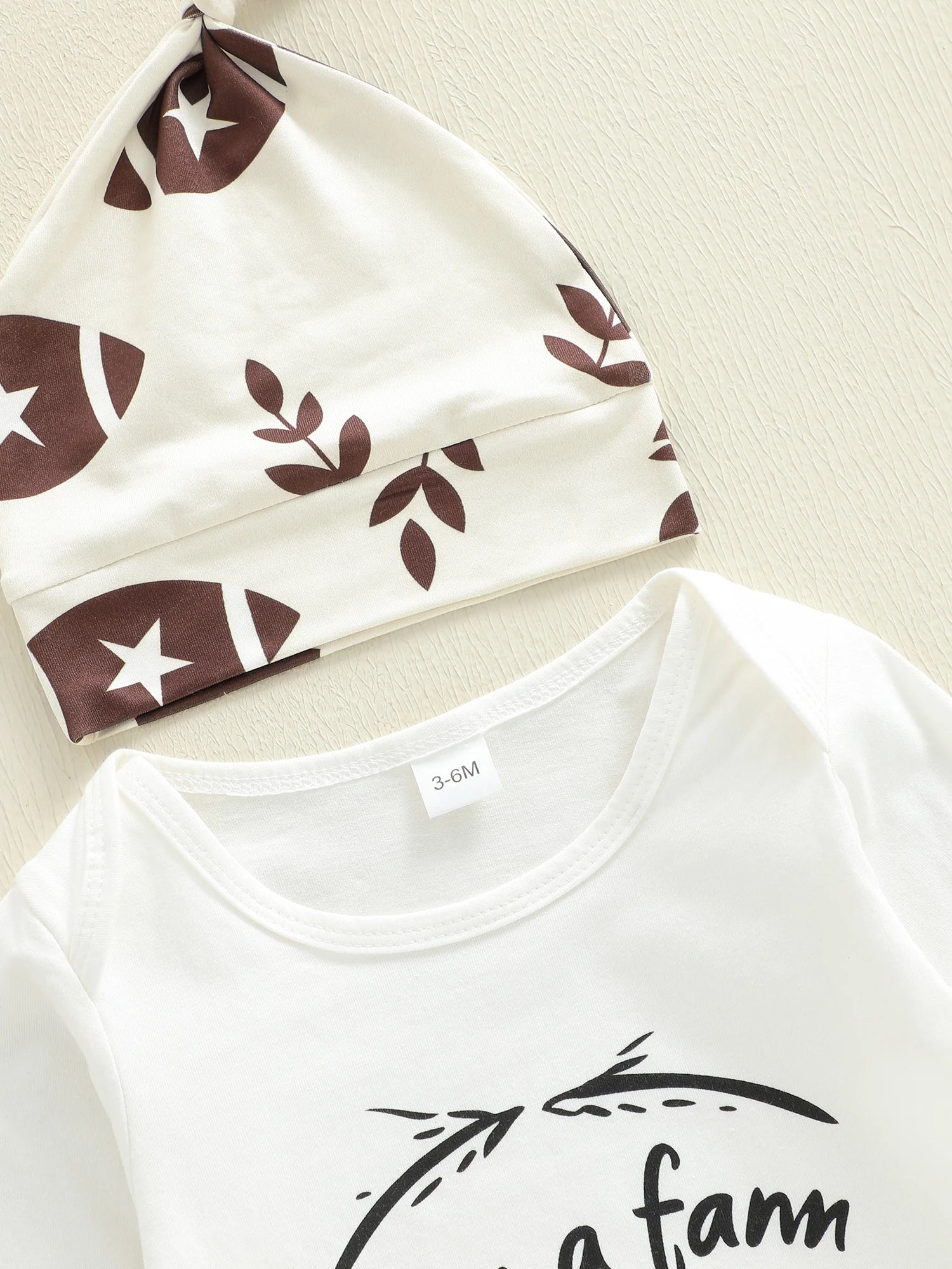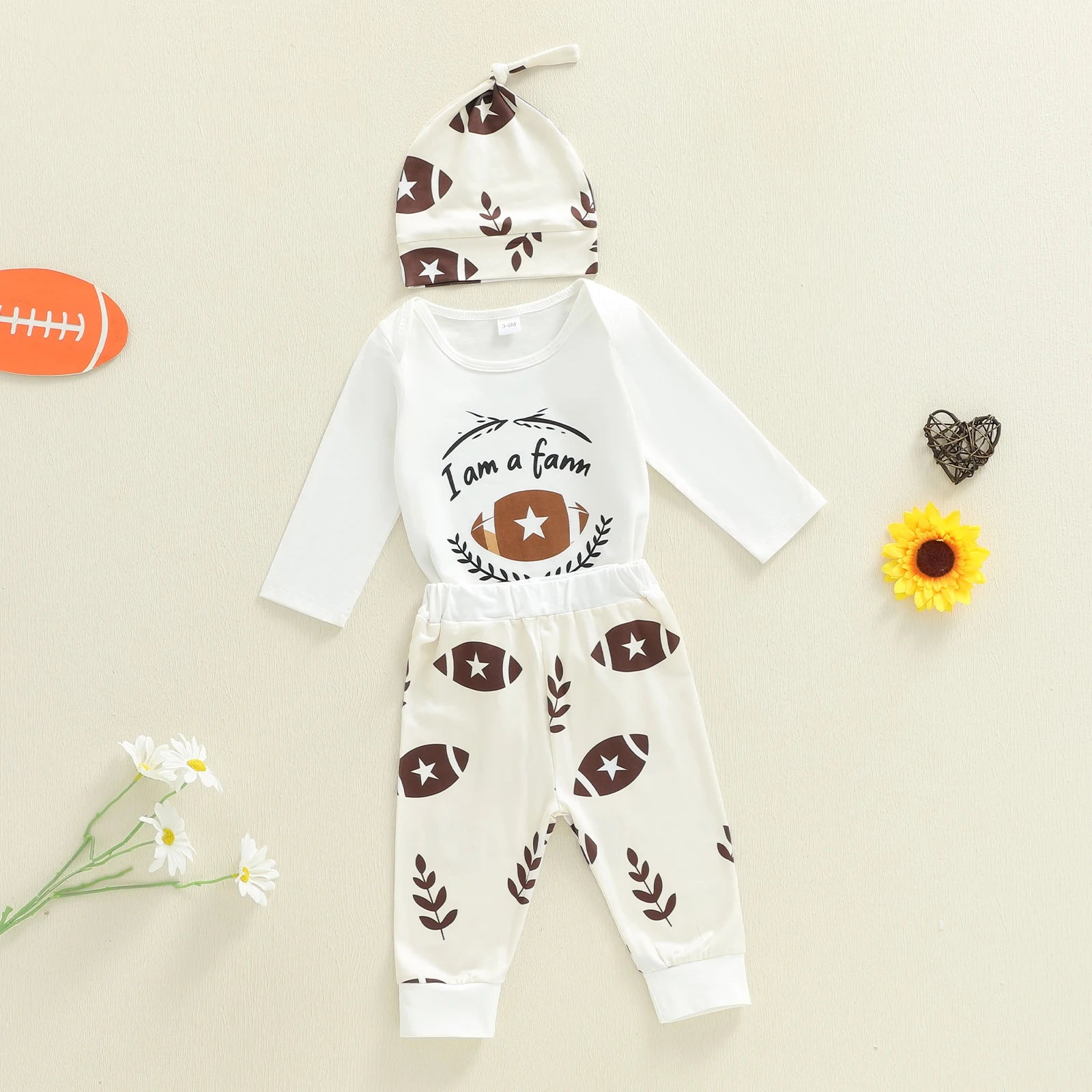 Baby Boys Autumn Winter Clothes Set - Letter Print Long Sleeve Romper, Football Leaf Pants & Hat
