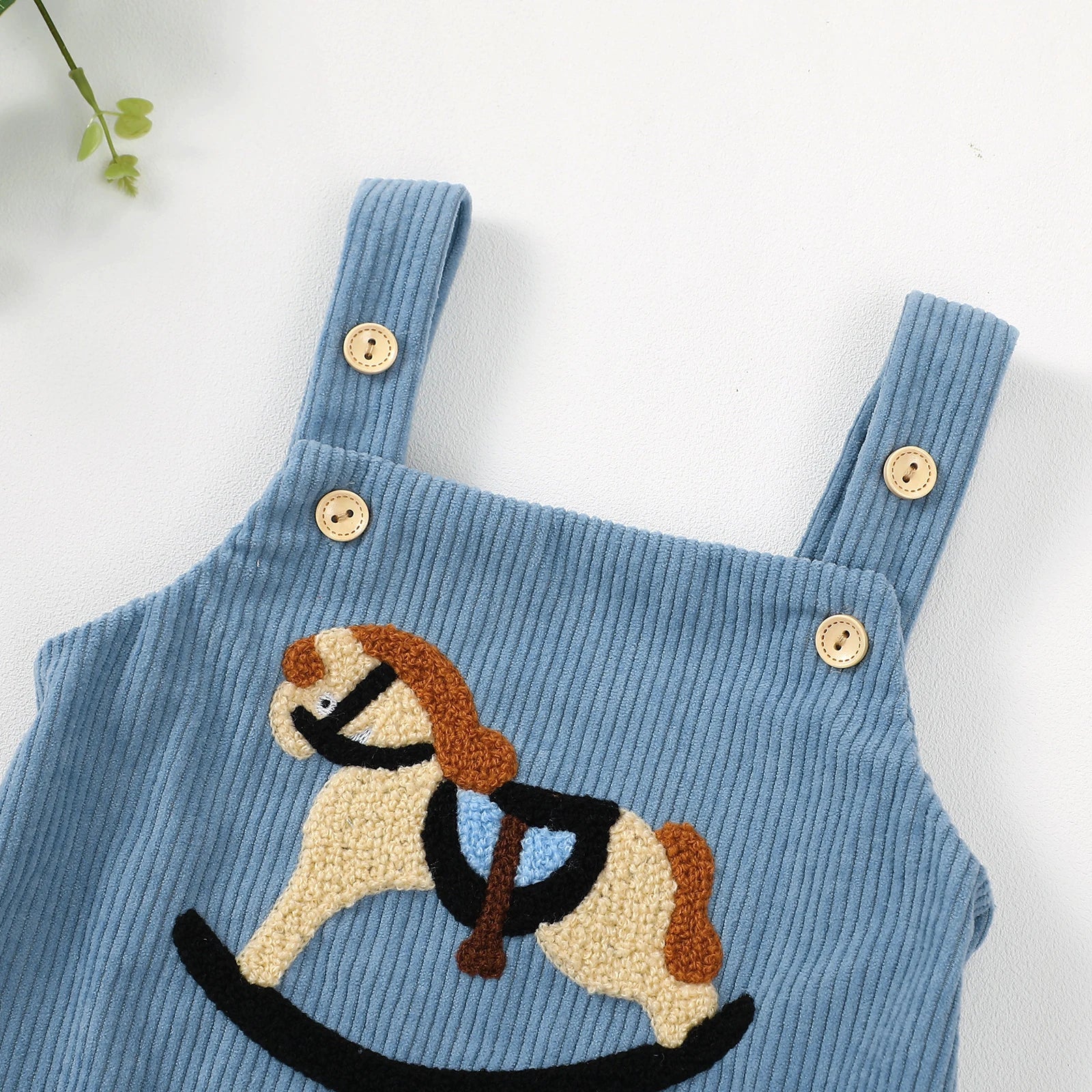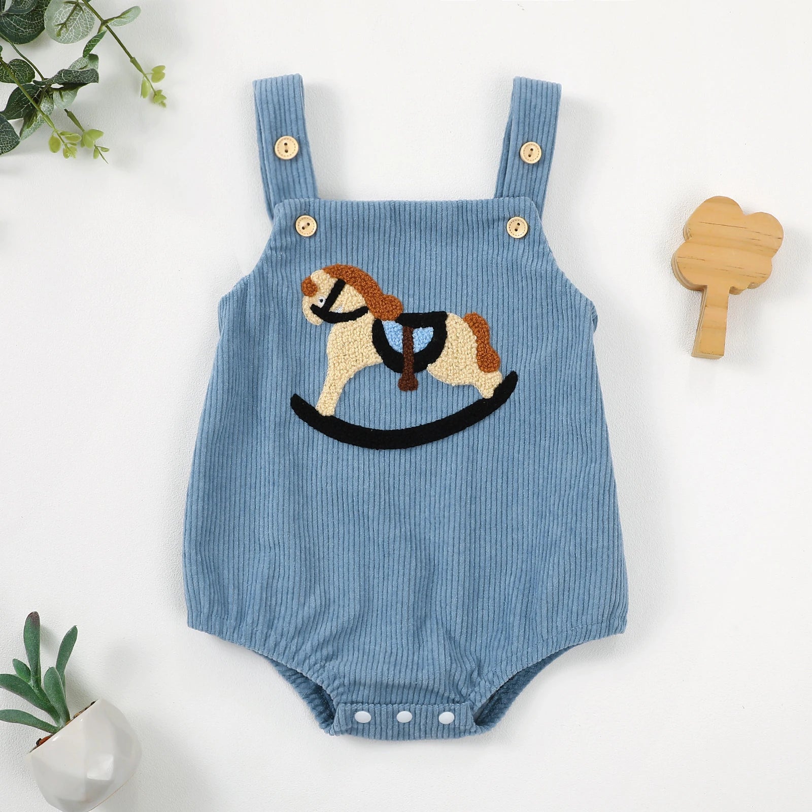 Baby Overalls Romper - Rocking Horse Embroidered Sleeveless Corduroy Bodysuit