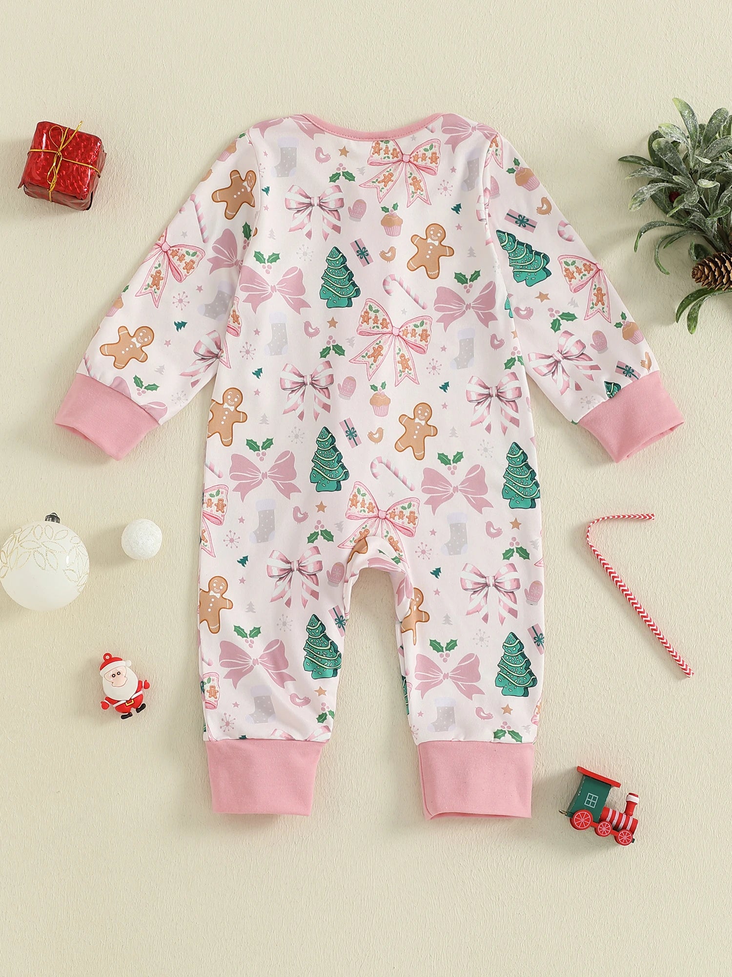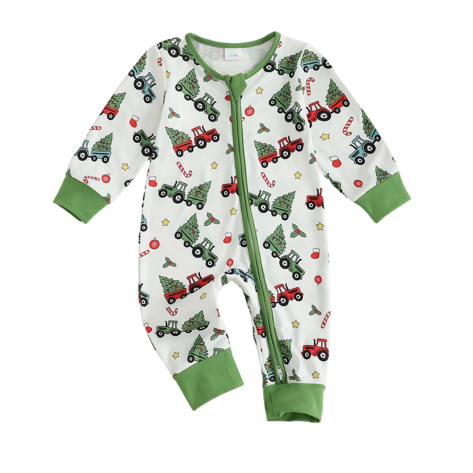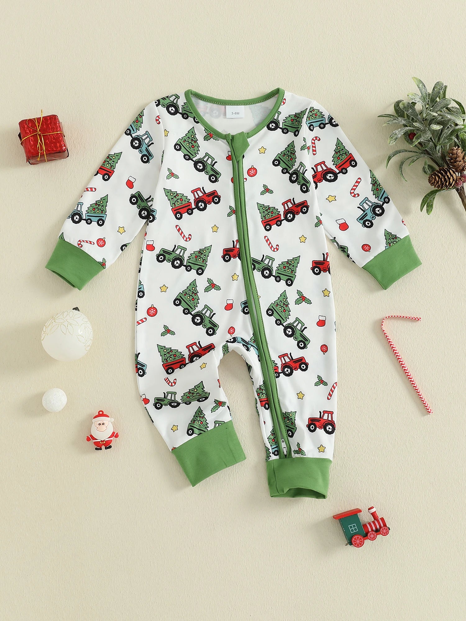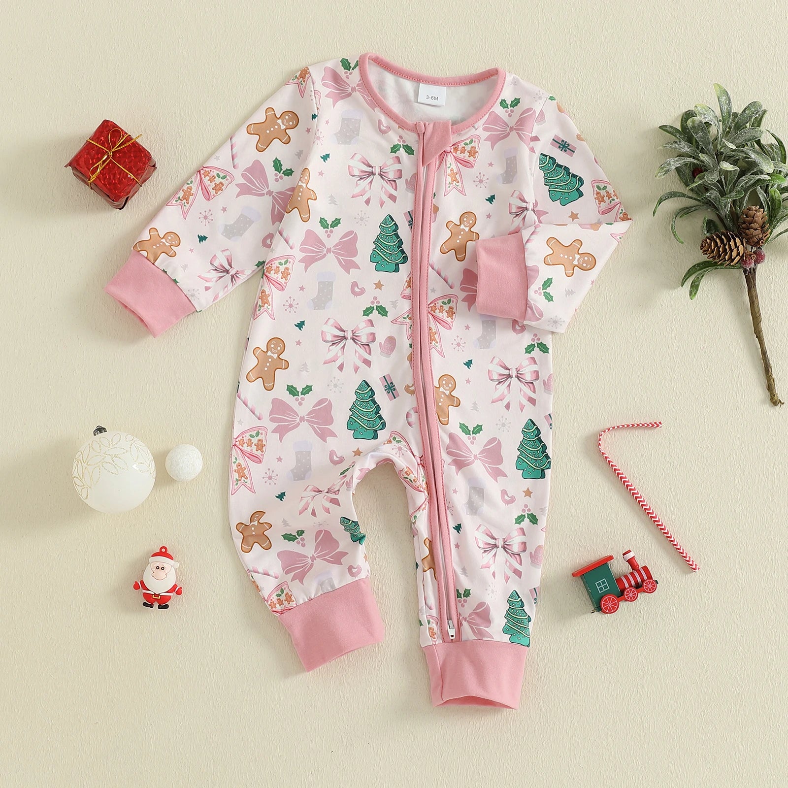 Baby Christmas Romper - Xmas Print Zipper Jumpsuit