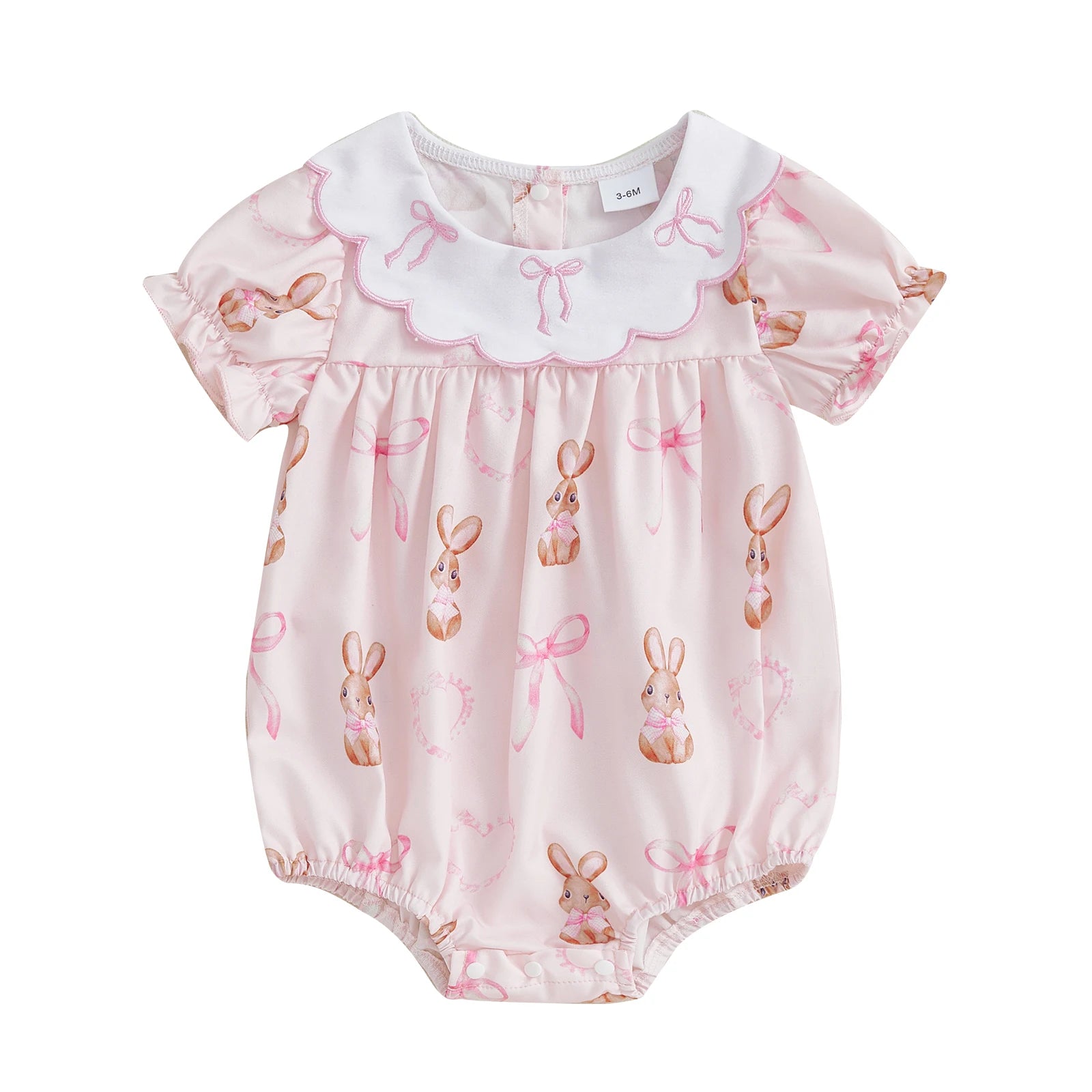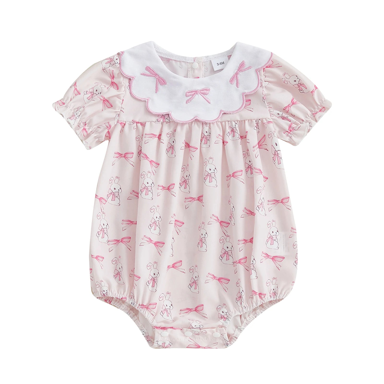 Easter Baby Girls Cute Romper - 3 Style Rabbit Bow Print Doll Collar Ruffle Short Sleeve Bodysuit (0-18M)