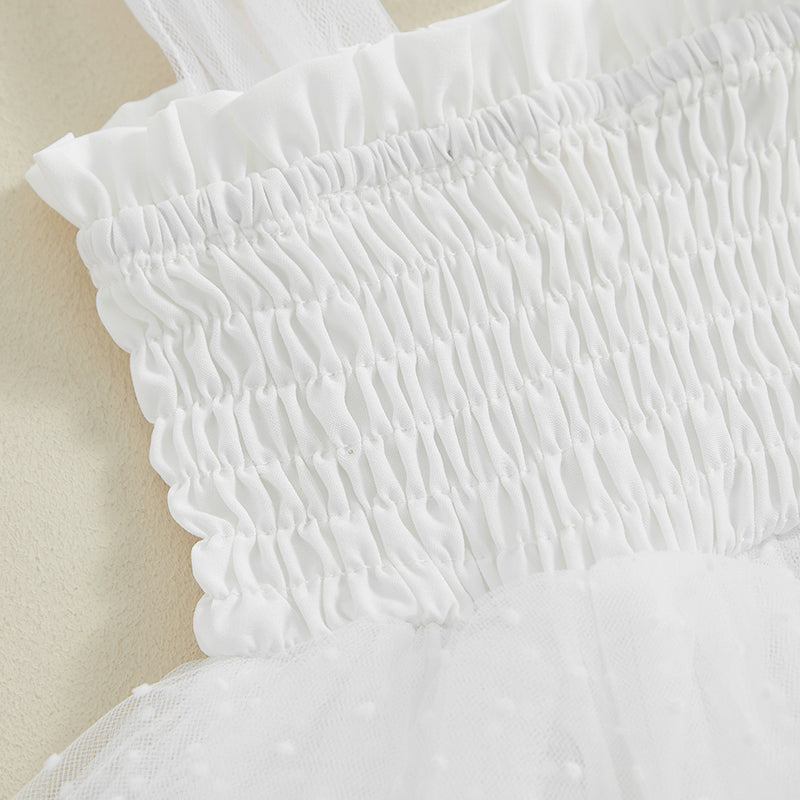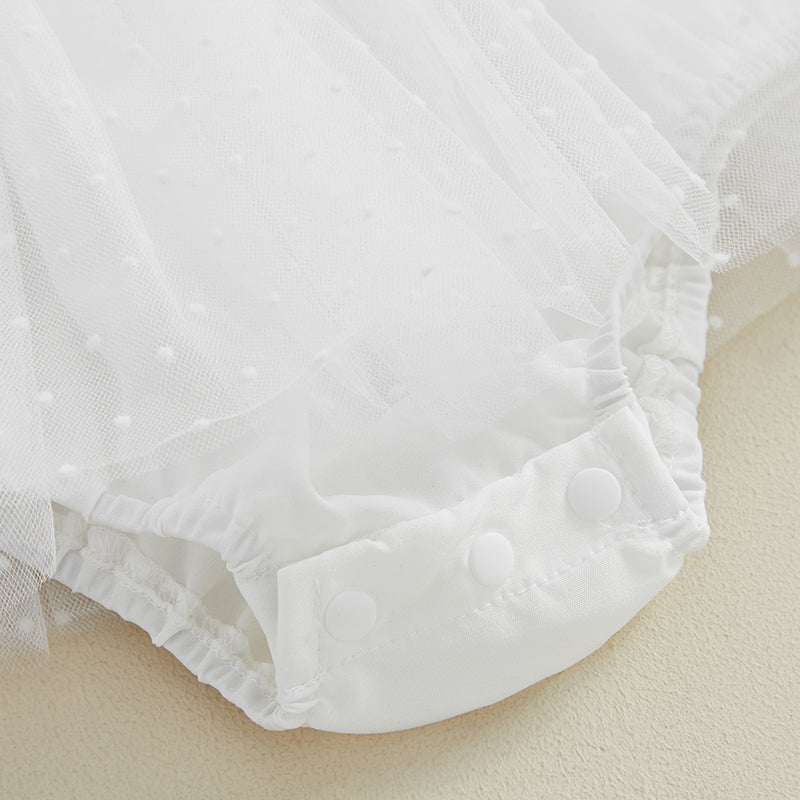 Transform your little one into a princess with this enchanting 2-piece set featuring a delicate dot mesh tulle romper dress and matching hairband. Perfect for special occasions, parties, and creating precious memories.