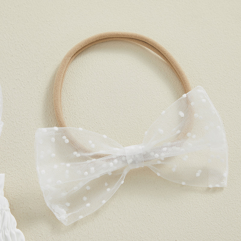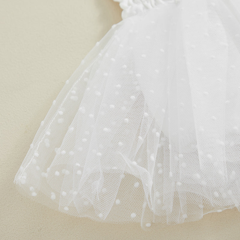 Baby Girls Princess Romper Dress Set - Sleeveless Dot Mesh Tulle with Hairband