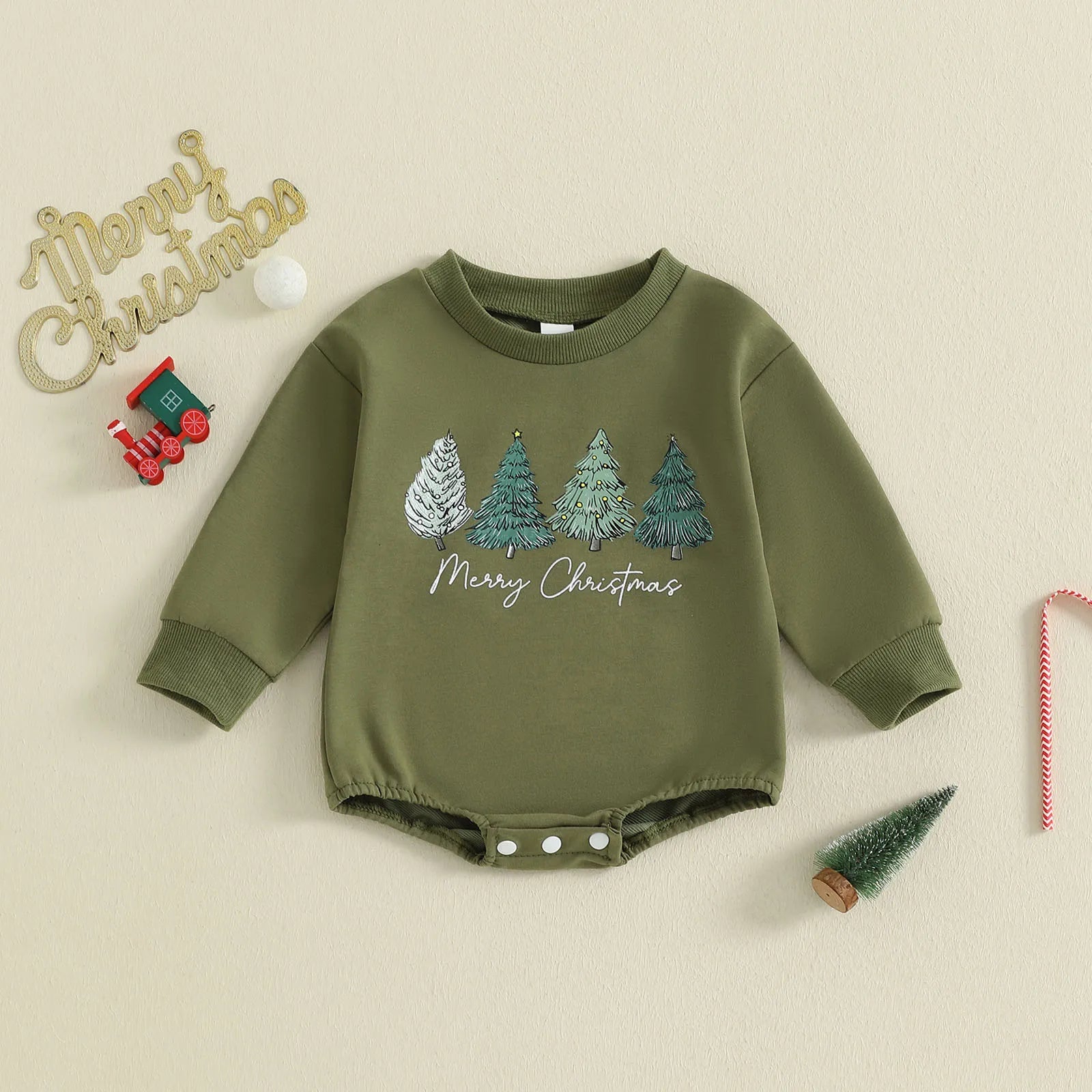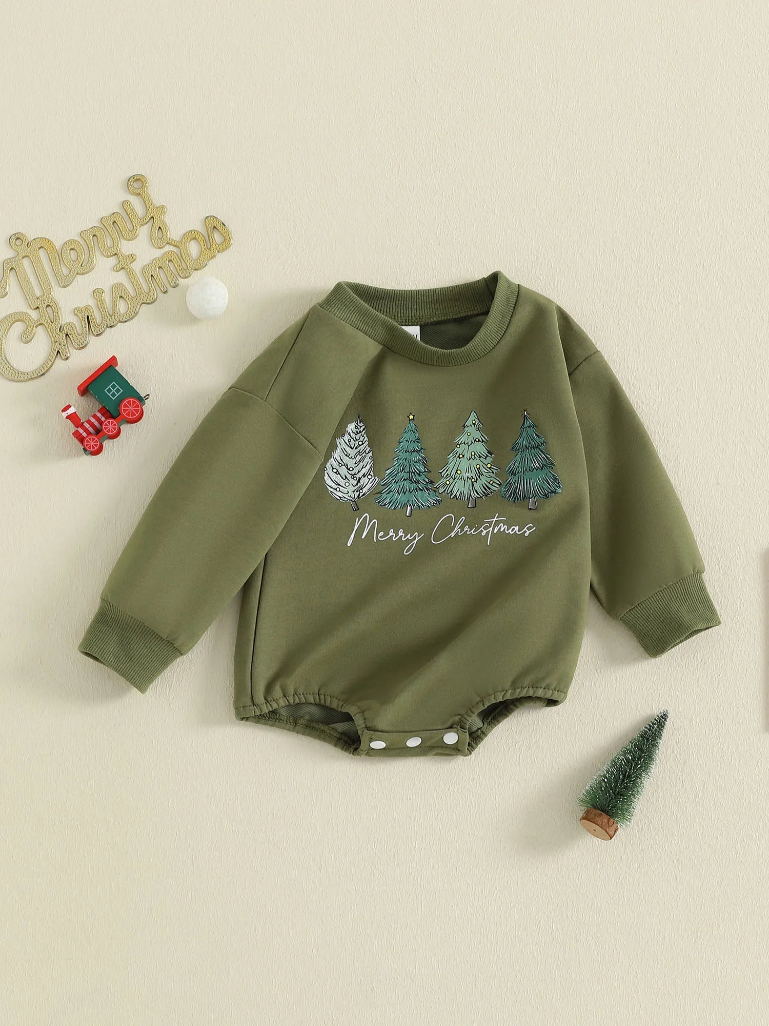 Baby Christmas Romper - Long Sleeve Tree Letter Print Bodysuit (0-18M)