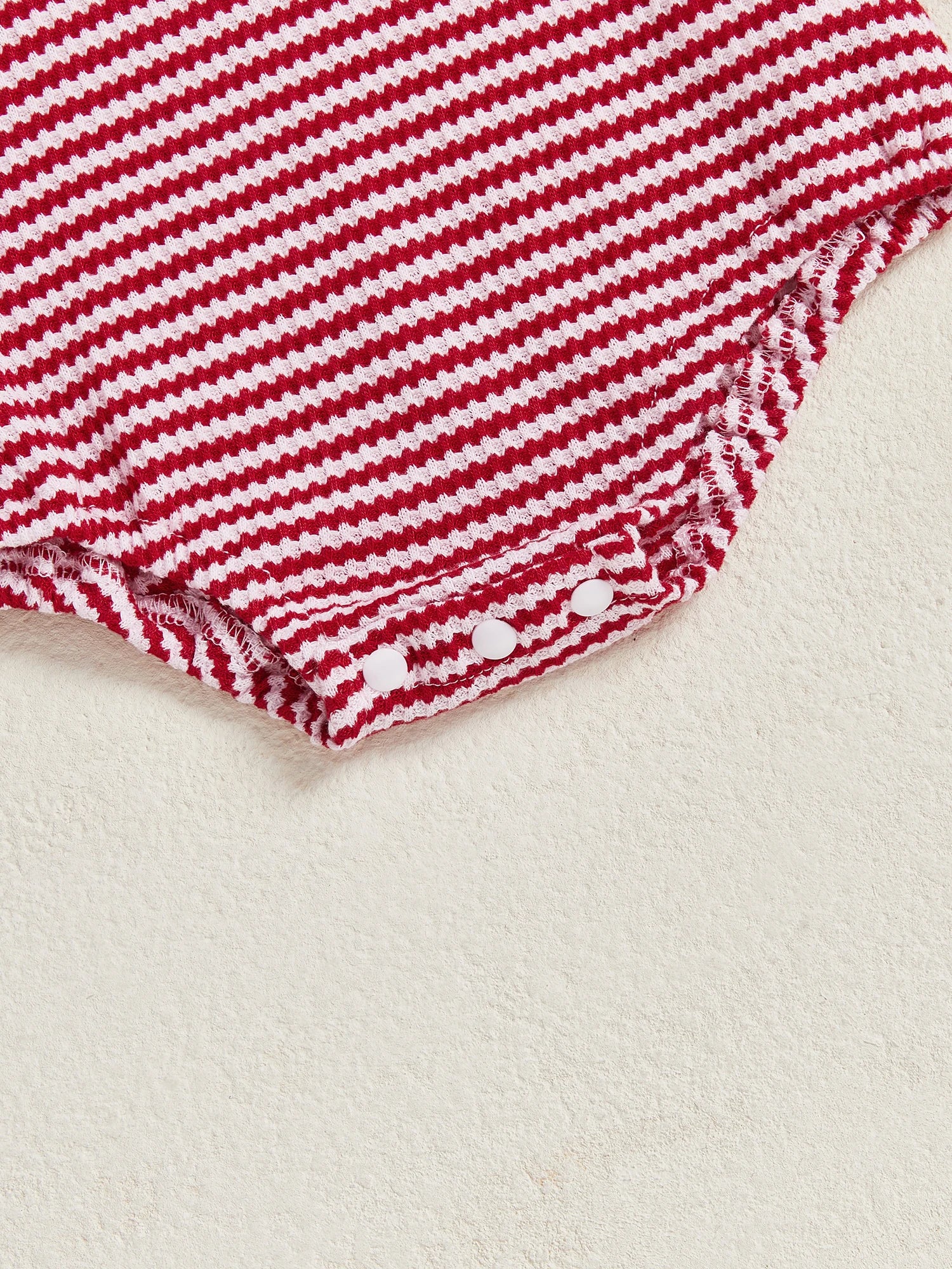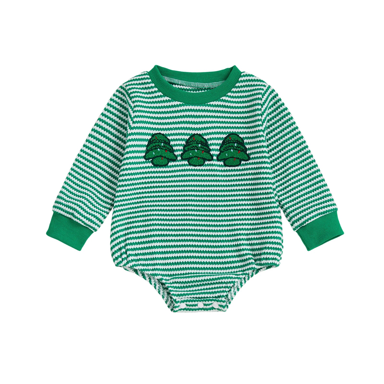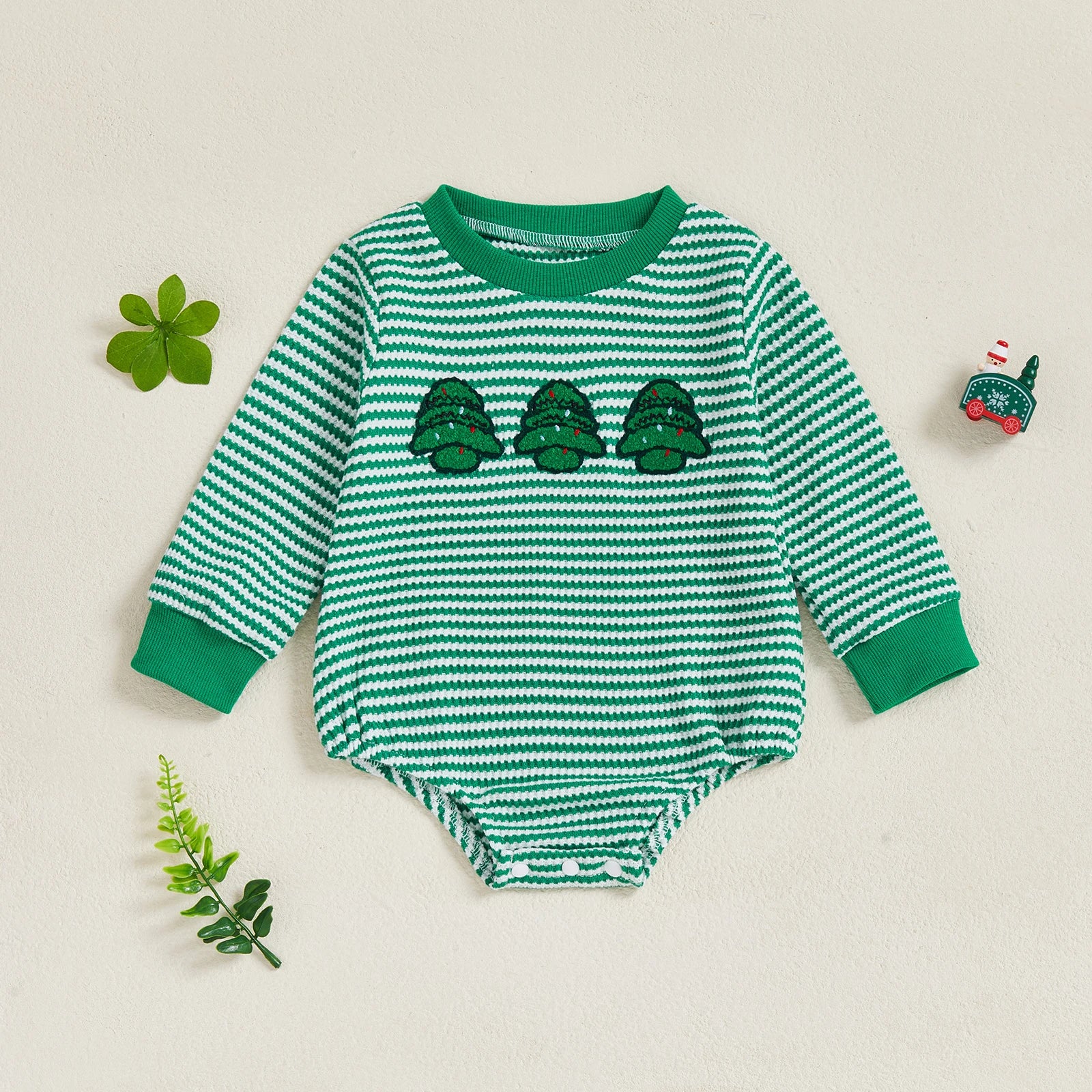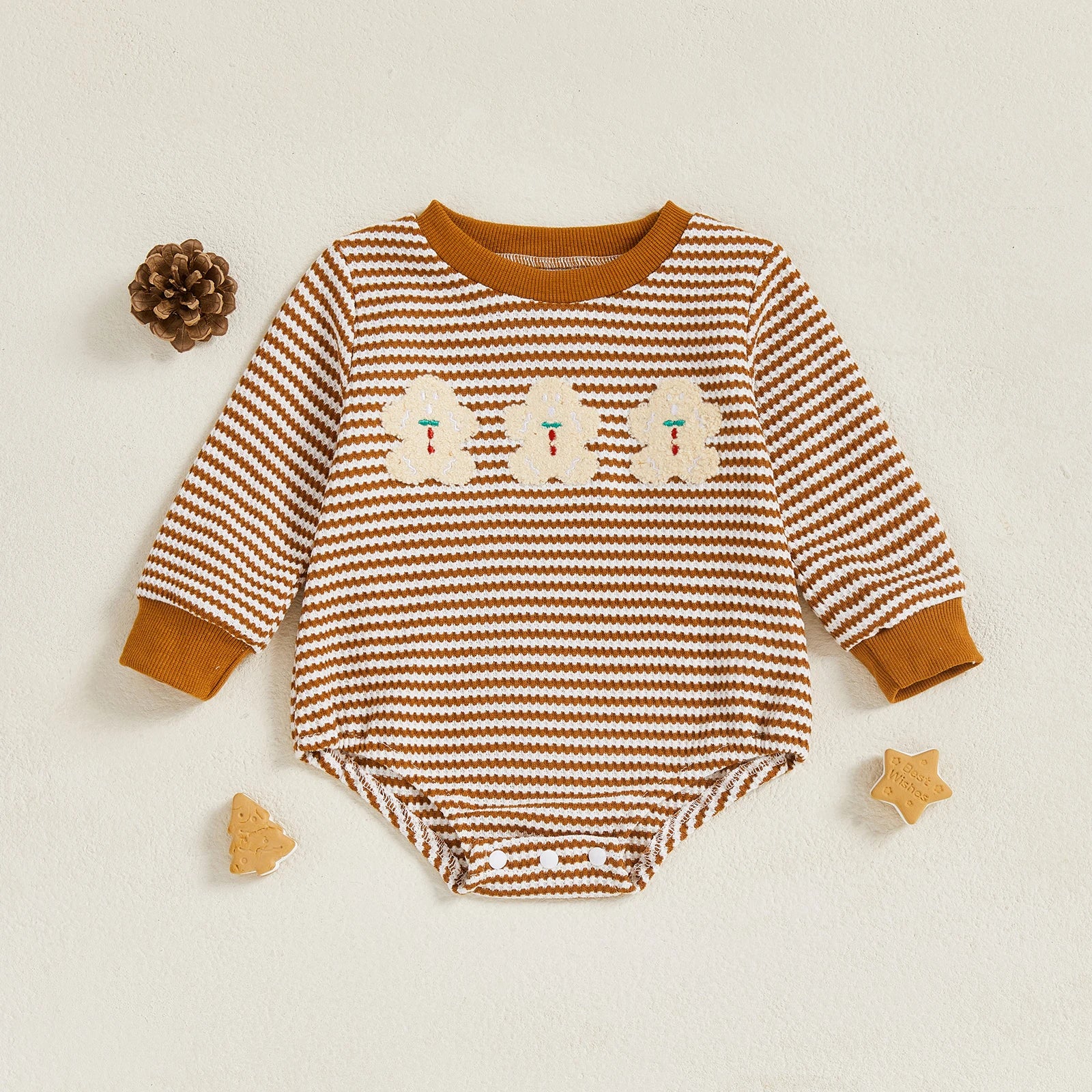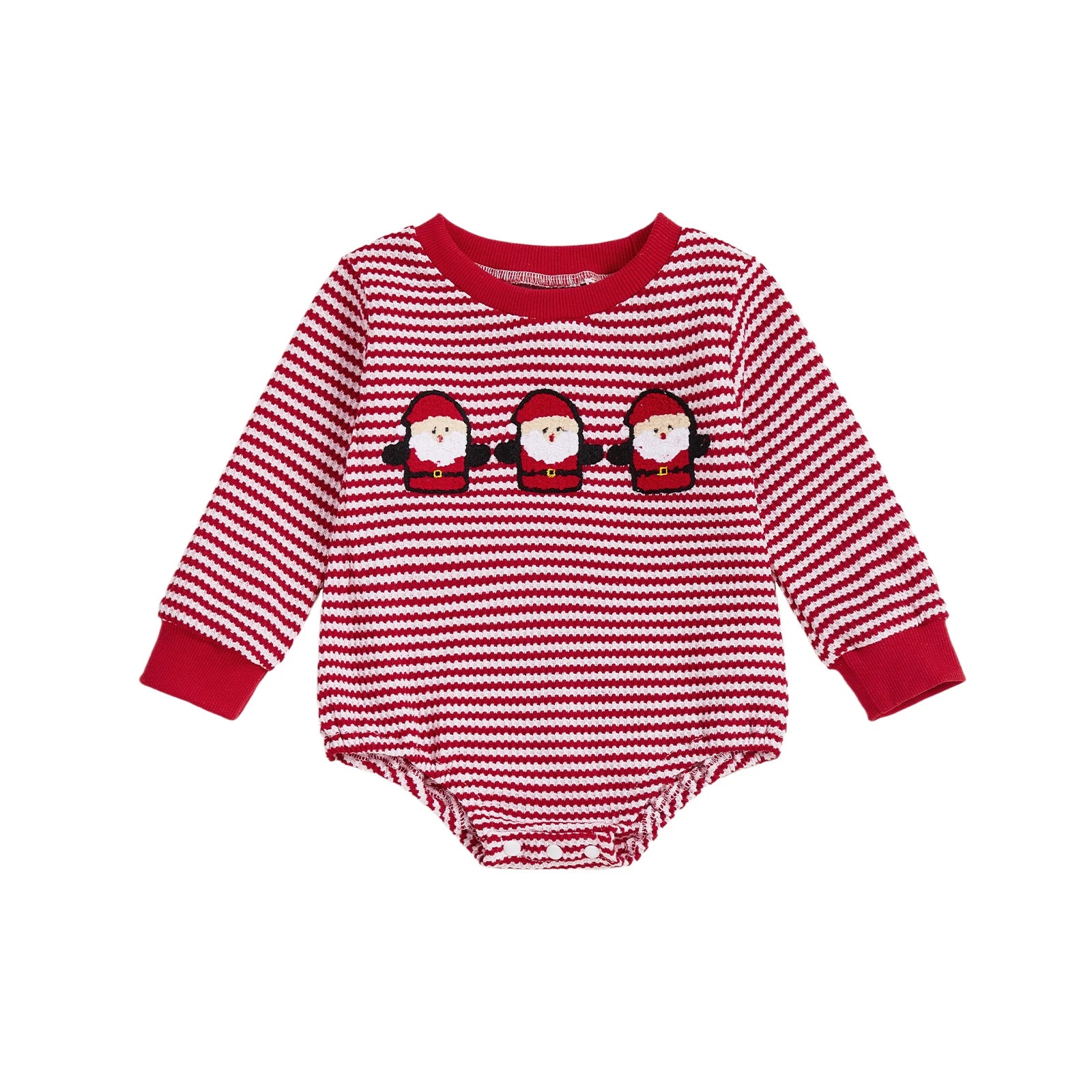 Baby Christmas Romper - Long Sleeve Stripes Print Xmas Embroidery Bodysuit