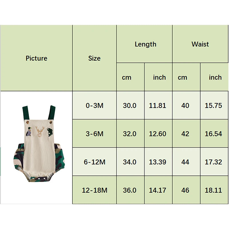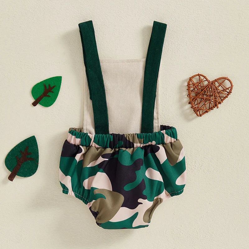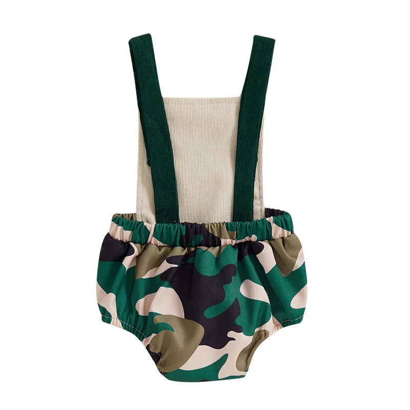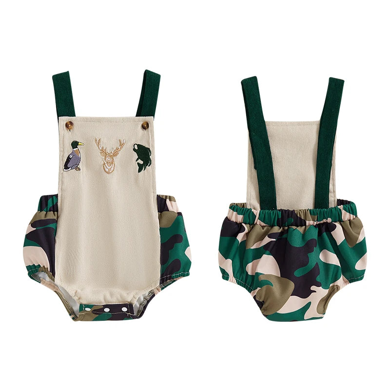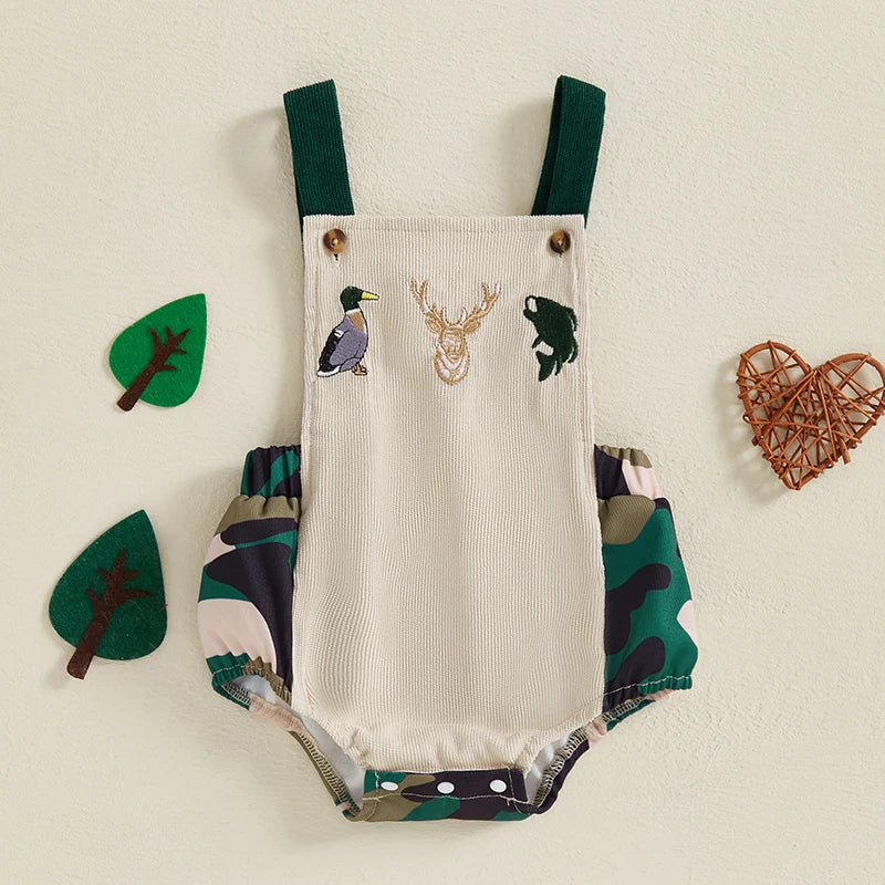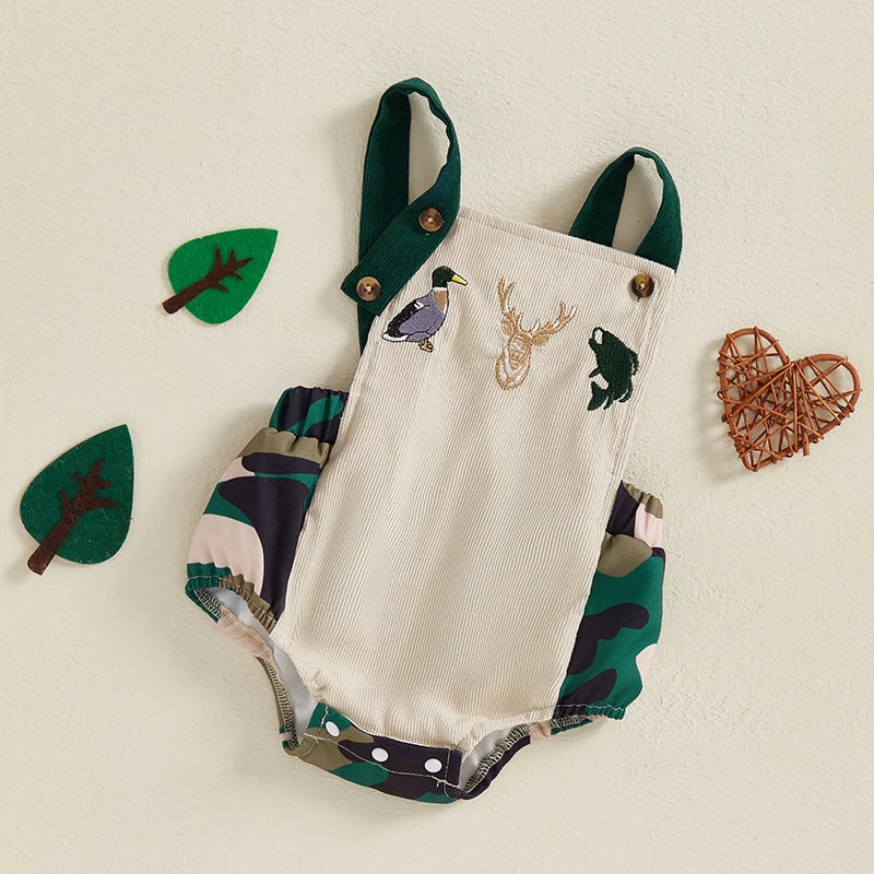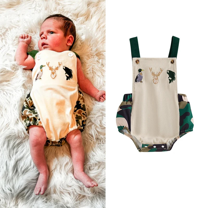 0-18M Baby Boys Romper Summer Sleeveless Square Neck Animal Embroidery Camouflage Print Newborn Overalls