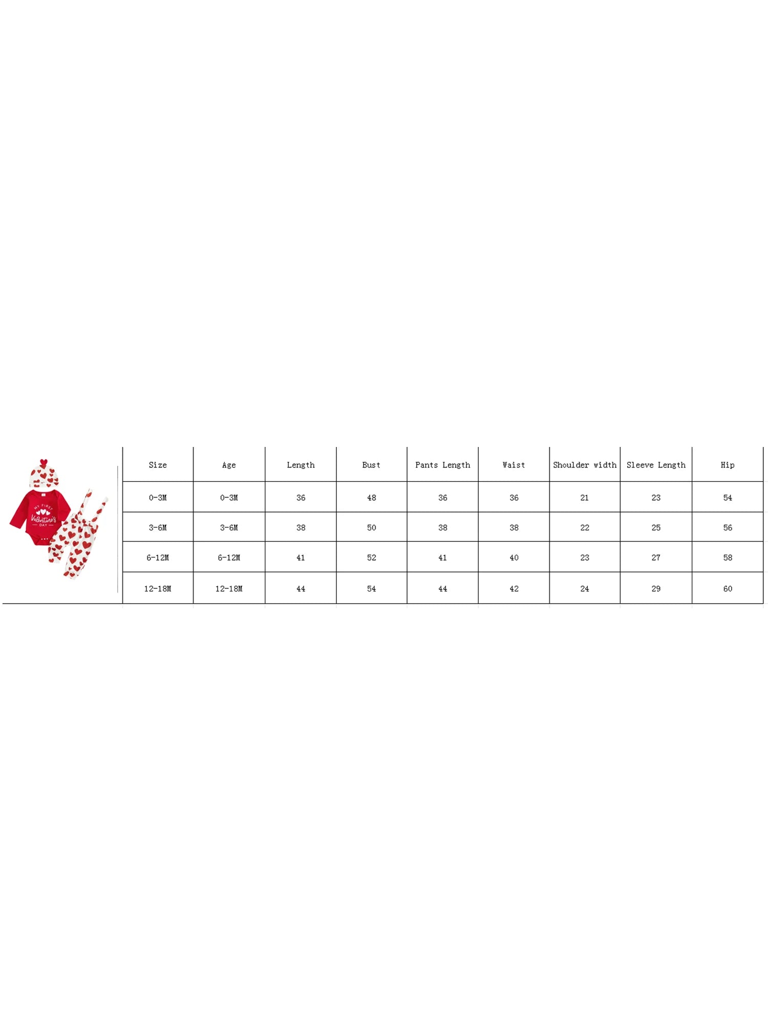 | Size | Age | Height (cm) | Chest (cm) | Romper Length (cm) |