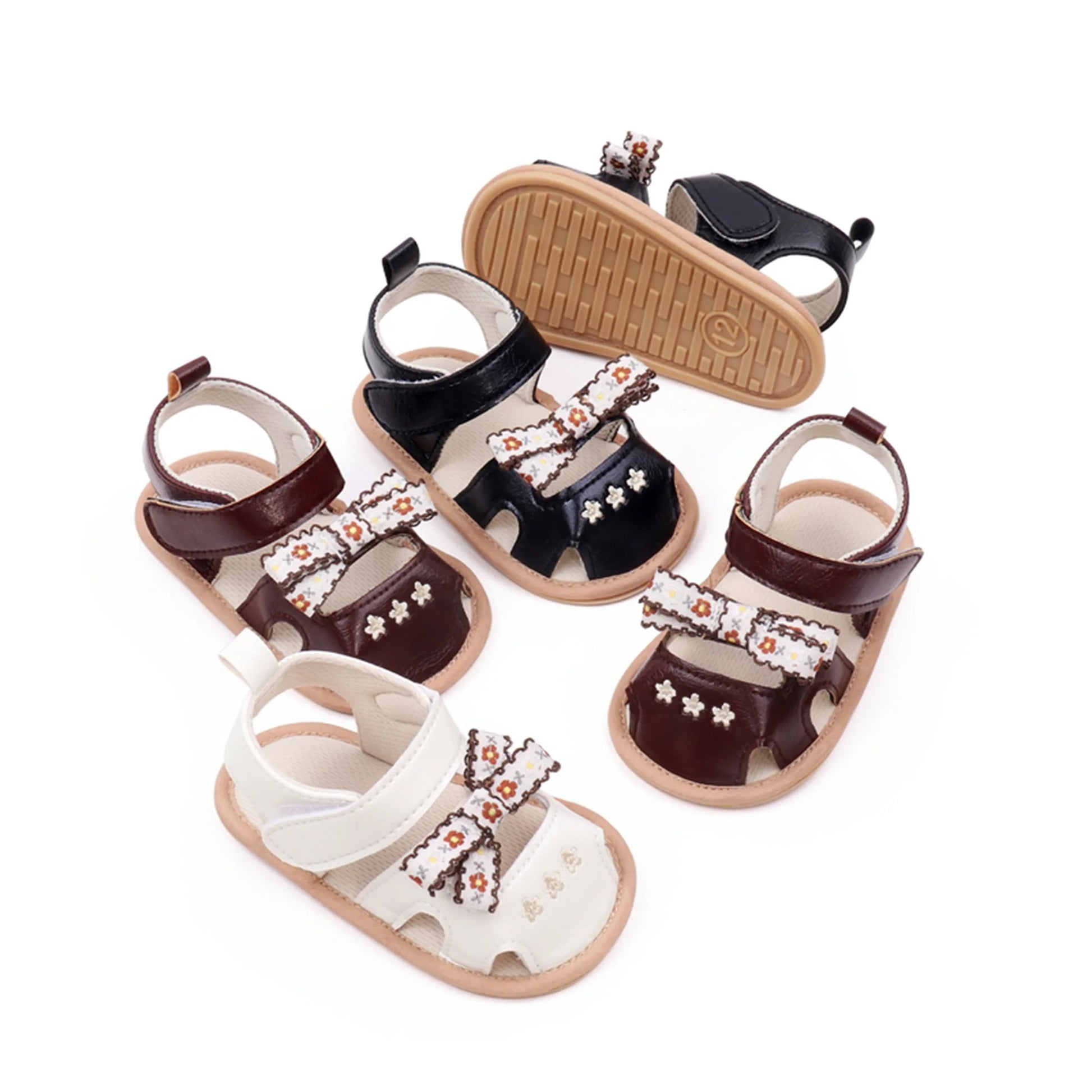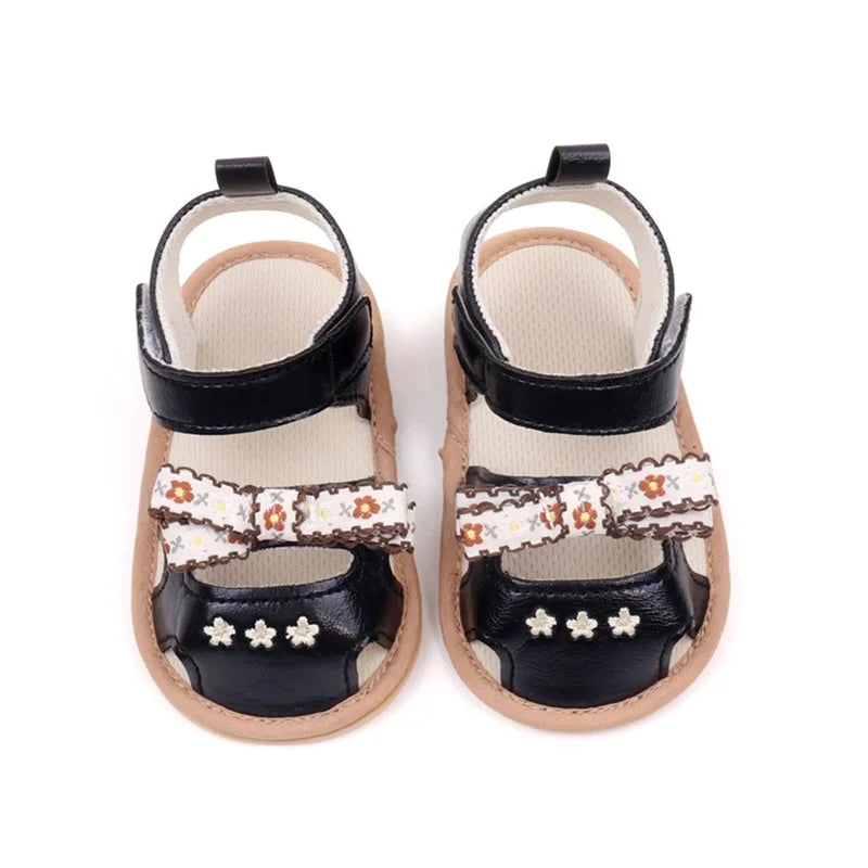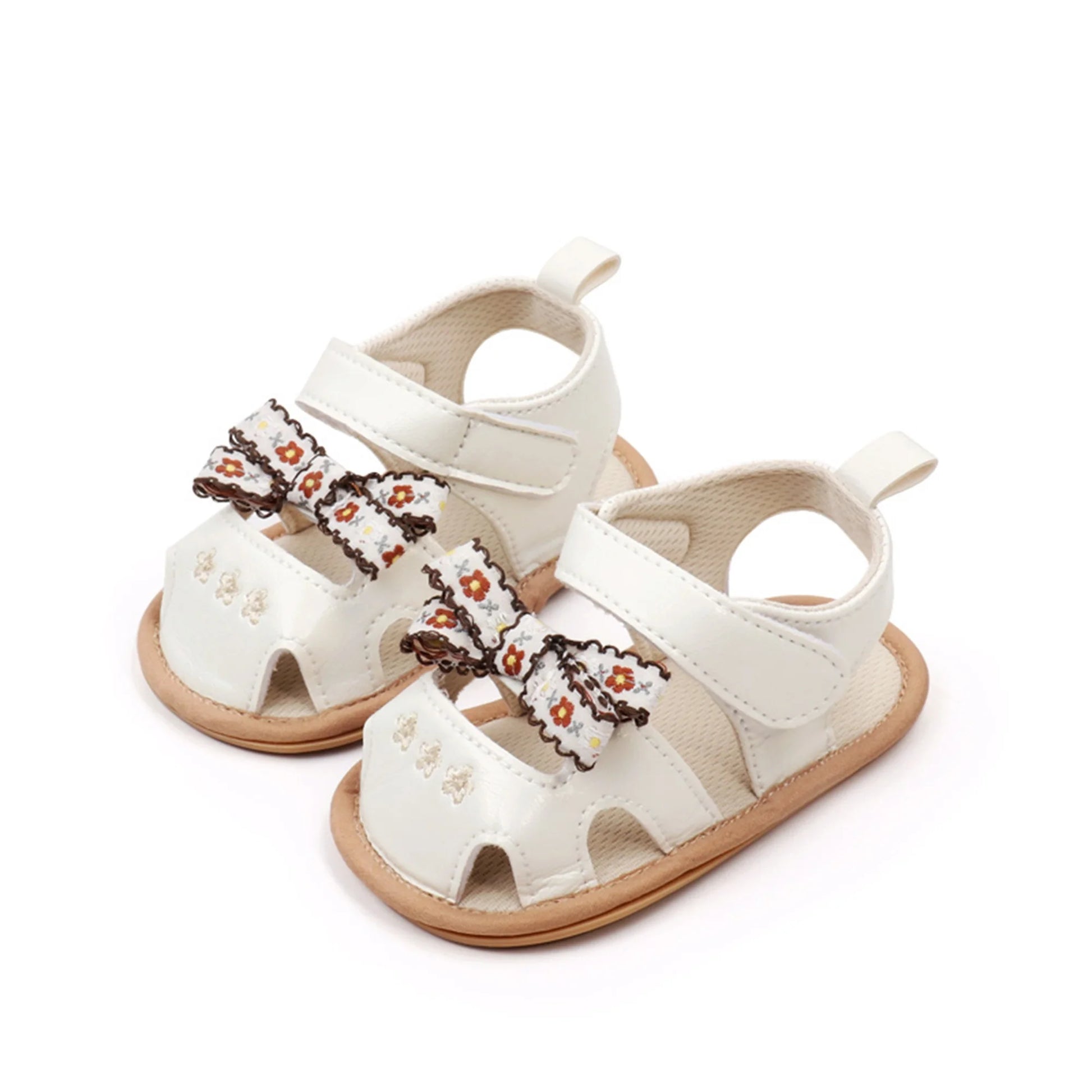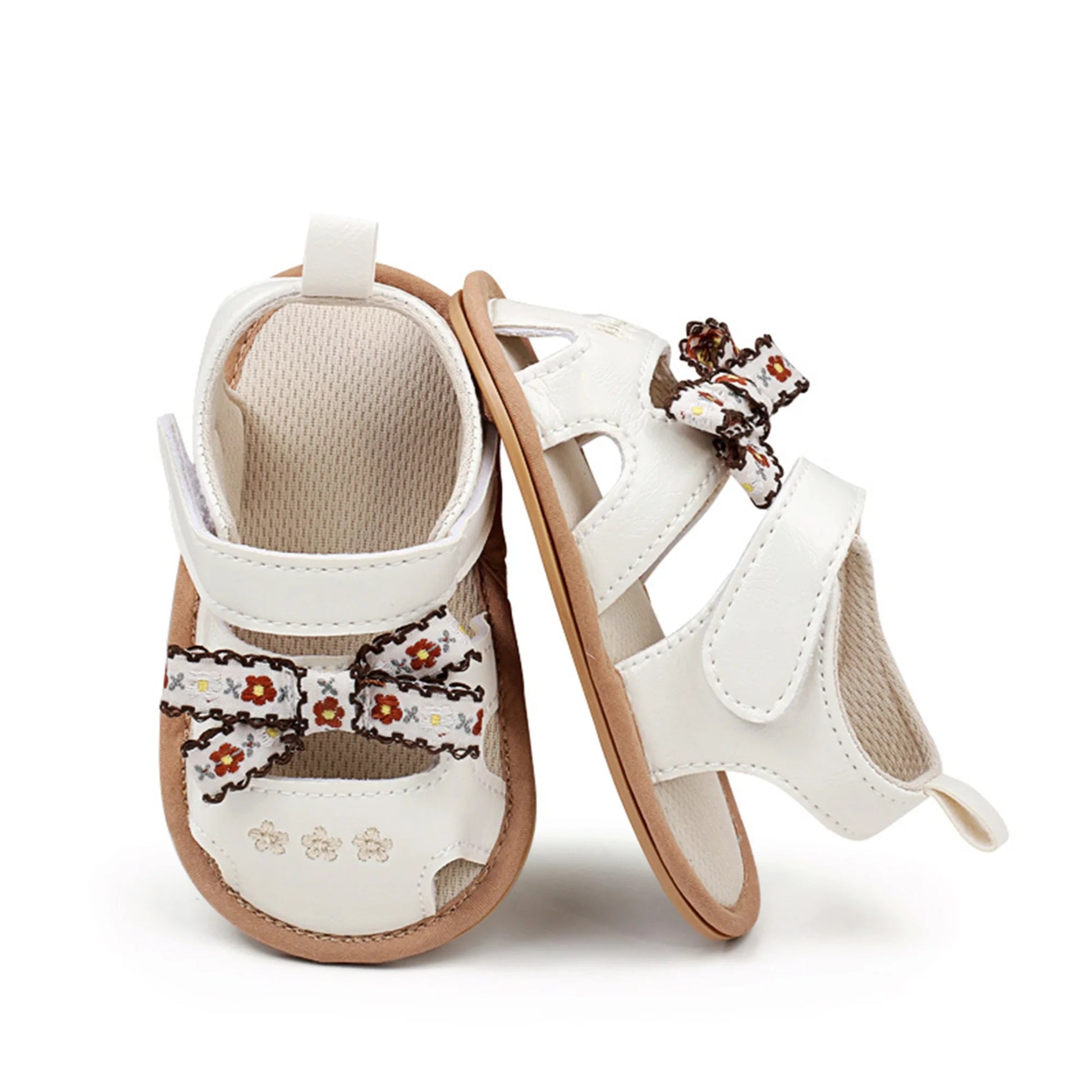 0-18M Baby Girls Bows Sandals Shoes Floral Embroidered Hollowed out Summer Soft Sole Flats Walking Shoes