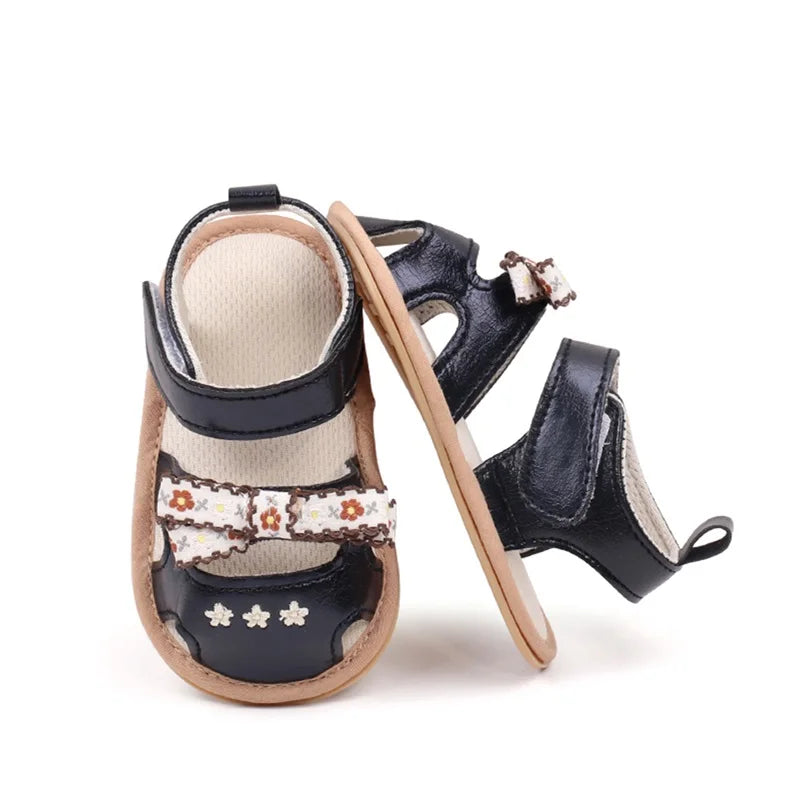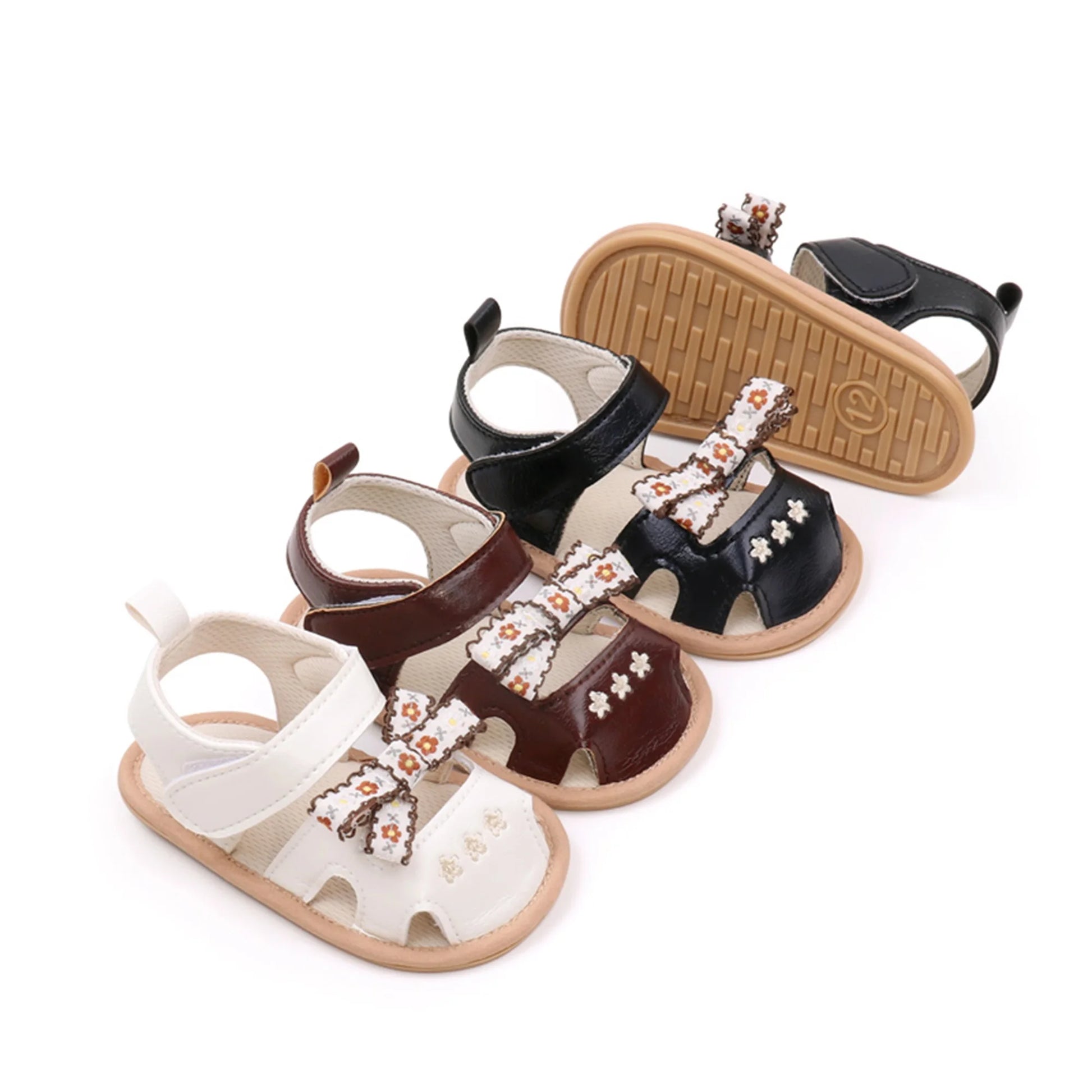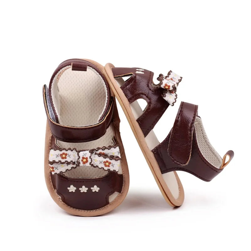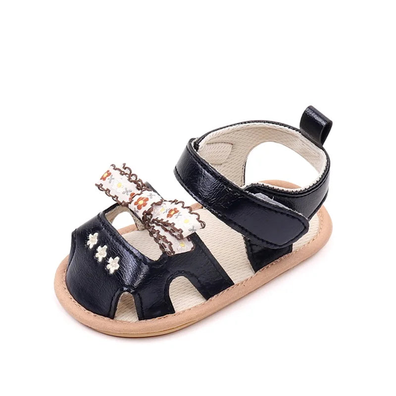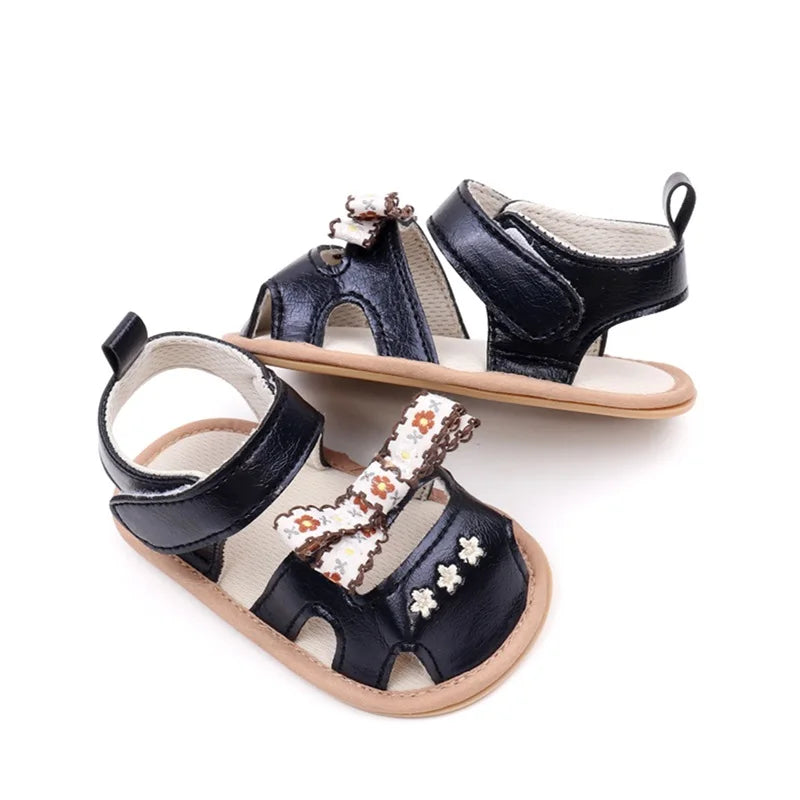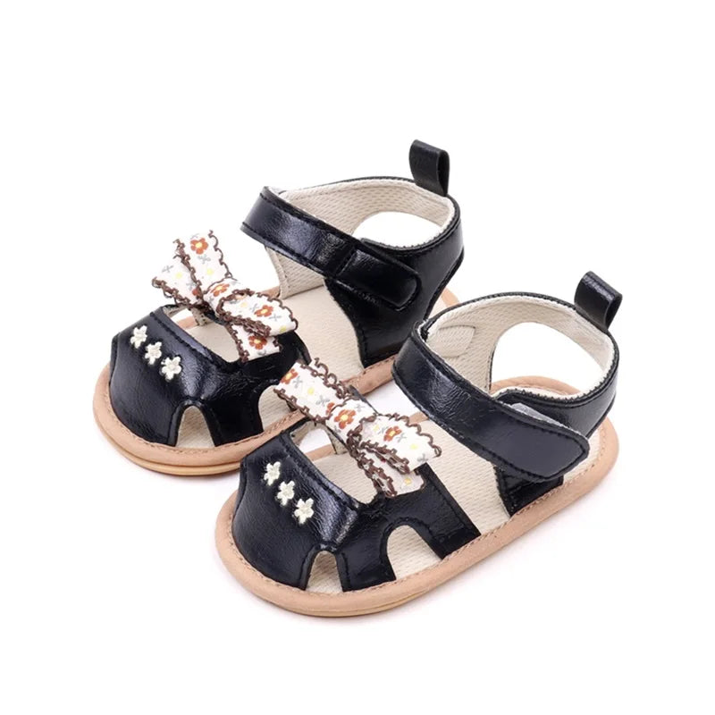 0-18M Baby Girls Bows Sandals Shoes Floral Embroidered Hollowed out Summer Soft Sole Flats Walking Shoes