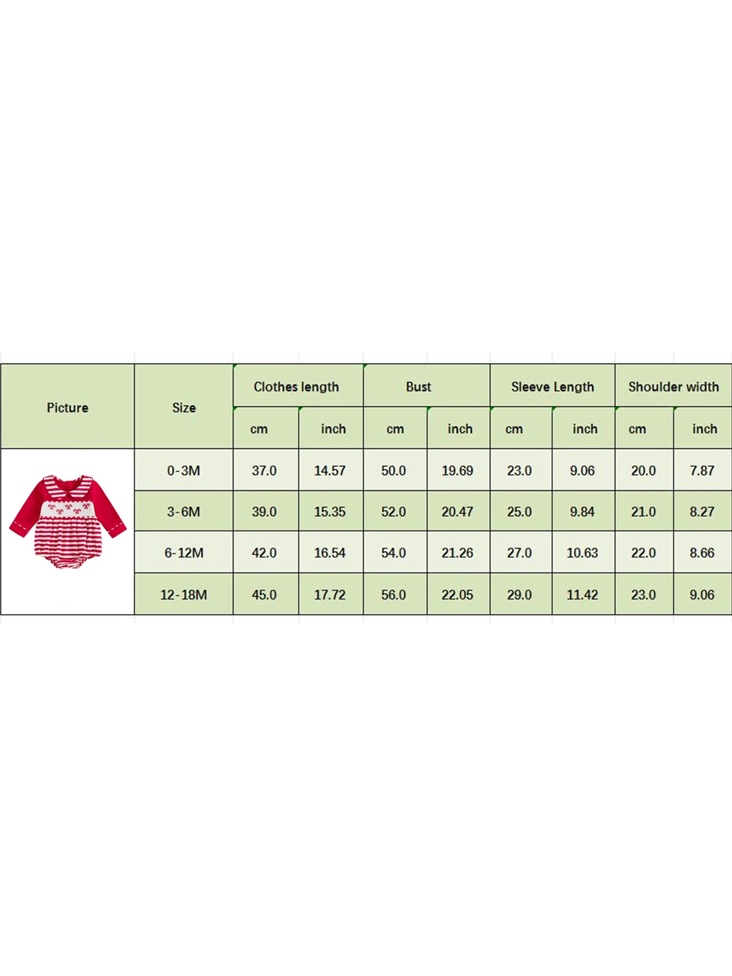 - Design: Candy cane embroidery with smocked striped pattern