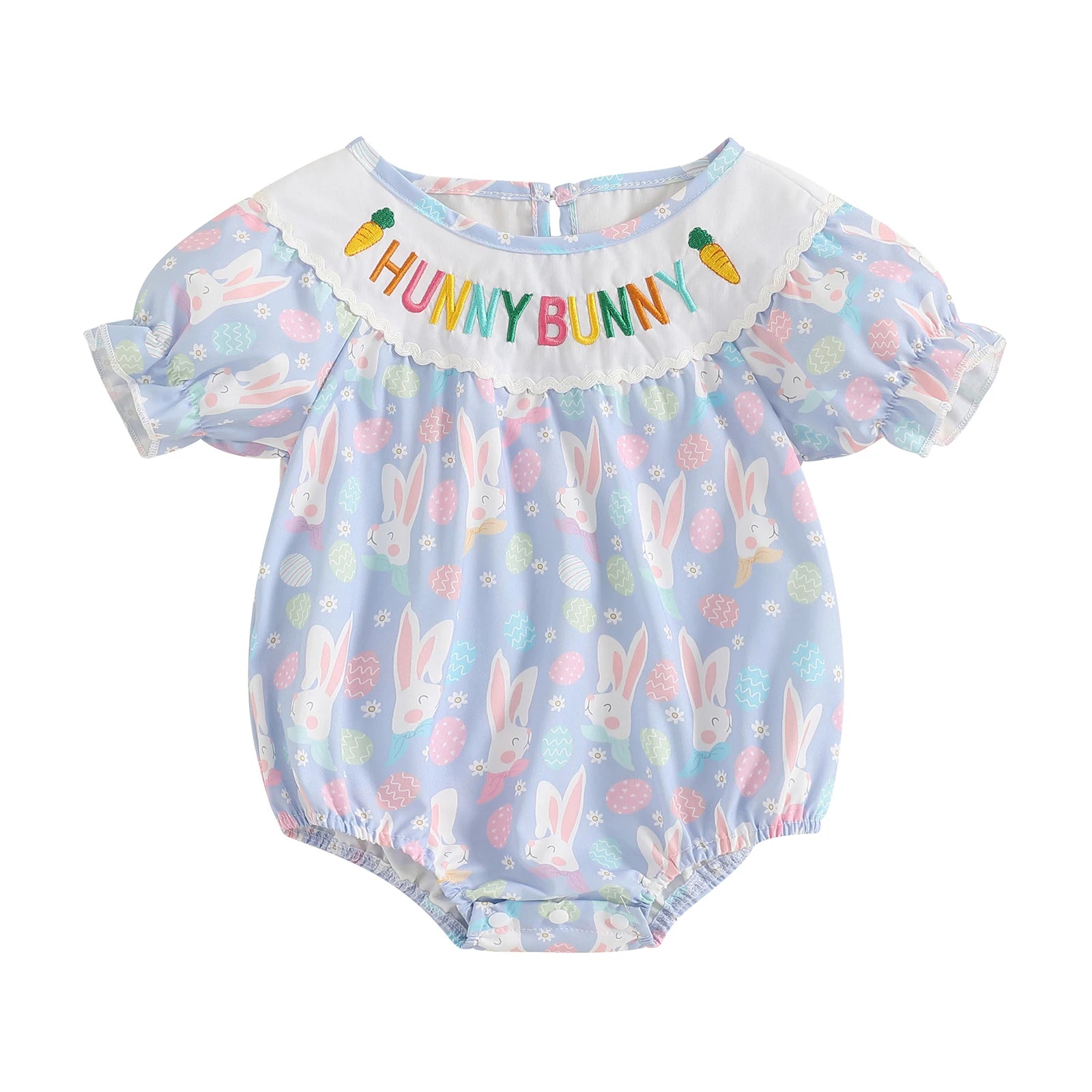 Lovely Baby Easter Romper - Short Sleeve Rabbit Print Bodysuit (0-18M)