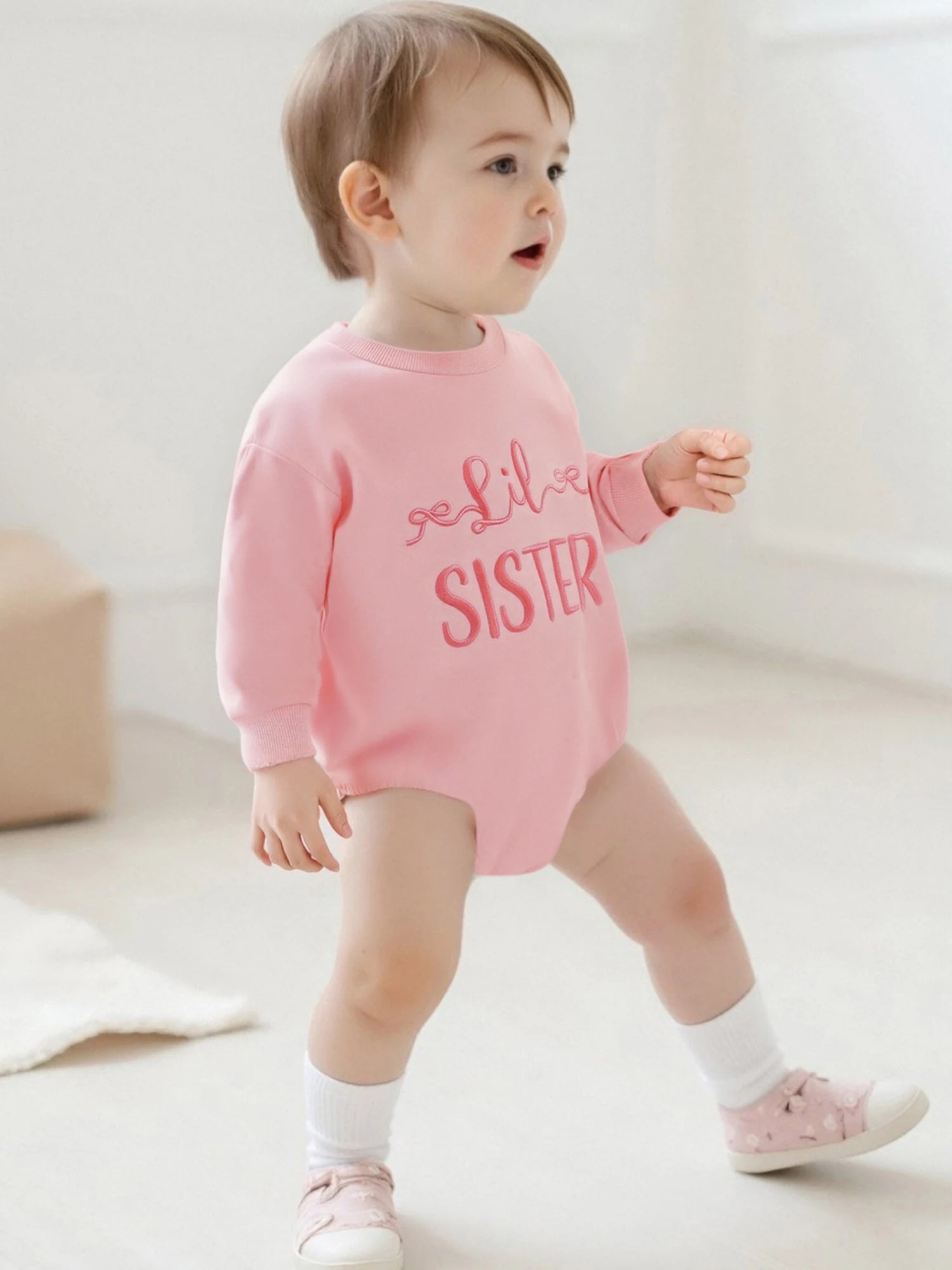 Baby Fall Romper - Letter Embroidery Long Sleeve Round Neck Jumpsuit