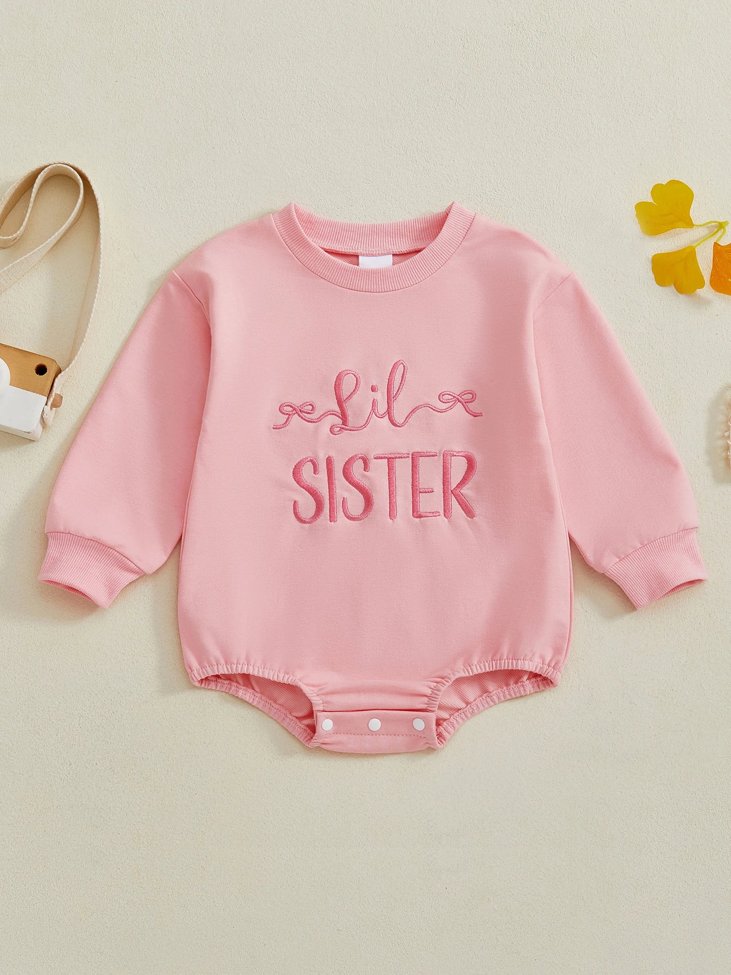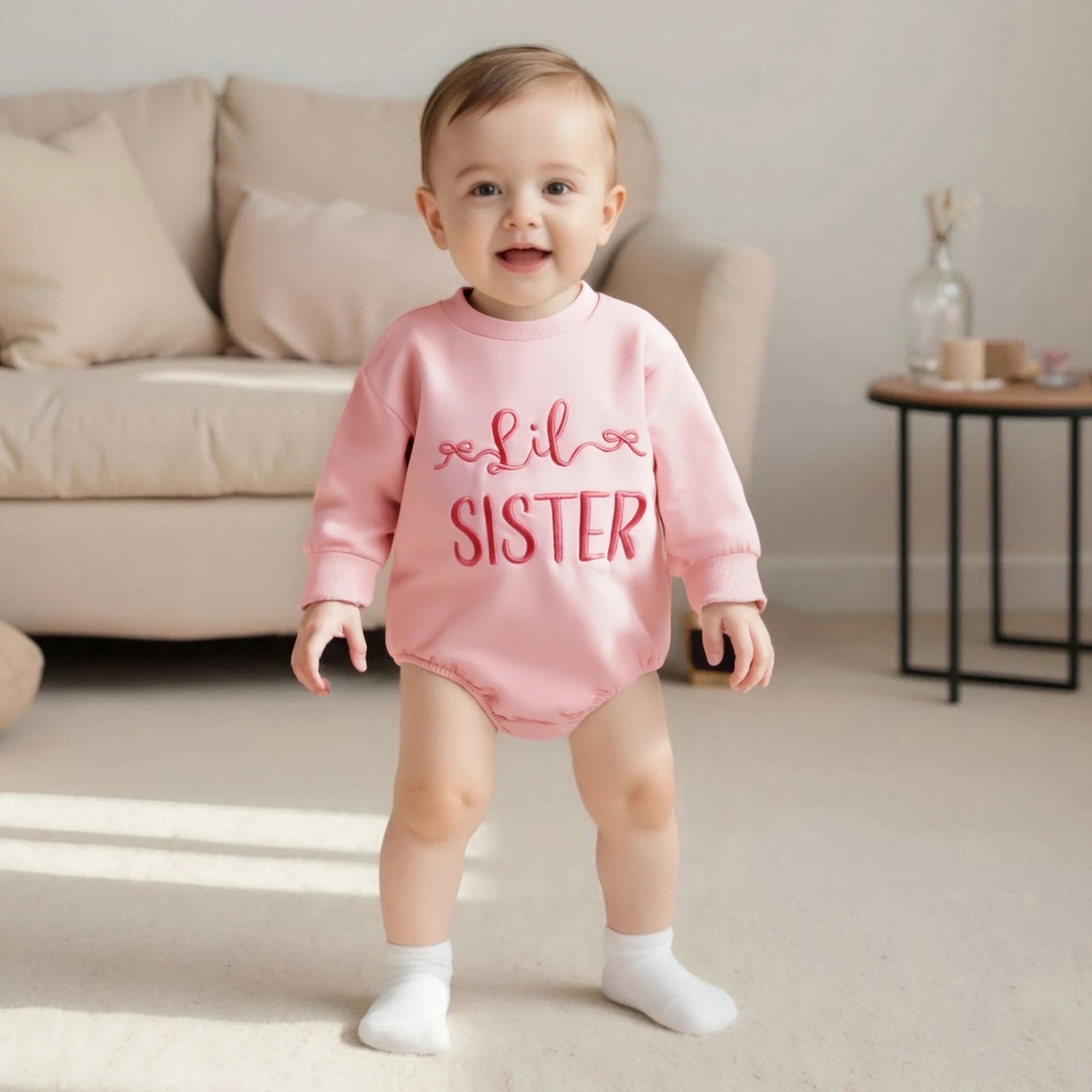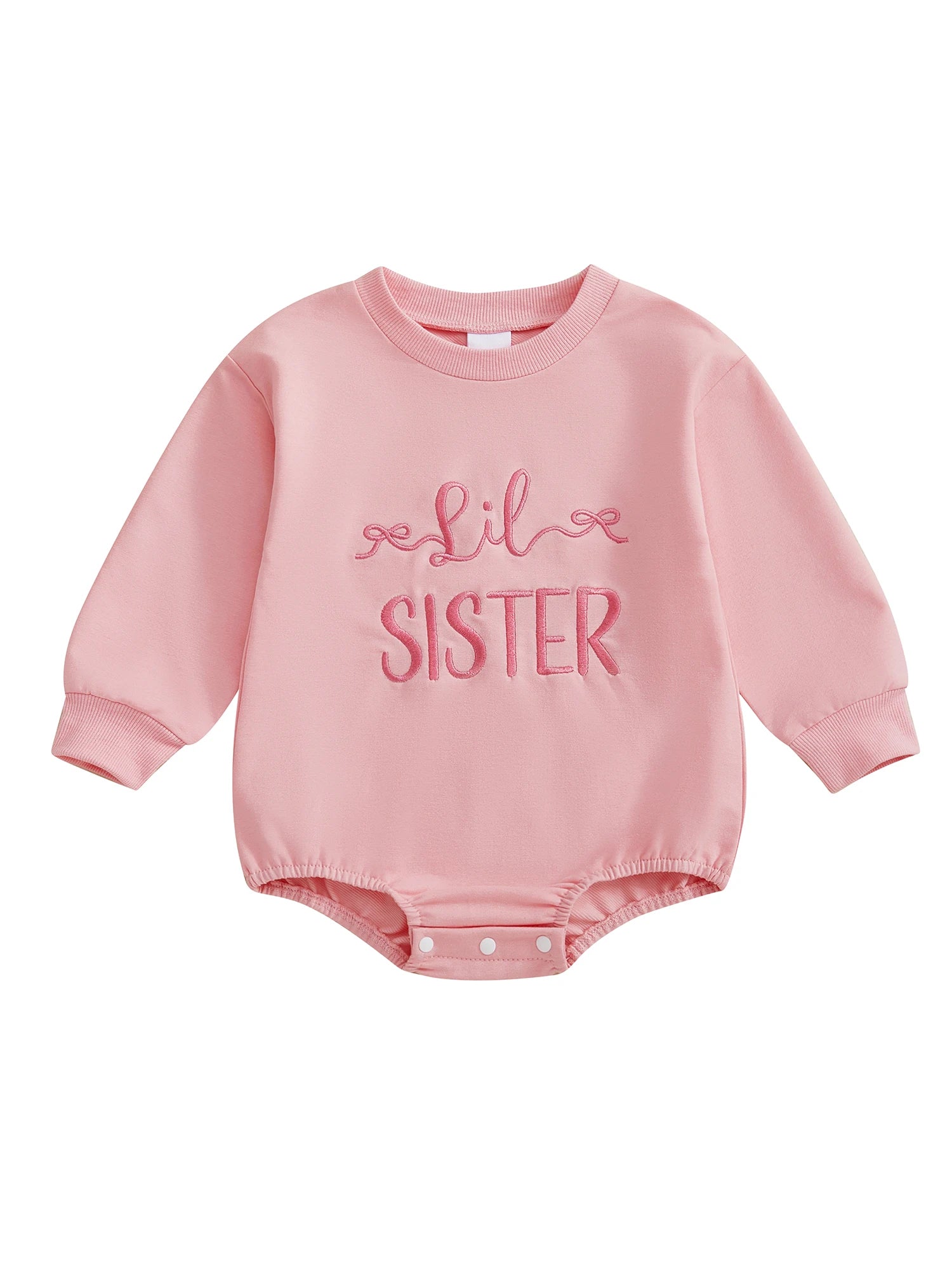 Keep your little one cosy and stylish throughout autumn with this charming long sleeve romper. Featuring delightful letter embroidery and a classic round neck design, this comfortable jumpsuit is perfect for everyday wear during the cooler months. Suitable for both baby girls and boys.