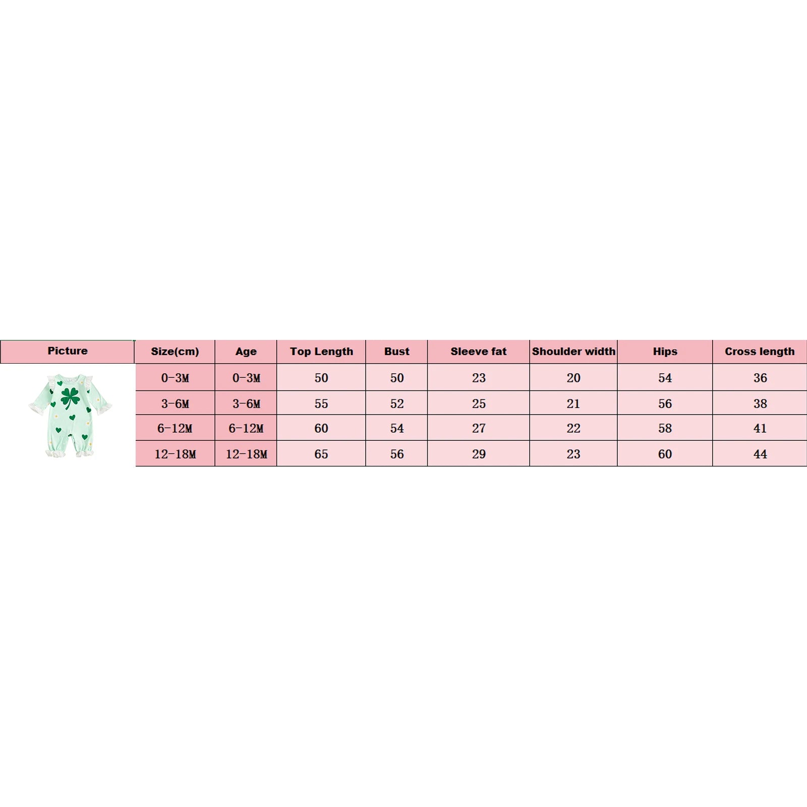 Baby Girls Boys Shamrock Print Romper - Long Sleeve Full Length Jumpsuit 0-18M