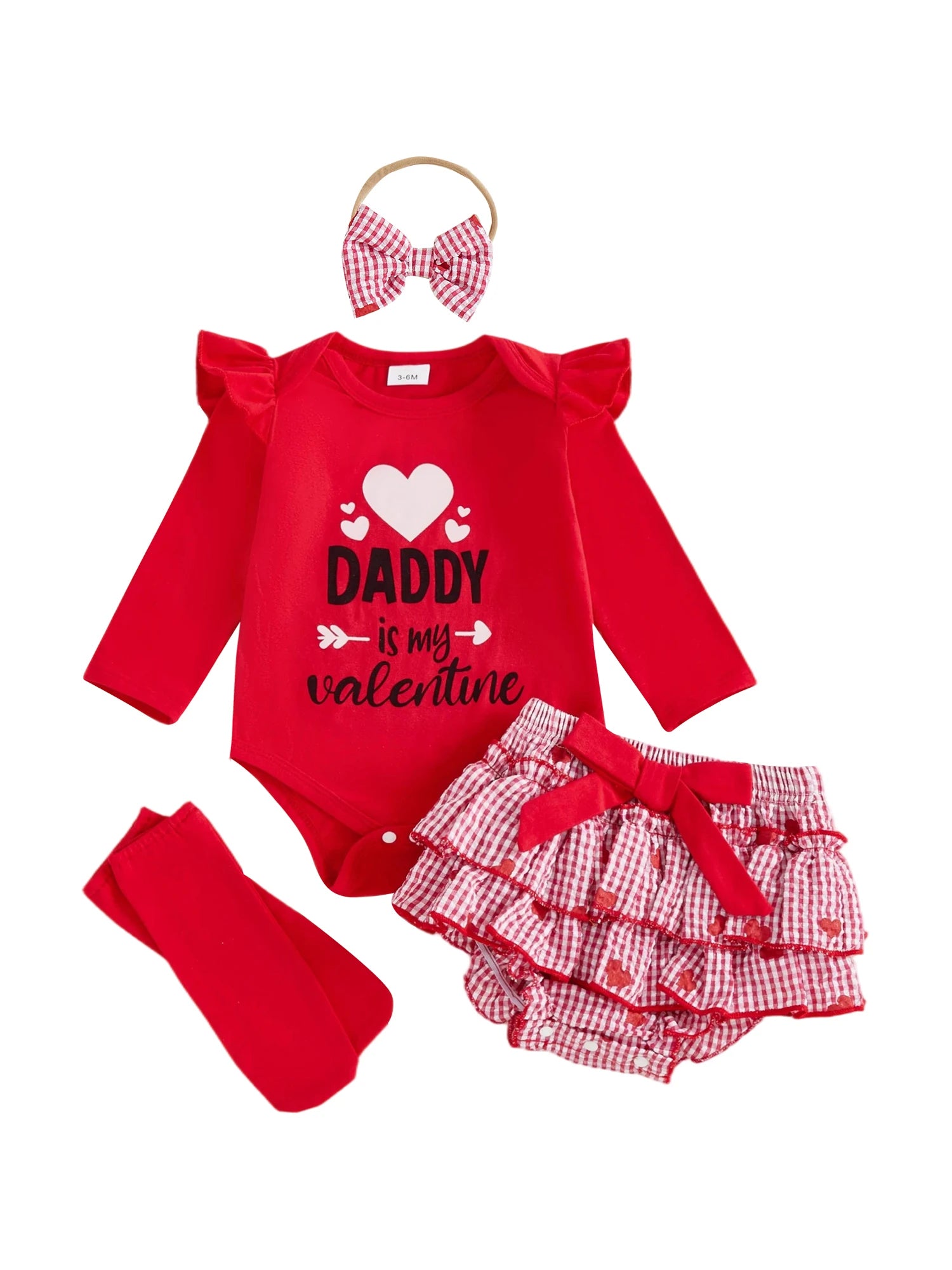 Baby Valentine's Day 4-Piece Outfit Set - Romper, Skirt, Leg Warmers & Headband