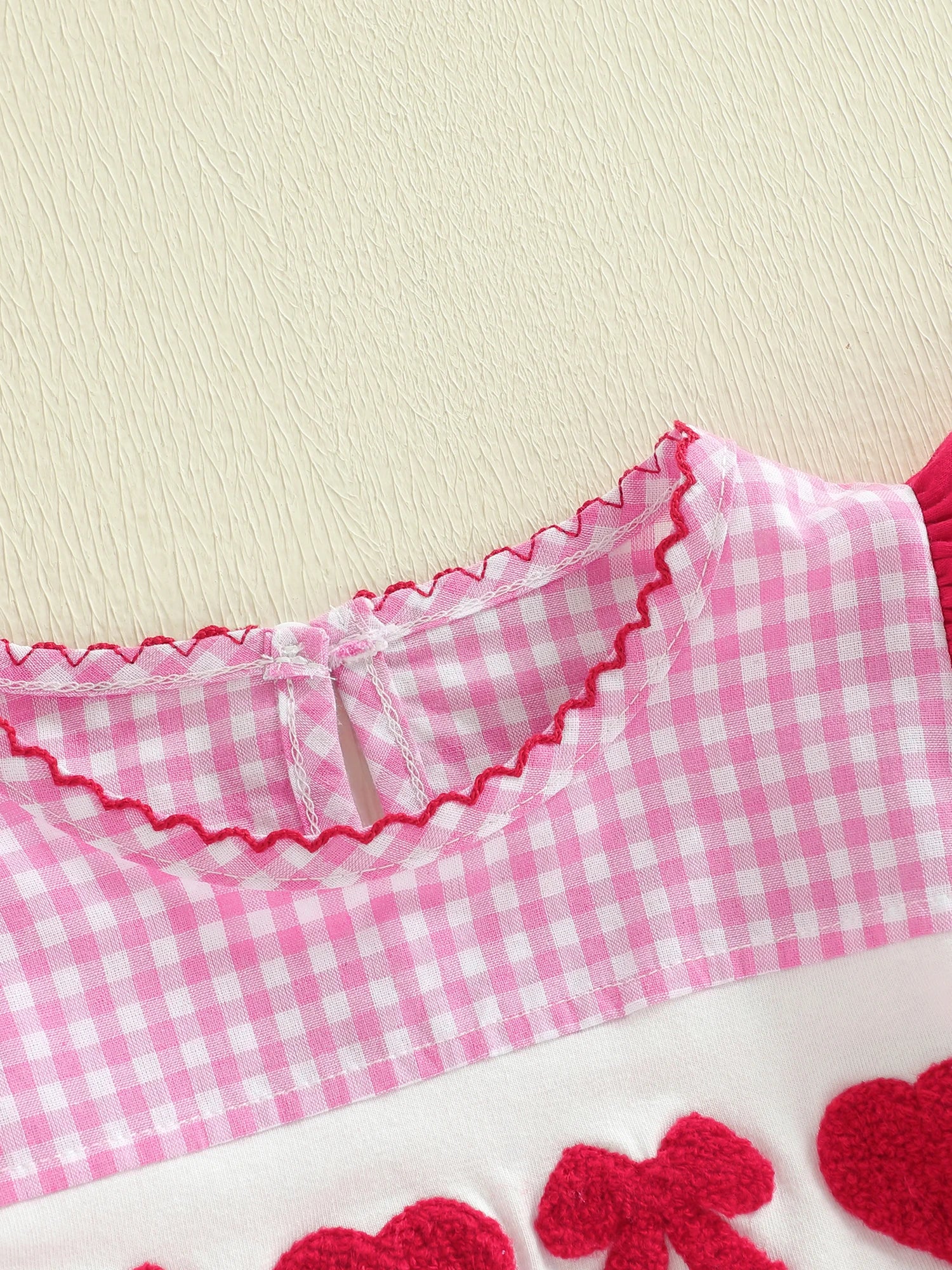 Style Notes: This adorable Valentine's Day romper is perfect for your little sweetheart. The plaid print with bow and heart embroidery creates an irresistibly cute look that's ideal for Valentine's celebrations, family photos, or special occasions. Pair with leggings or tights for a complete outfit. A wonderful gift for new parents or for celebrating baby's first Valentine's Day!