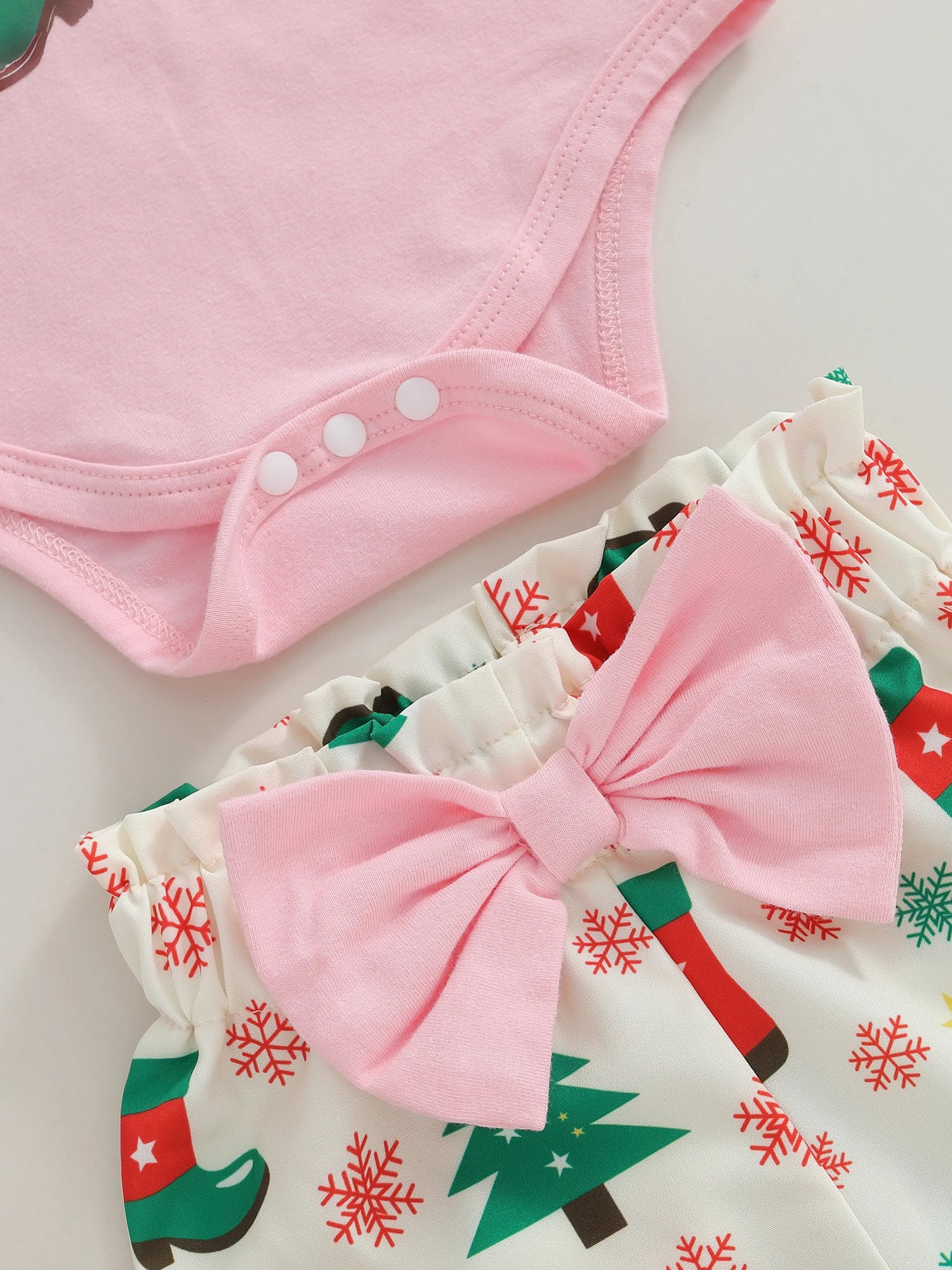 Baby Girls Christmas Outfit Set - 3-Piece Letter Long Sleeve Romper, Pants & Bow Headband (0-18M)