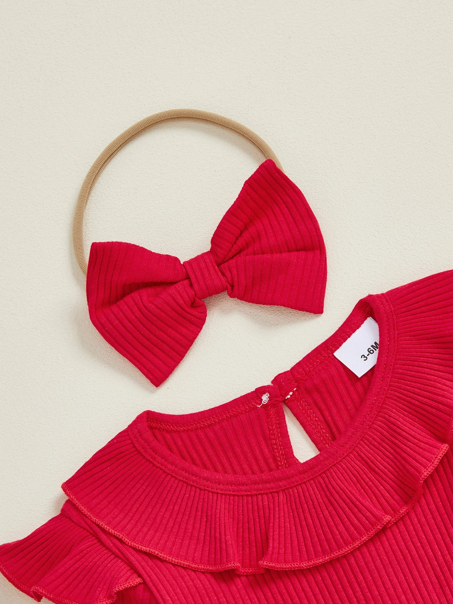 What's Included: 1 x Long sleeve ruffle romper, 1 x Bow headband, 1 x Pair of socks