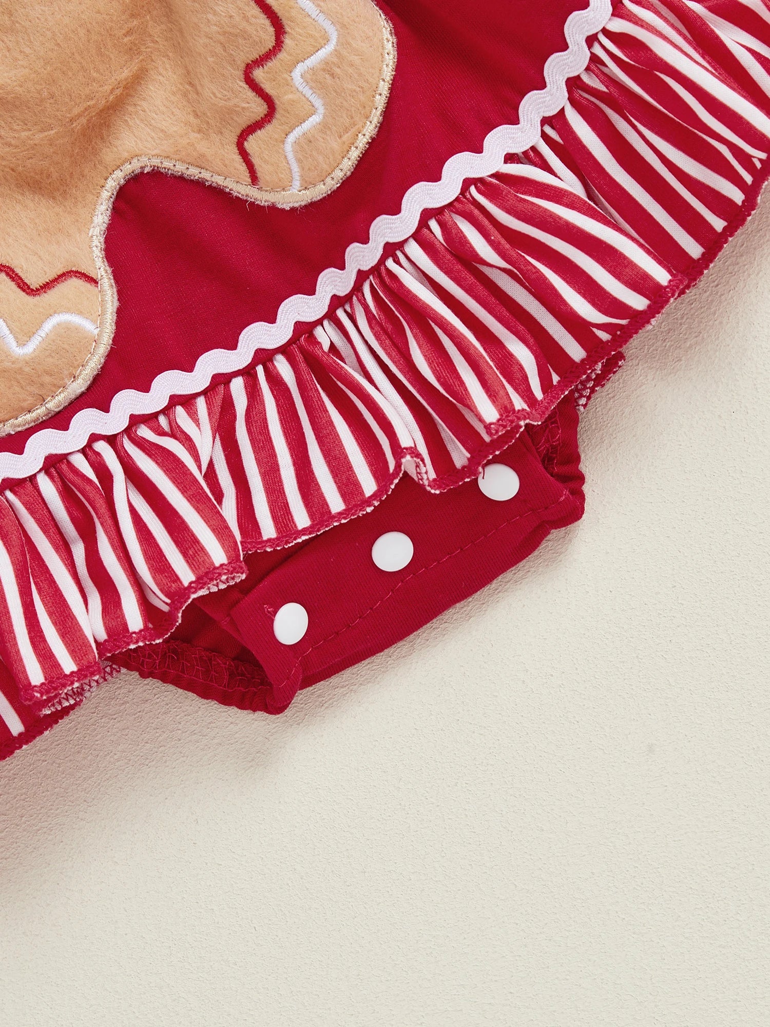 - Flying Sleeve Romper Dress - Adorable jumpsuit with cute gingerbread man design and stylish flying sleeves
