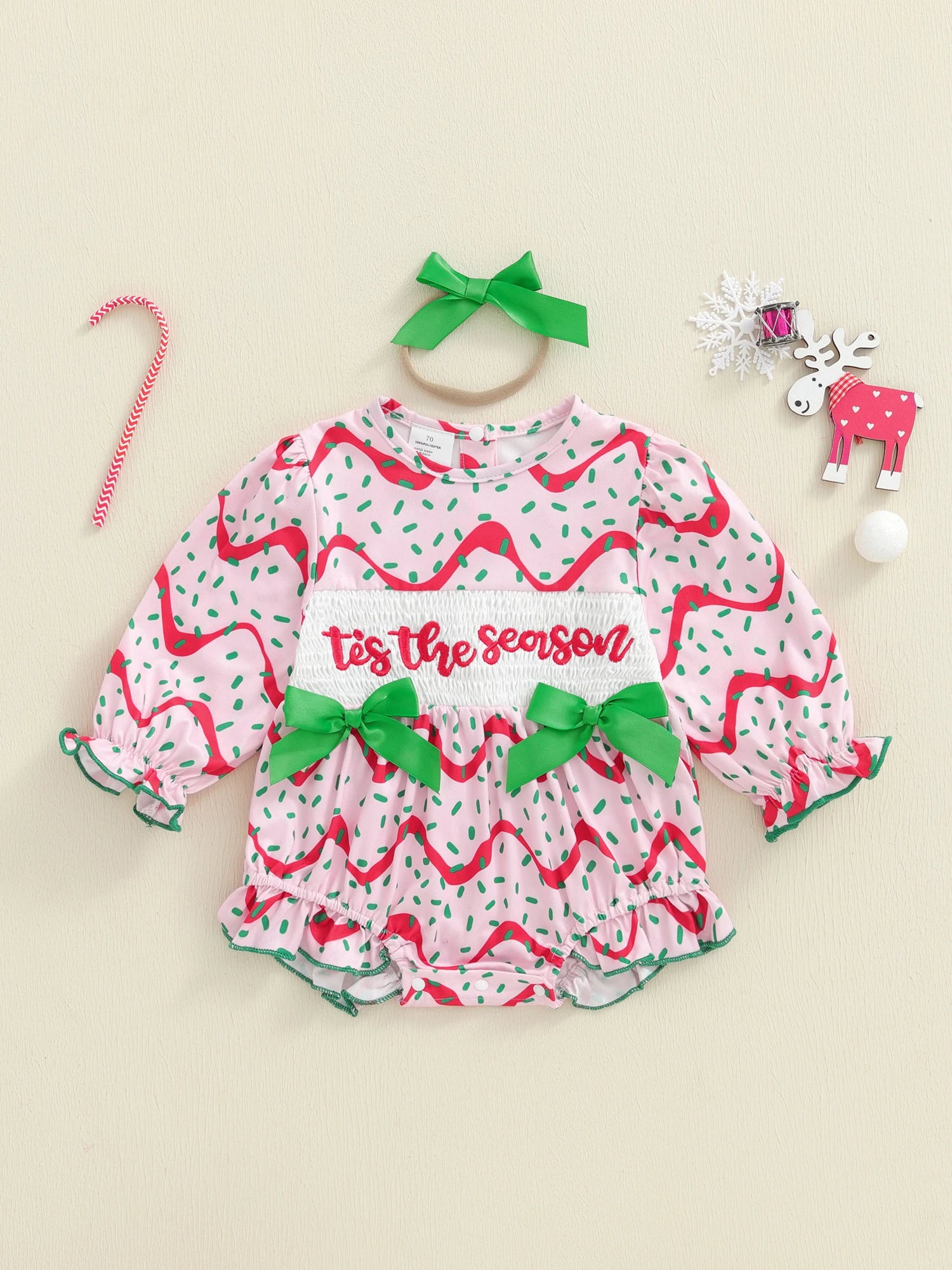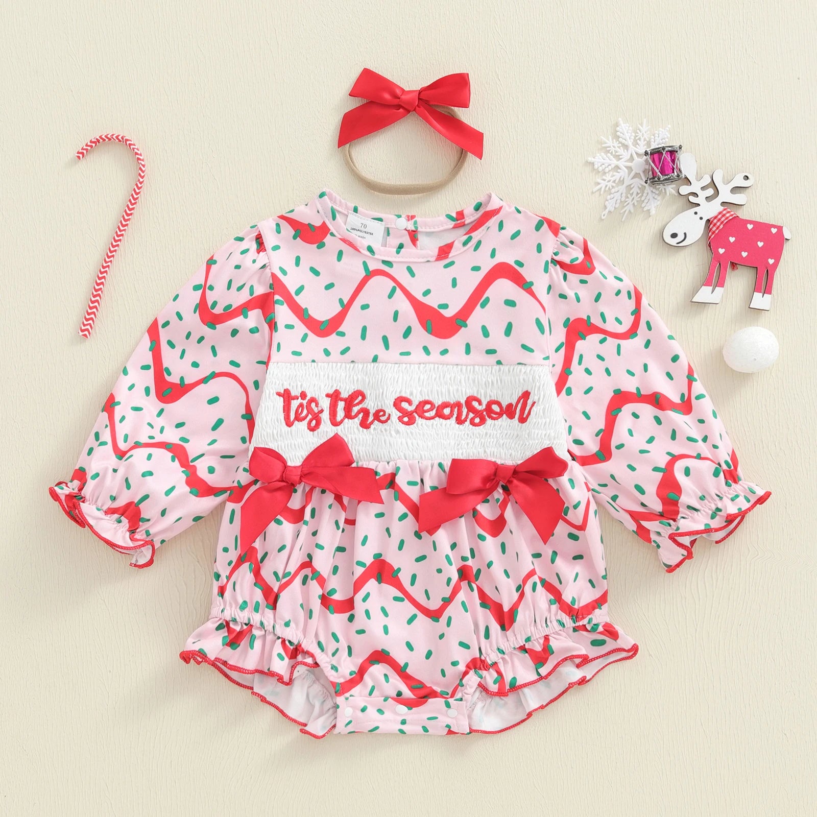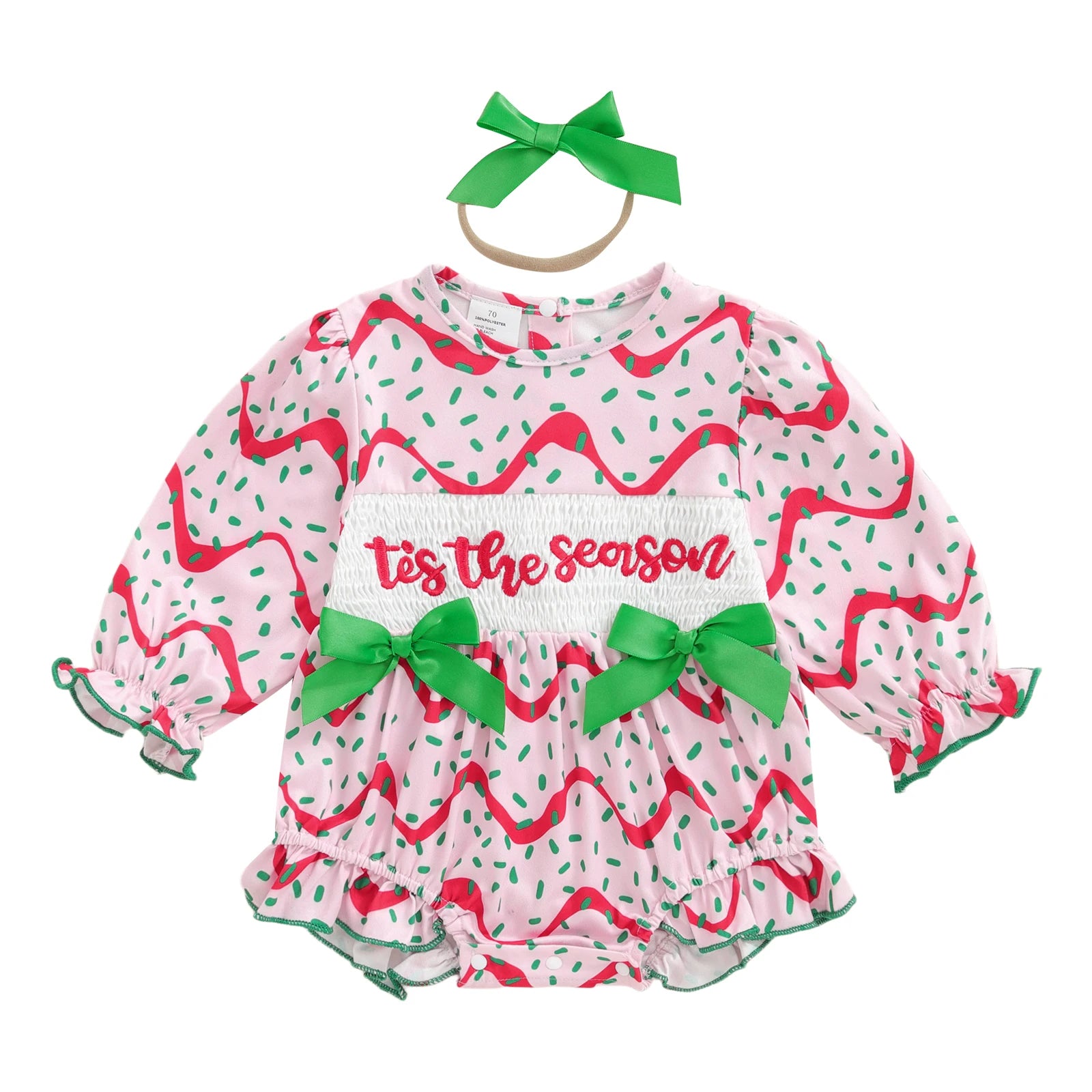 Baby Girls Christmas Romper Set - Letter Embroidery with Bow Headband