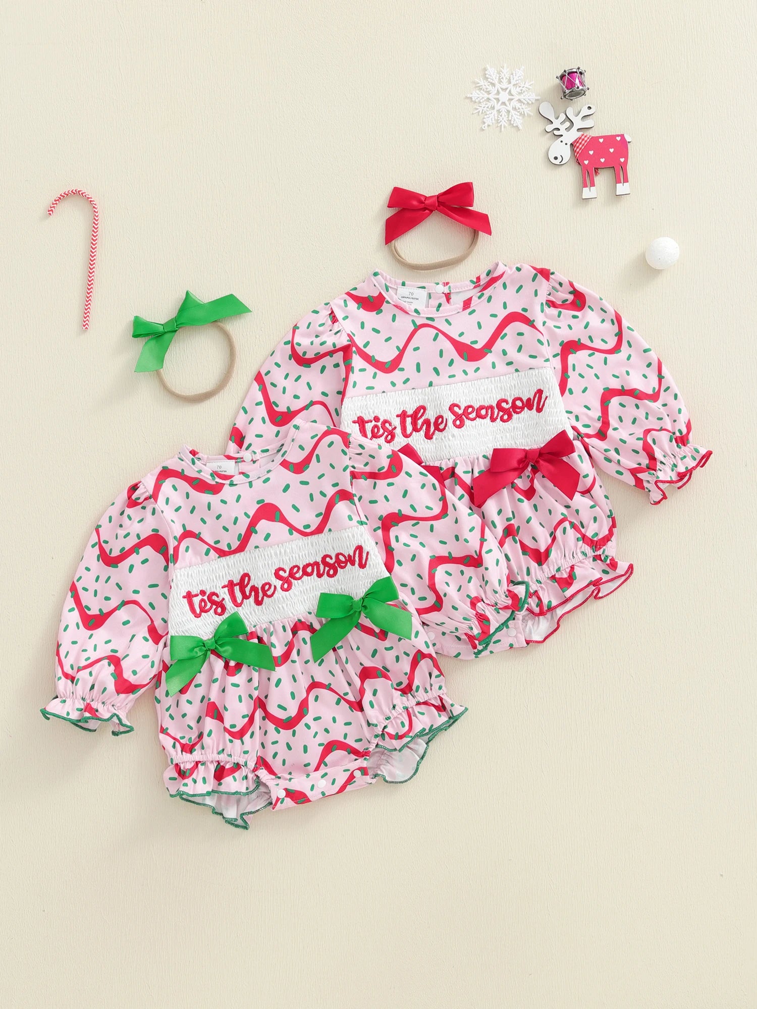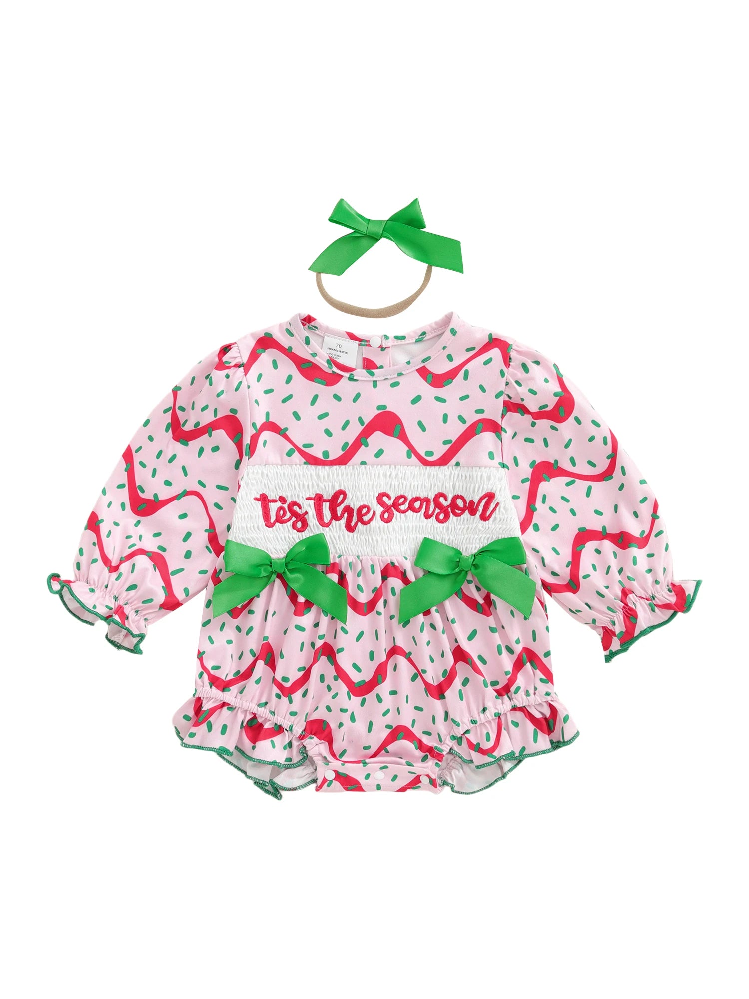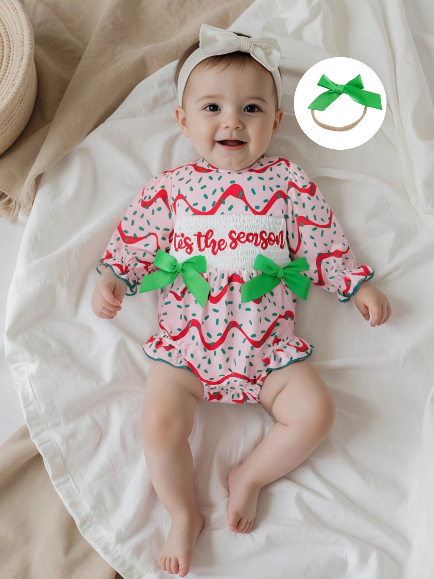 Baby Girls Christmas Romper Set - Letter Embroidery with Bow Headband
