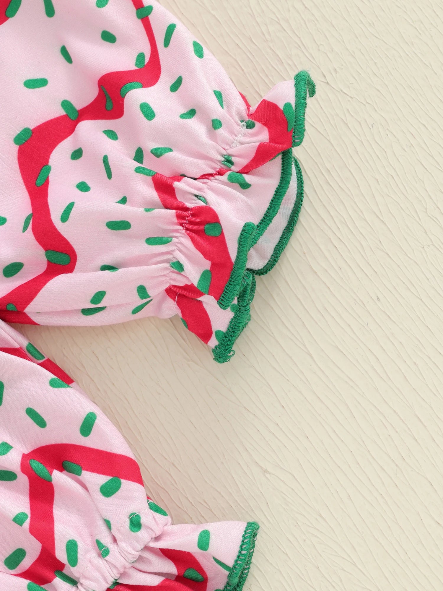 Dress your little one in festive charm with this lovely Christmas romper set. Features sweet letter embroidery and comes with a matching bow headband for a complete holiday look.